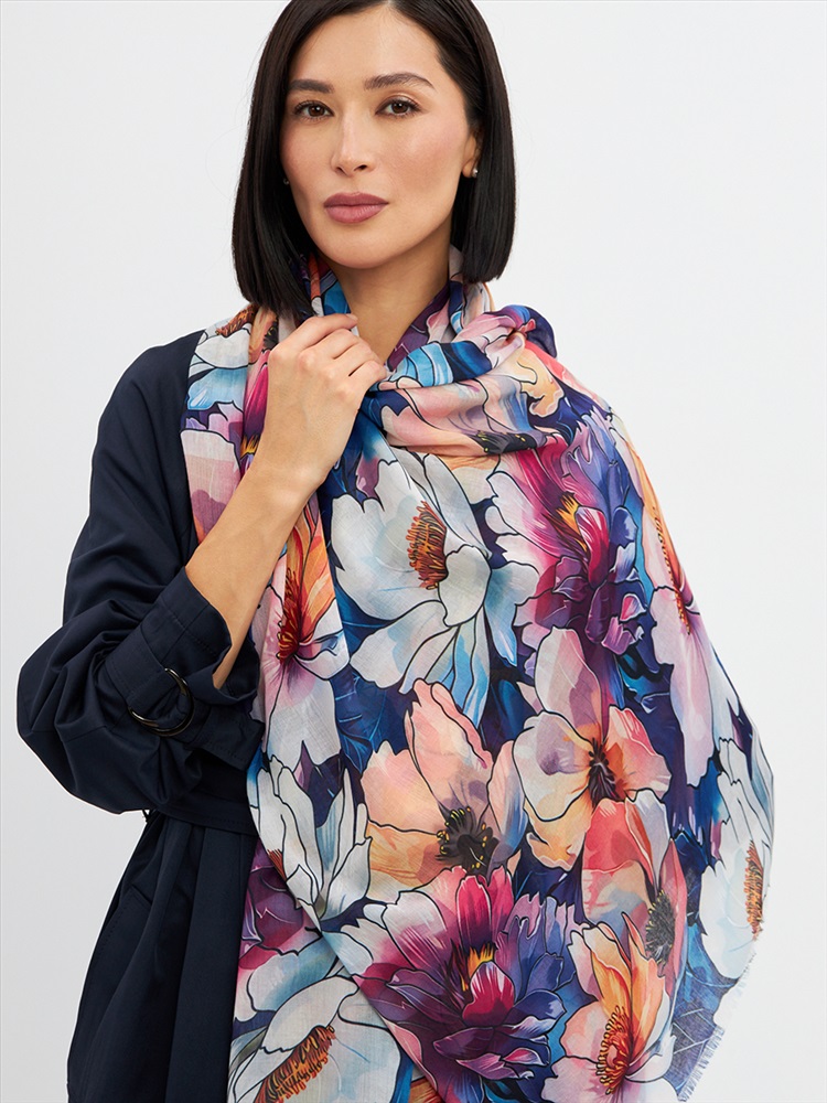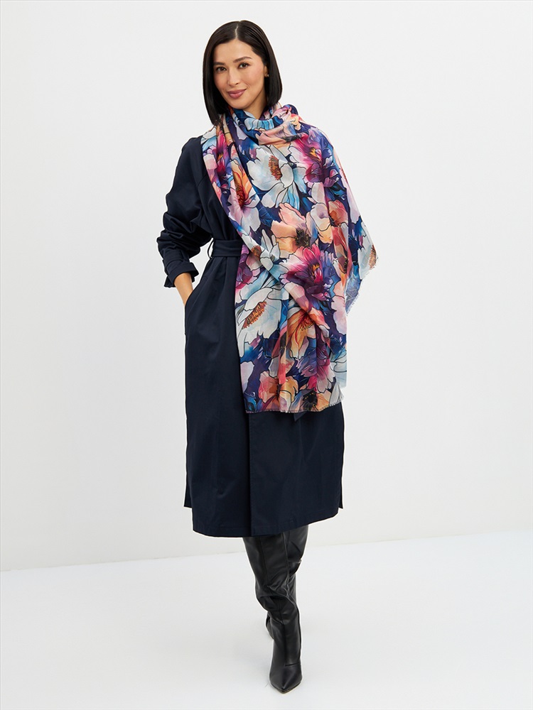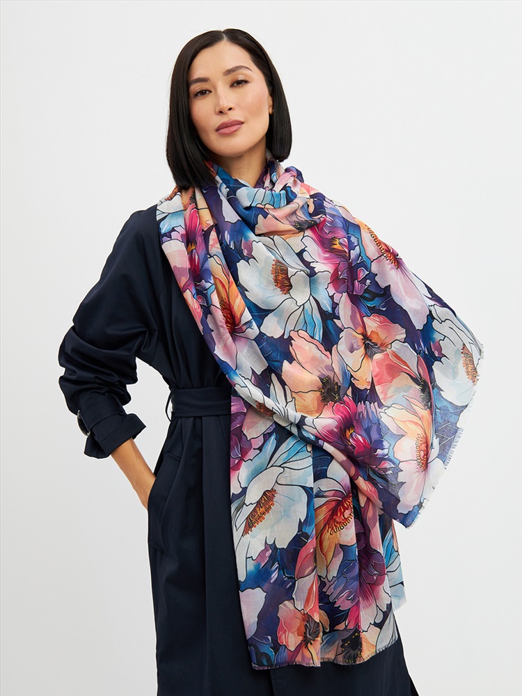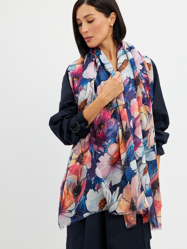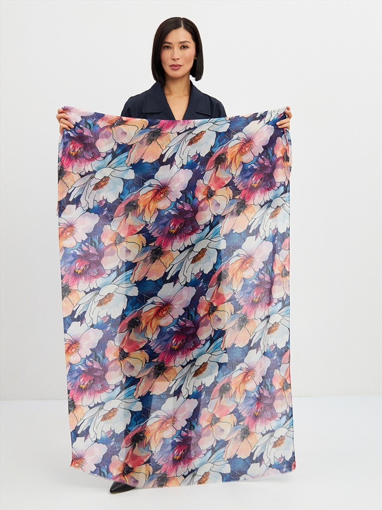 Большой, мягкий, тонкий и очень нежный палантин с рисунком. Края изделия украшены бахромой ручной работы. Машинная деликатная стирка.