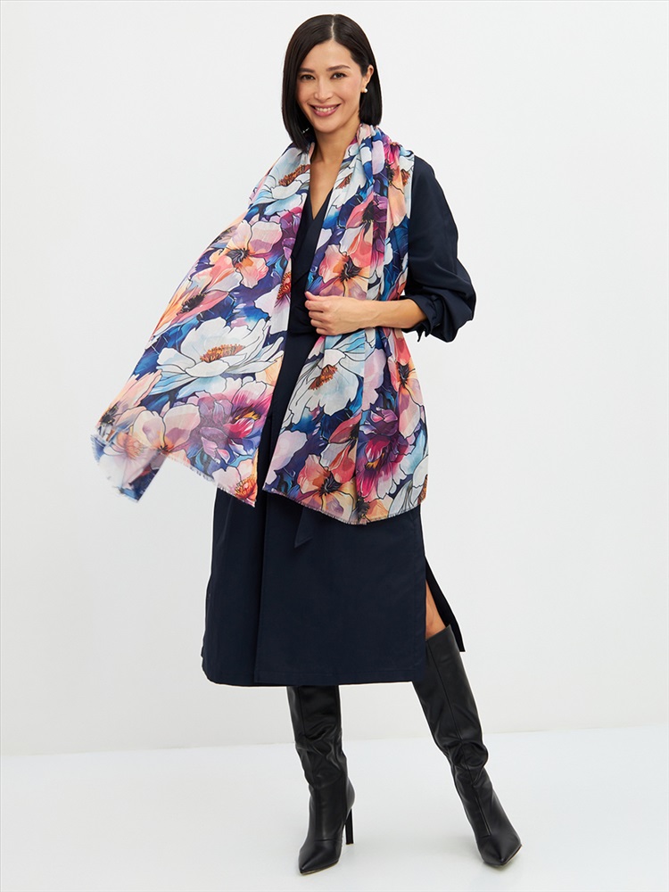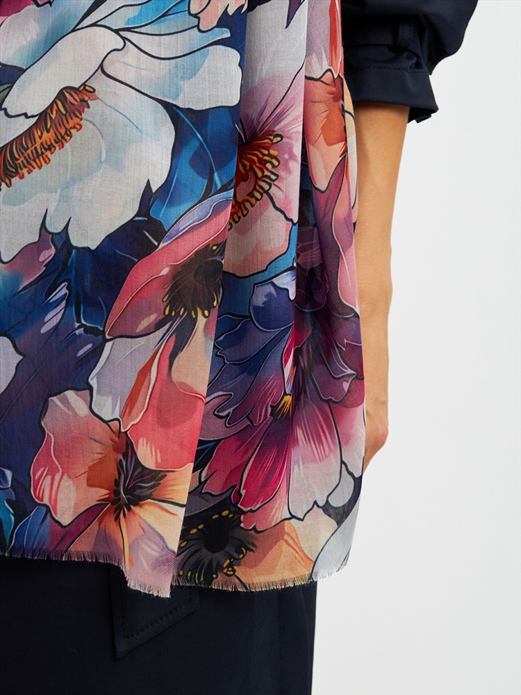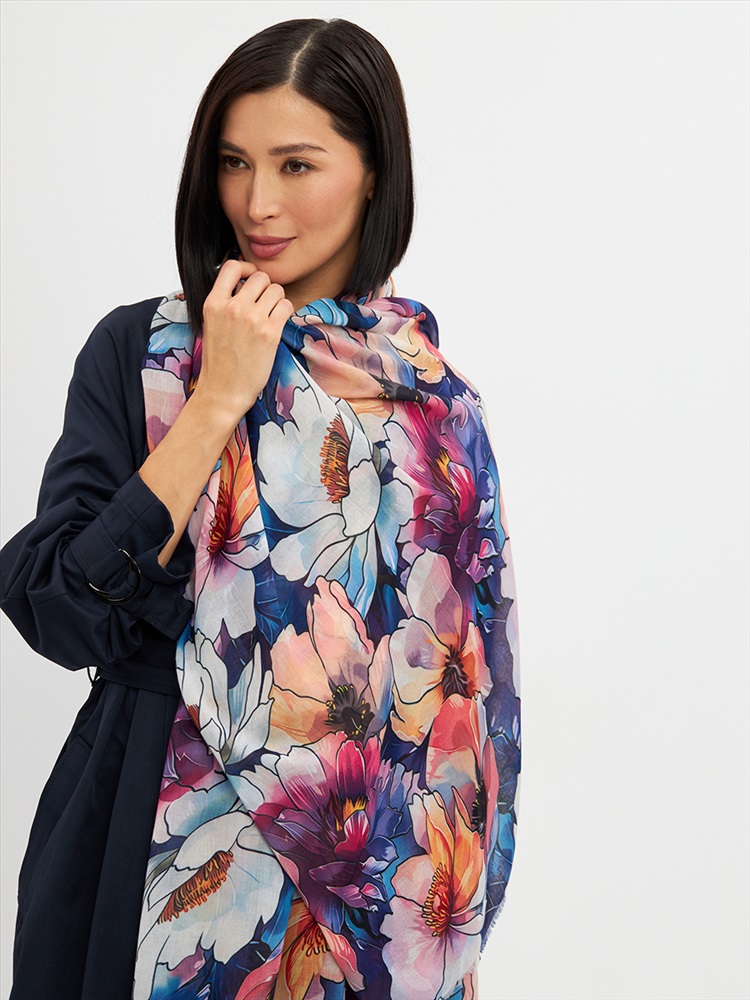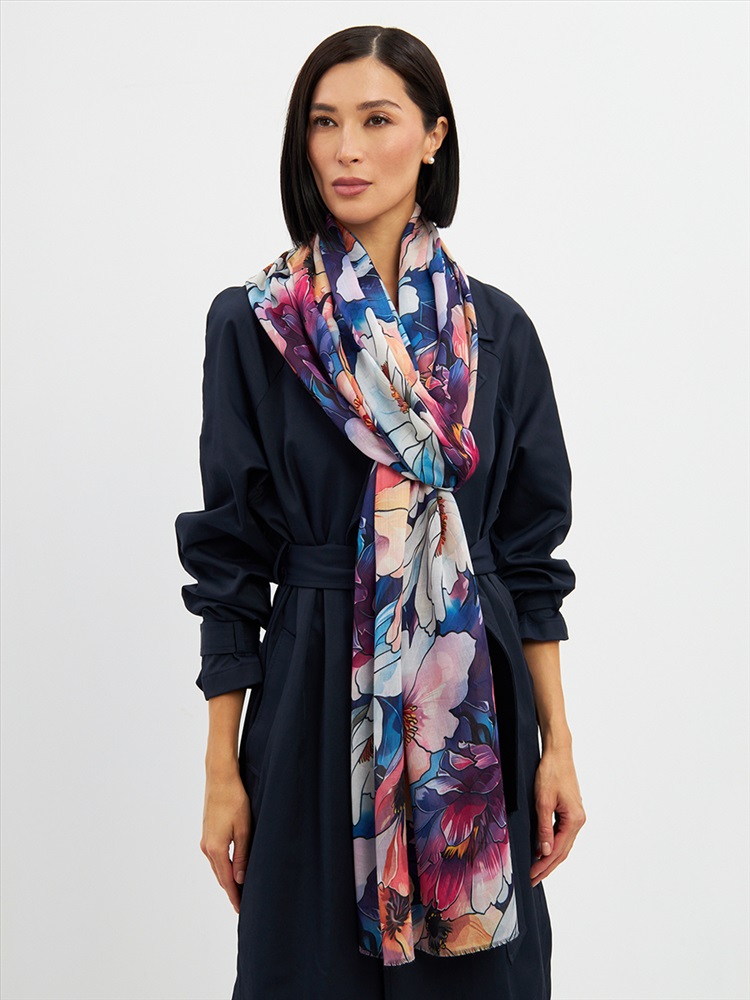 Большой, мягкий, тонкий и очень нежный палантин с рисунком. Края изделия украшены бахромой ручной работы. Машинная деликатная стирка.