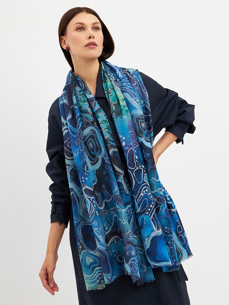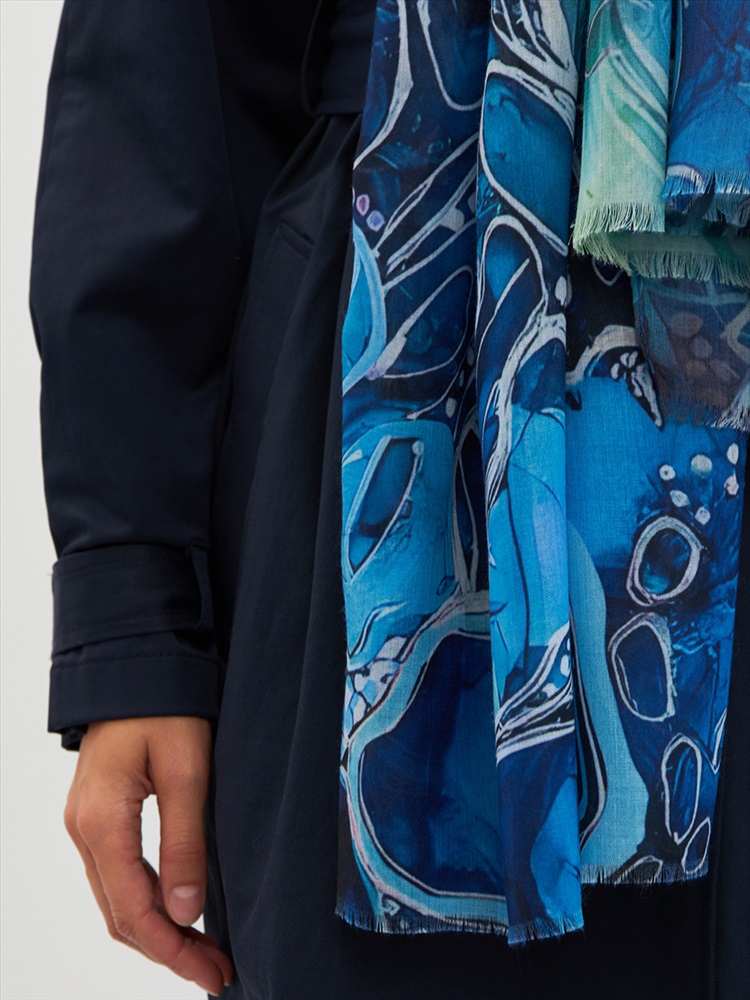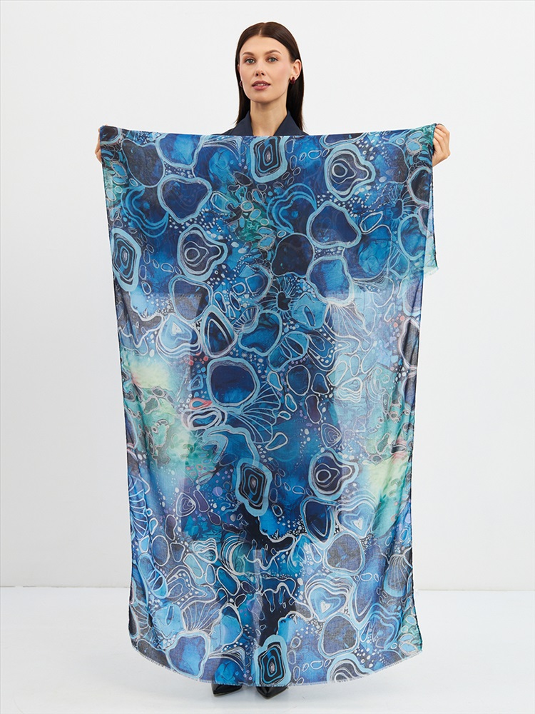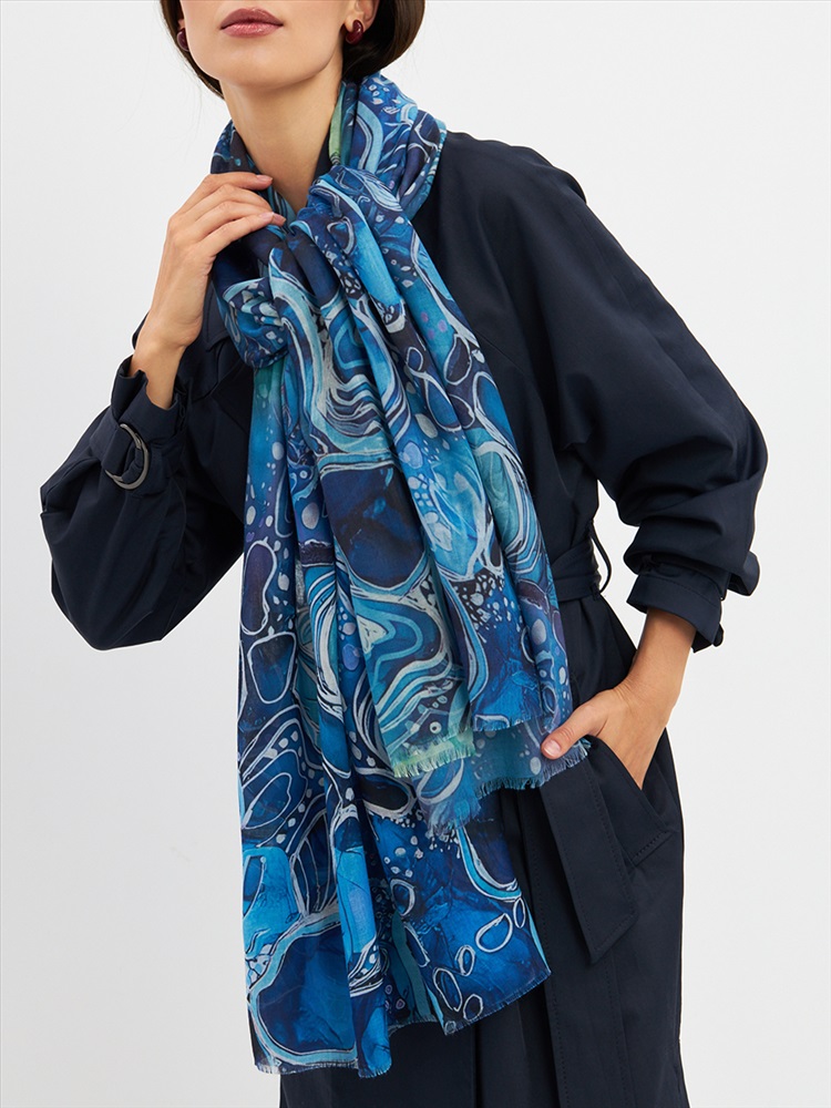 Цвет: Черный, Электрик, Светло-синий, Темно-синий Размер: 80 x 180 см Состав: 55% полиэстер, 35% вискоза, 10% шелк Состав: Вискоза, Полиэстер, Шелк Принт: Абстракция Большой, мягкий, тонкий и очень нежный палантин с рисунком. Края изделия украшены бахромой ручной работы. Машинная деликатная стирка. Комментарии к товару