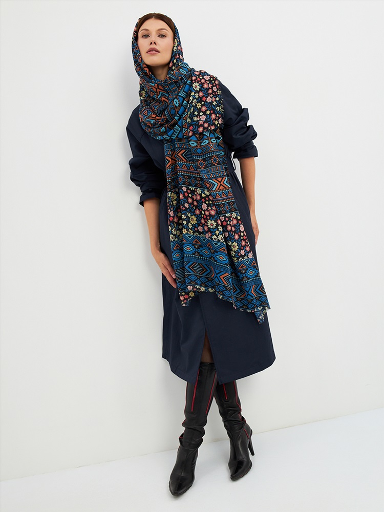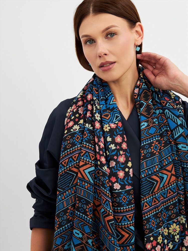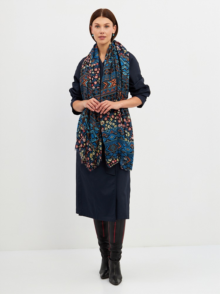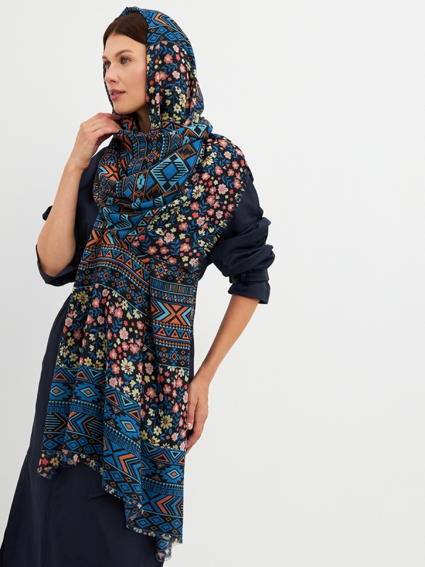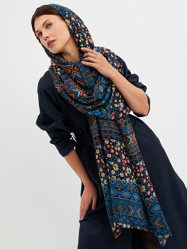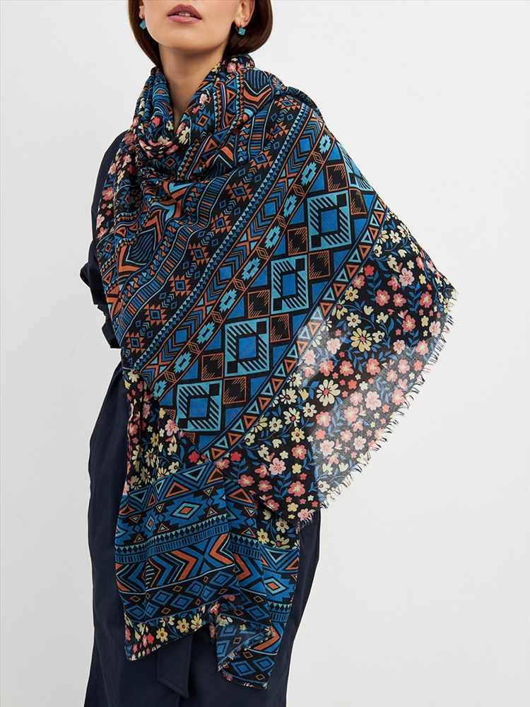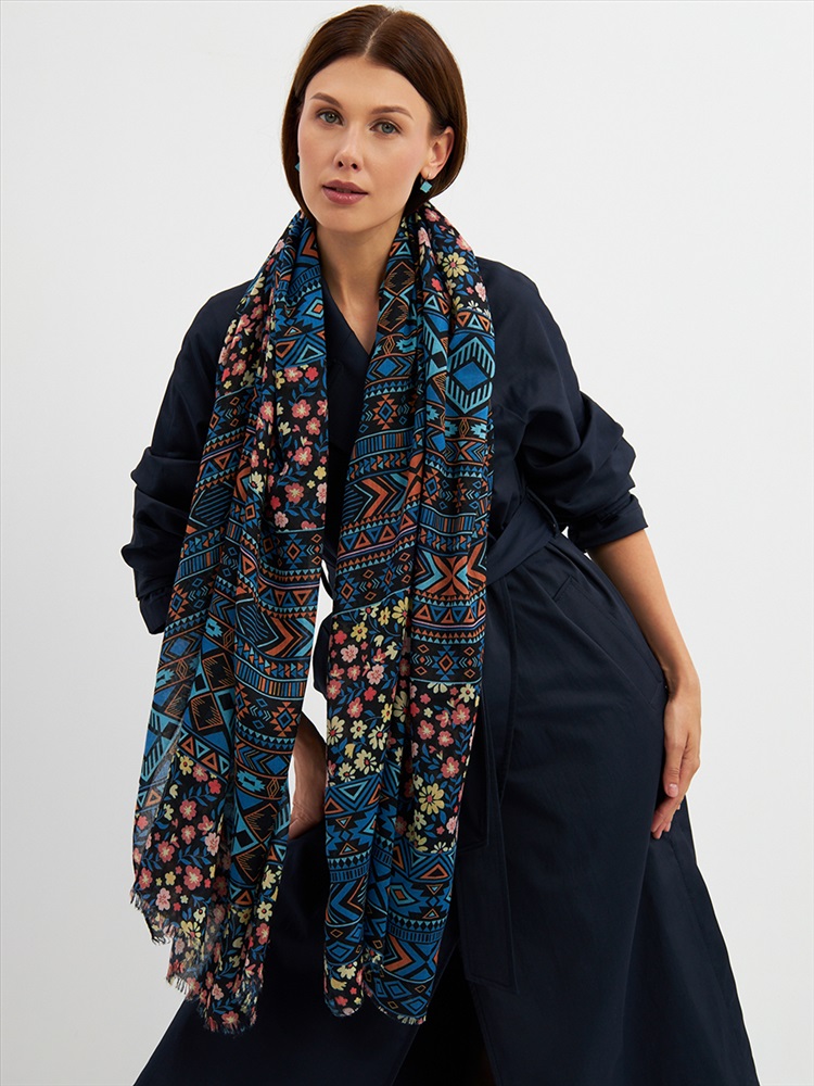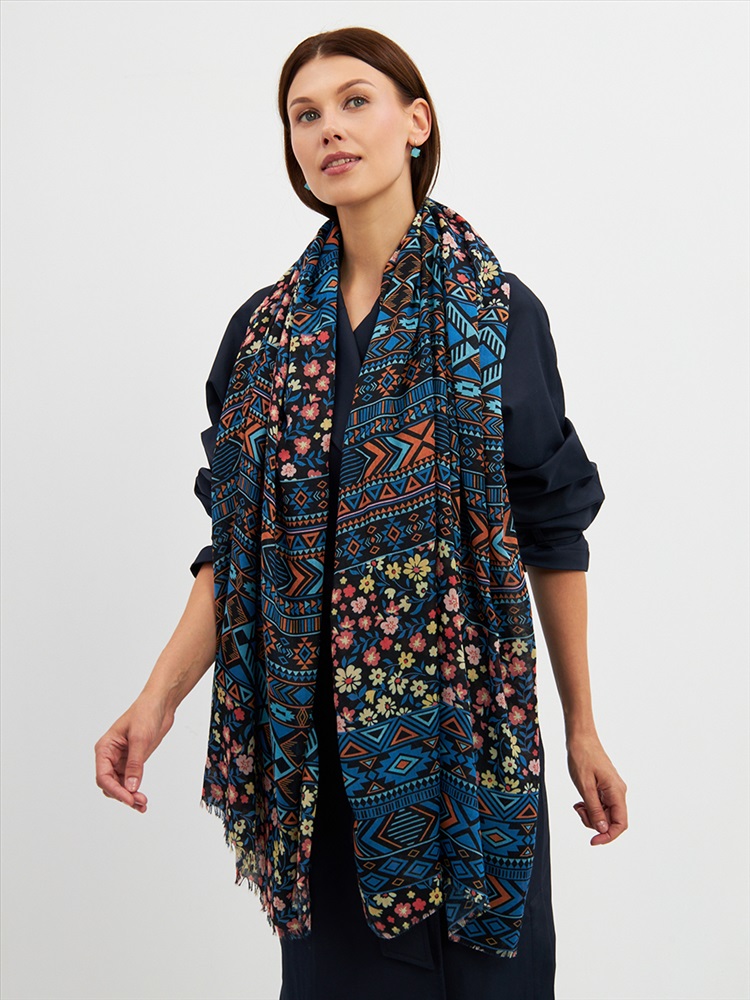Цвет: Коричневый, Синий, Черный Размер: 80 x 180 см Состав: 55% полиэстер, 35% вискоза, 10% шелк Состав: Вискоза, Полиэстер, Шелк Принт: Абстракция Большой, мягкий, тонкий и очень нежный палантин с рисунком. Края изделия украшены бахромой ручной работы. Машинная деликатная стирка. Комментарии к товару
