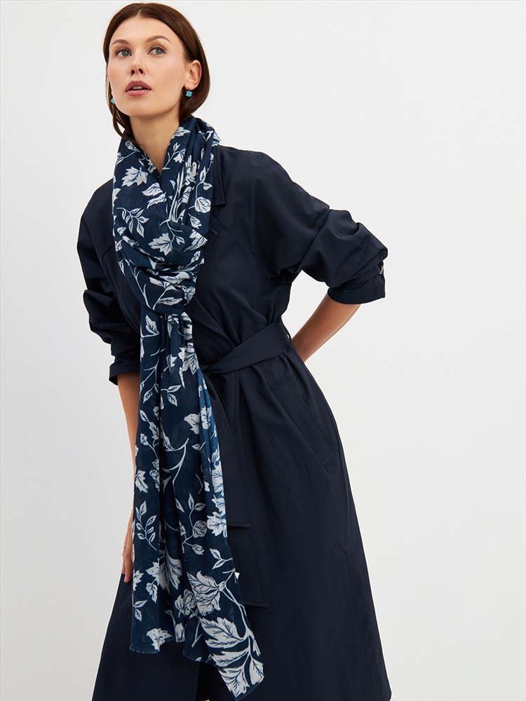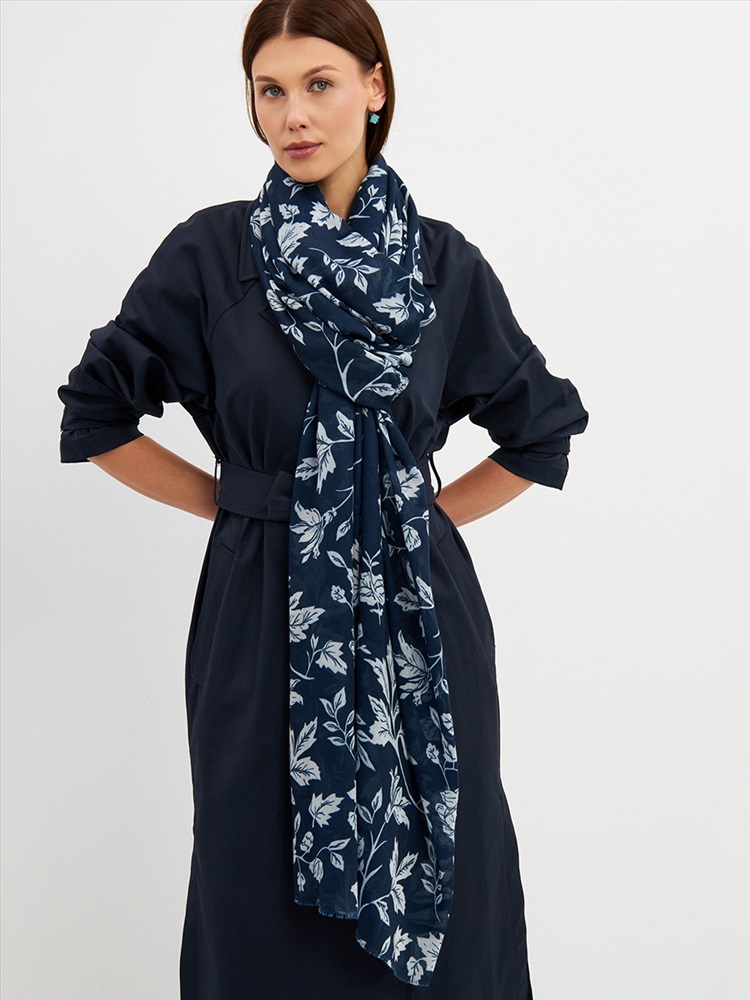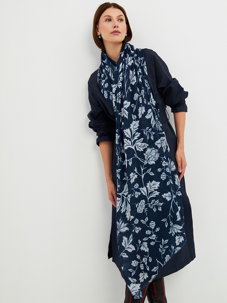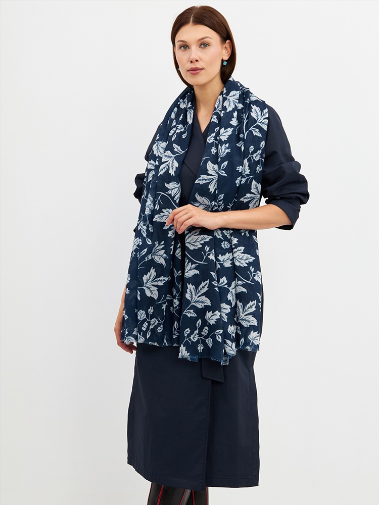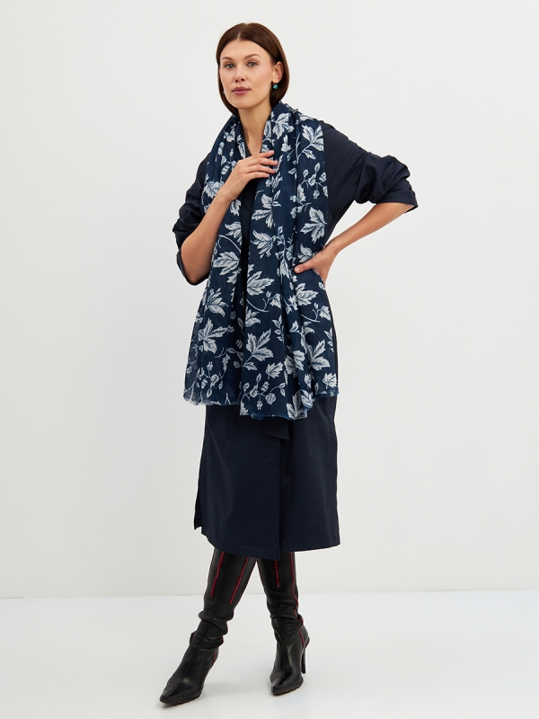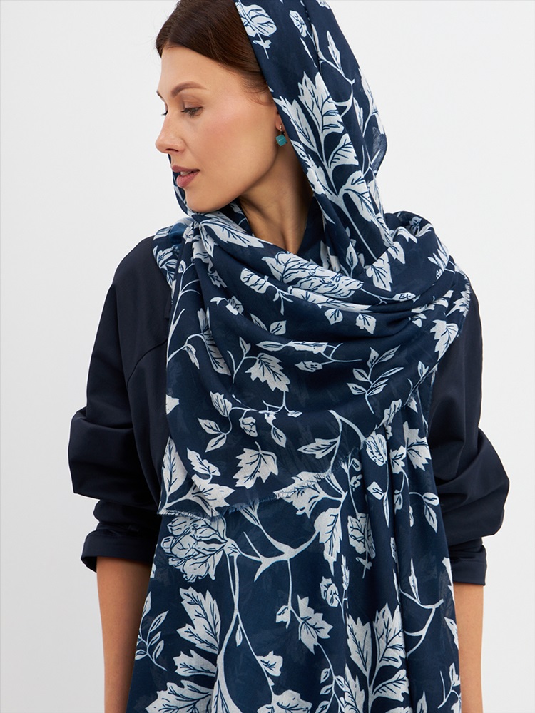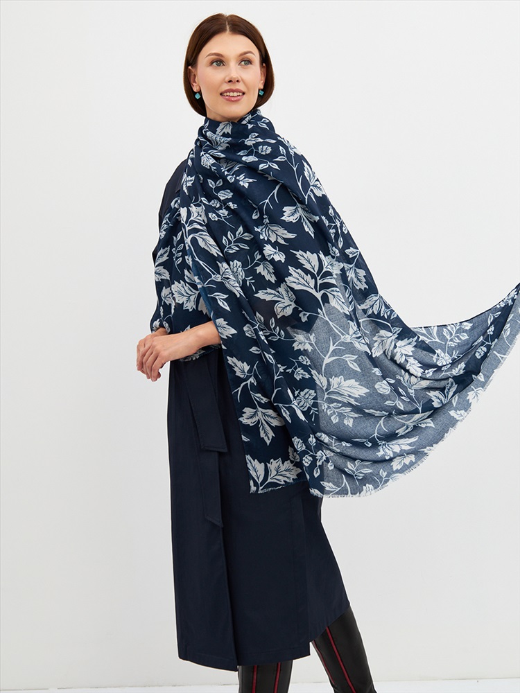Цвет: Темно-синий Размер: 80 x 180 см Состав: 55% полиэстер, 35% вискоза, 10% шелк Состав: Вискоза, Полиэстер, Шелк Принт: Цветочный Большой, мягкий, тонкий и очень нежный палантин с рисунком. Края изделия украшены бахромой ручной работы. Машинная деликатная стирка. Комментарии к товару