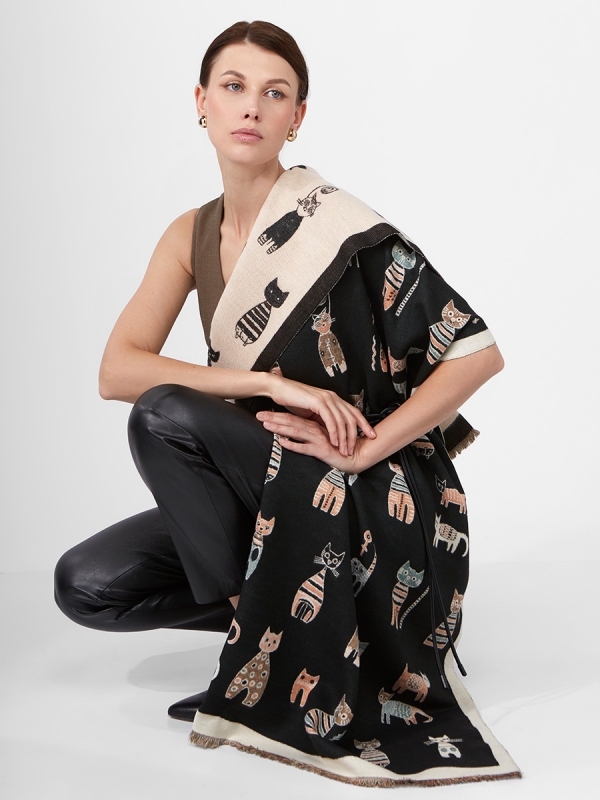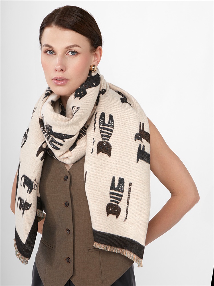 Цвет: Бежевый, Черный, Шоколад Состав: 65% модал, 20% шерсть, 15% кашемир Состав: Шерсть, Модал, Кашемир Принт: Абстракция, Сюжетный Размер: 65 x 180 cм Сезон: Демисезон, Осень, Весна Стиль: Повседневный Большой, мягкий, теплый двусторонний палантин. Только ручная стирка. Комментарии к товару