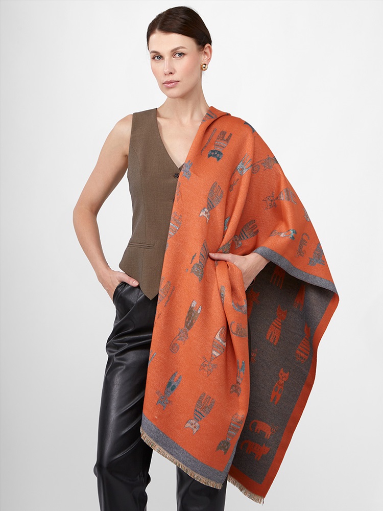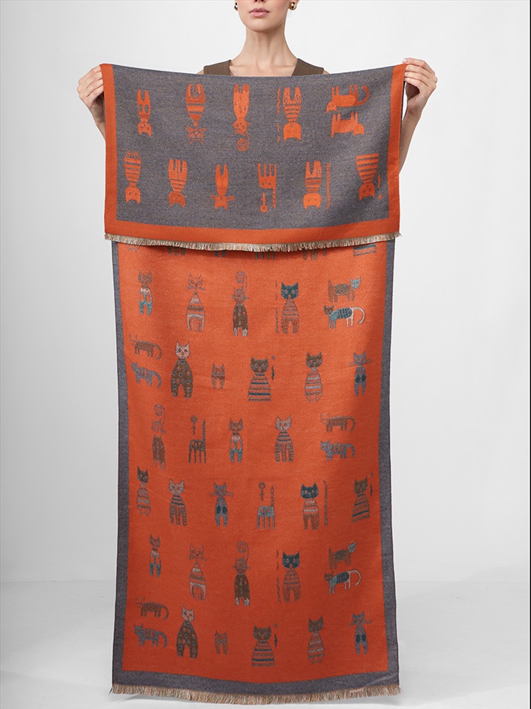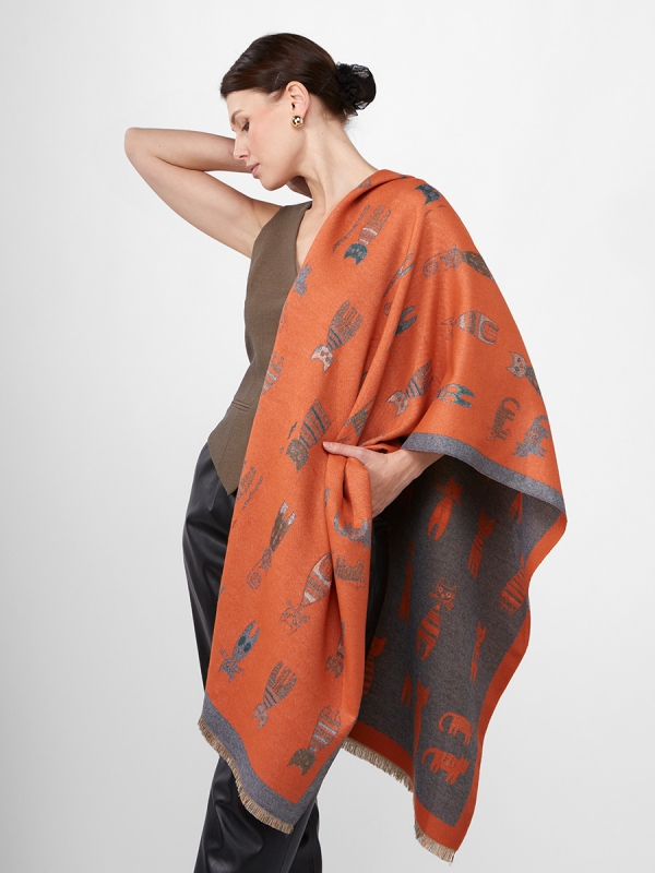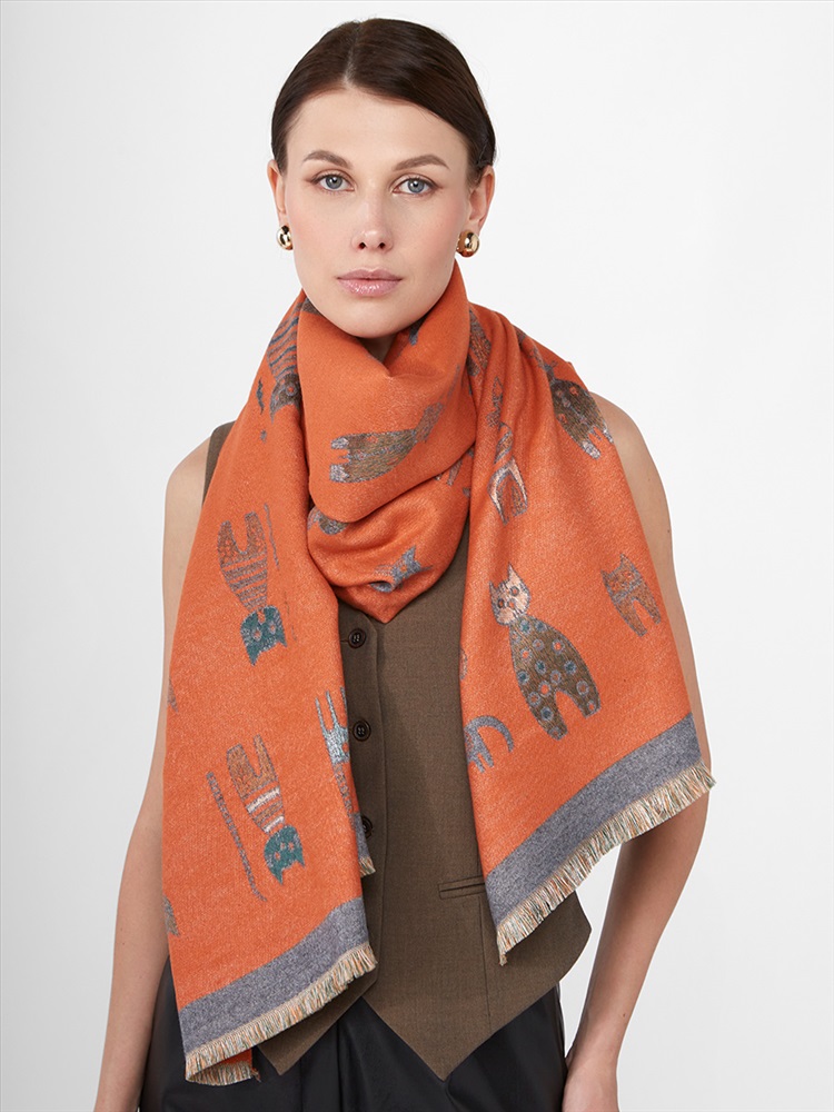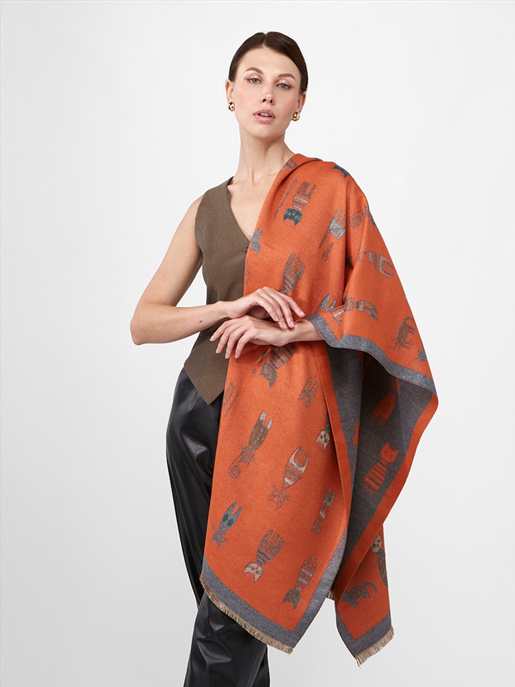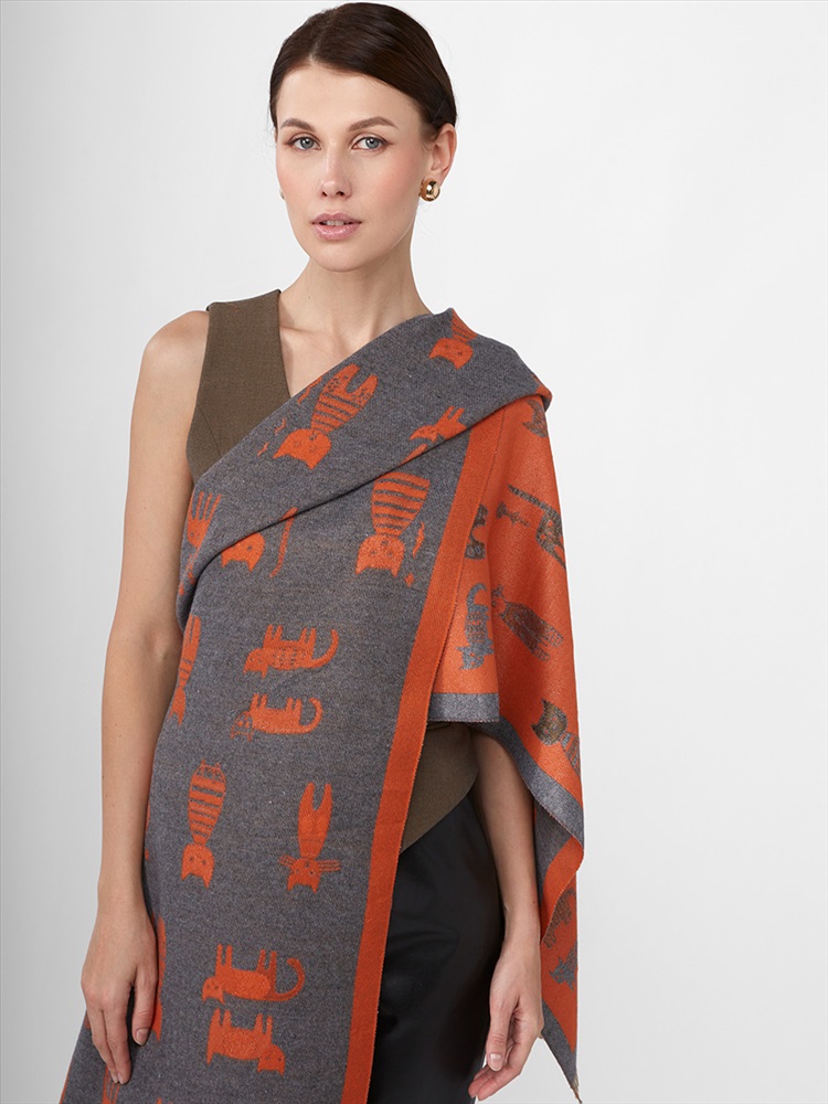 Цвет: Оранжевый, Серый Состав: 65% модал, 20% шерсть, 15% кашемир Состав: Шерсть, Модал, Кашемир Принт: Сюжетный Размер: 65 x 180 cм Сезон: Демисезон, Осень, Весна Стиль: Повседневный Большой, мягкий, теплый двусторонний палантин. Только ручная стирка. Комментарии к товару