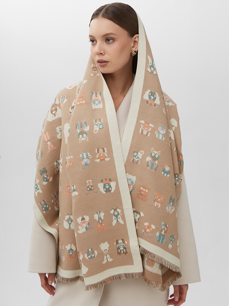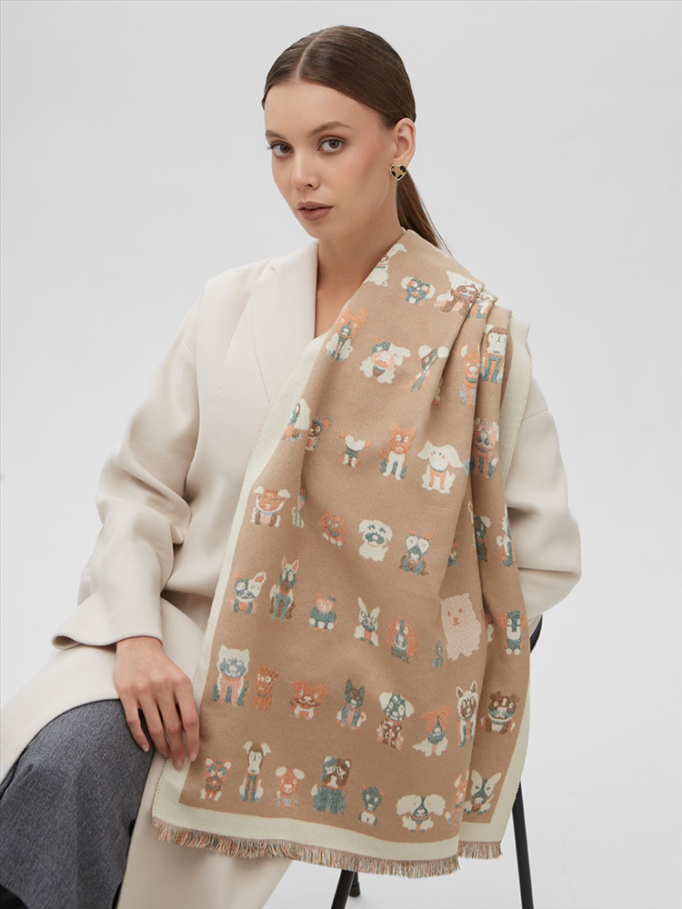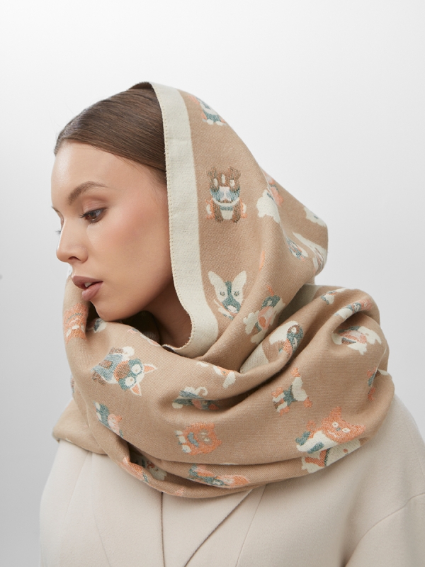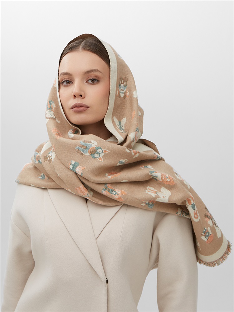 Цвет: Бежевый, Кэмел Состав: 65% модал, 20% шерсть, 15% кашемир Состав: Шерсть, Модал, Кашемир Принт: Сюжетный Размер: 65 x 180 cм Сезон: Демисезон, Осень, Весна Стиль: Повседневный Большой, мягкий, теплый двусторонний палантин. Только ручная стирка. Комментарии к товару