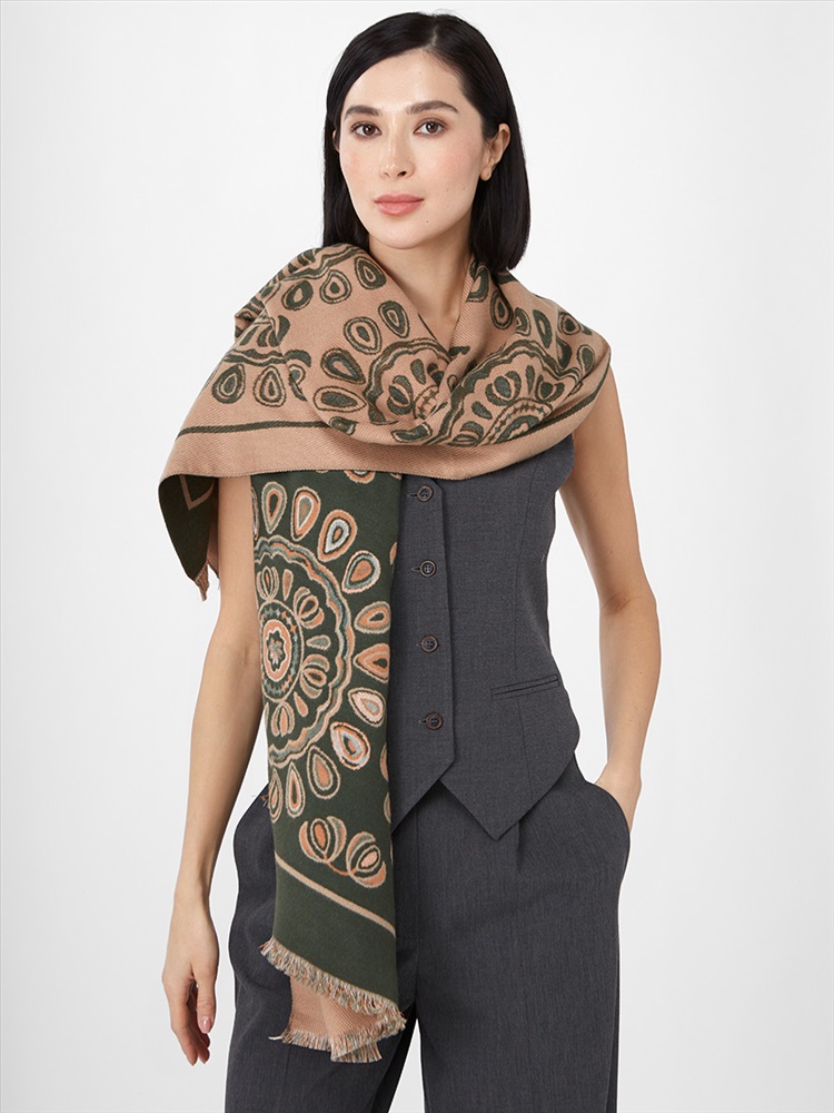 Цвет: Оранжевый, Хаки Состав: 65% модал, 20% шерсть, 15% кашемир Состав: Шерсть, Модал, Кашемир Принт: Семечки Размер: 65 x 180 cм Сезон: Демисезон, Осень, Весна Стиль: Повседневный Большой, мягкий, теплый двусторонний палантин. Только ручная стирка. Комментарии к товару