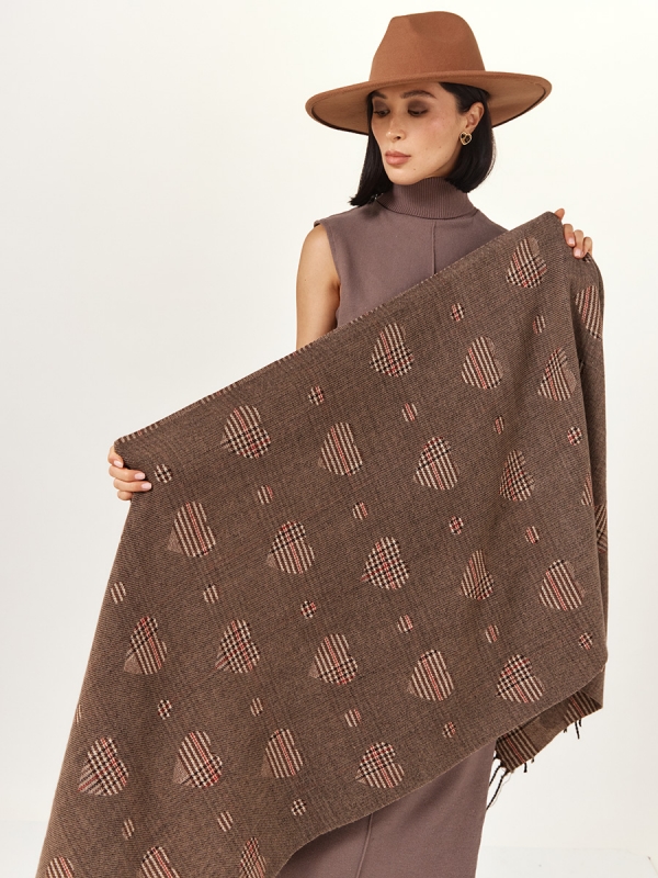 Цвет: Кофейный, Коричневый Состав: 65% лиоцелл, 20% шерсть, 15% кашемир Состав: Шерсть, Лиоцелл, Кашемир Принт: Клетка Размер: 75 х 180 см Сезон: Осень, Весна Стиль: Повседневный Большой, мягкий, теплый однотонный двусторонний палантин. Только ручная стирка. Комментарии к товару