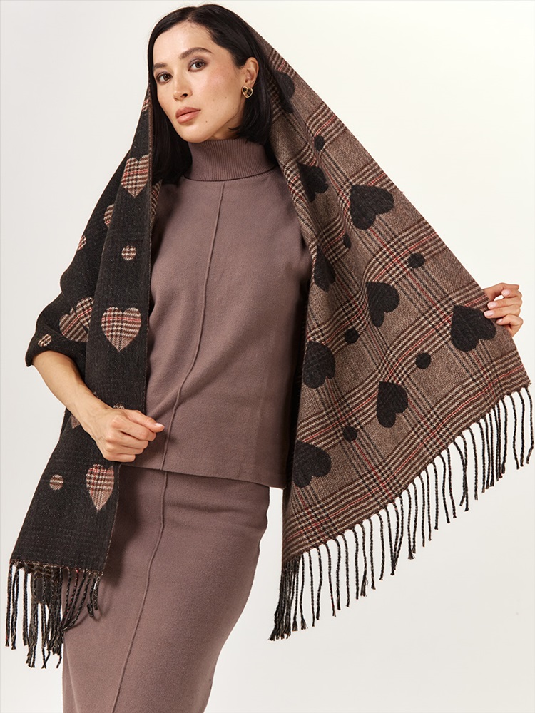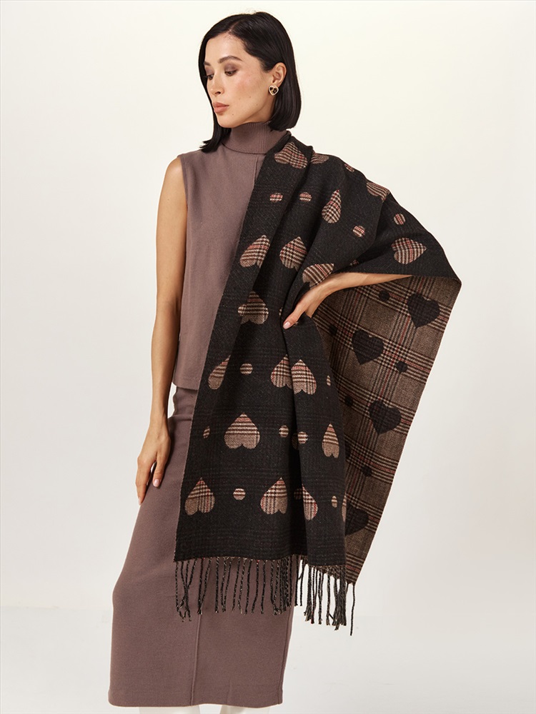 Цвет: Коричневый, Черный Состав: 65% лиоцелл, 20% шерсть, 15% кашемир Состав: Шерсть, Лиоцелл, Кашемир Принт: Клетка Размер: 75 х 180 см Сезон: Осень, Весна Стиль: Повседневный Большой, мягкий, теплый однотонный двусторонний палантин. Только ручная стирка. Комментарии к товару