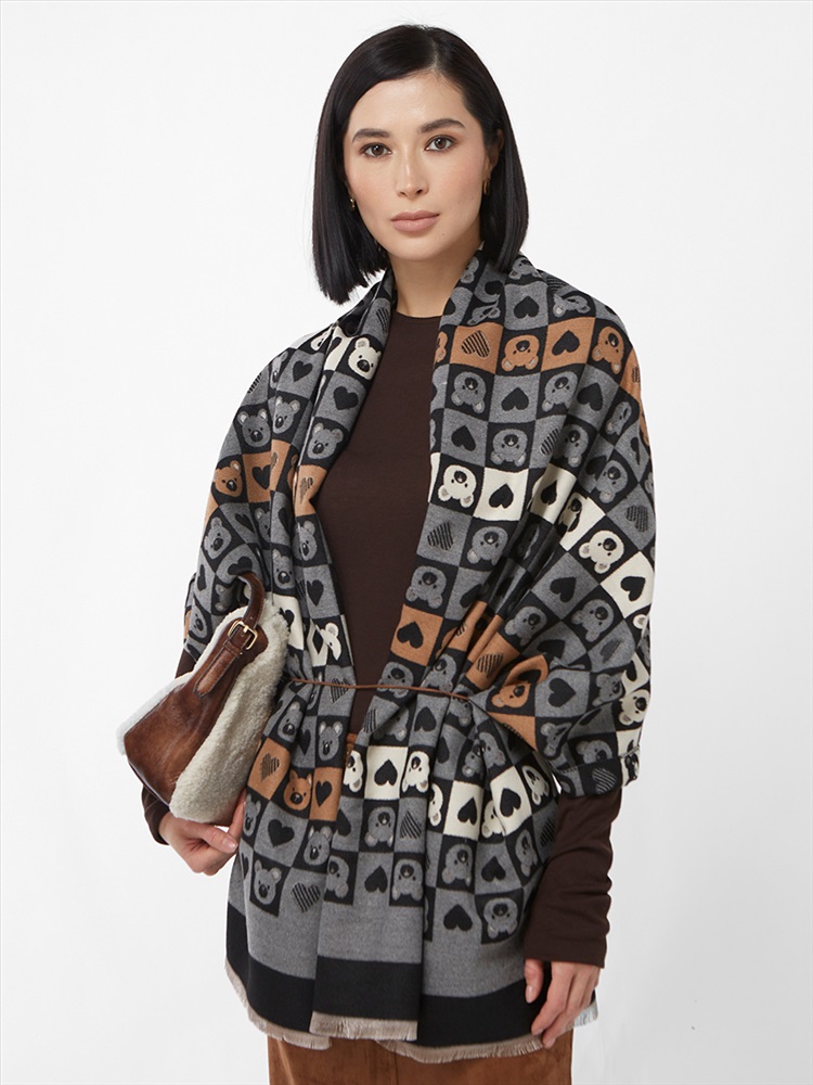 Цвет: Коричневый, Серый, Черный, Светло-серый Состав: 45% модал, 20% вискоза, 20% шерсть, 15% кашемир Состав: Вискоза, Шерсть, Модал, Кашемир Принт: Сюжетный Размер: 65 х 180 см Сезон: Осень, Зима Стиль: Повседневный Большой, мягкий, теплый однотонный двусторонний палантин. Только ручная стирка. Комментарии к товару