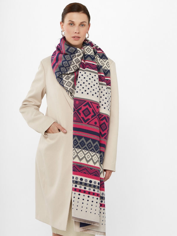 Цвет: Молочный, Фуксия Состав: 45% модал, 20% вискоза, 20% шерсть, 15% кашемир Состав: Вискоза, Шерсть, Модал, Кашемир Принт: Орнаментальный Размер: 65 х 180 см Сезон: Осень, Зима Стиль: Повседневный Большой, мягкий, теплый однотонный двусторонний палантин. Только ручная стирка. Комментарии к товару
