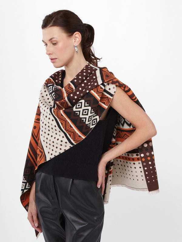 Цвет: Молочный, Оранжевый, Шоколад Состав: 45% модал, 20% вискоза, 20% шерсть, 15% кашемир Состав: Вискоза, Шерсть, Модал, Кашемир Принт: Орнаментальный Размер: 65 х 180 см Сезон: Осень, Зима Стиль: Повседневный Большой, мягкий, теплый однотонный двусторонний палантин. Только ручная стирка. Комментарии к товару