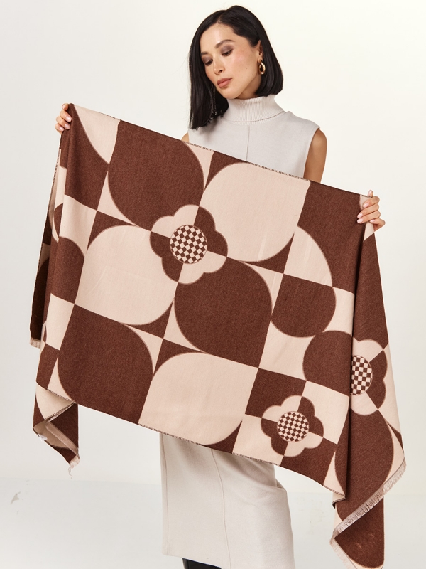 Цвет: Бежевый Состав: 45% модал, 20% вискоза, 20% шерсть, 15% кашемир Состав: Вискоза, Шерсть, Модал, Кашемир Принт: Абстракция Размер: 65 х 180 см Сезон: Осень, Зима Стиль: Повседневный Большой, мягкий, теплый однотонный двусторонний палантин. Только ручная стирка. Комментарии к товару