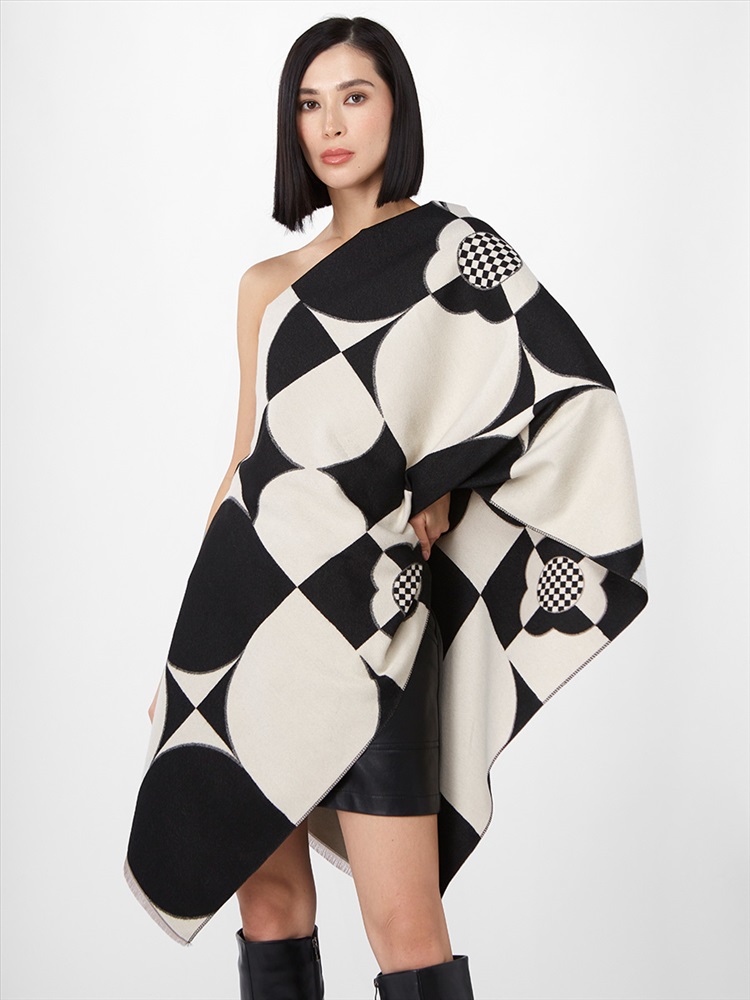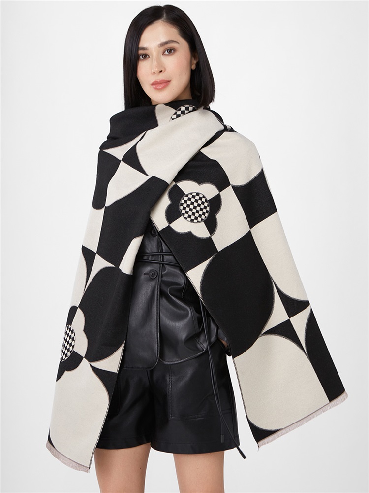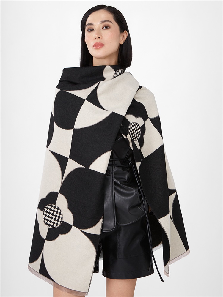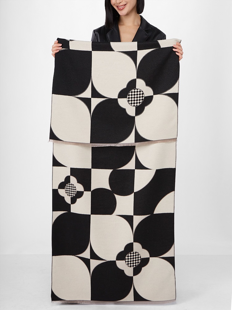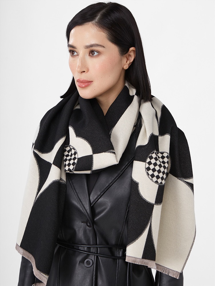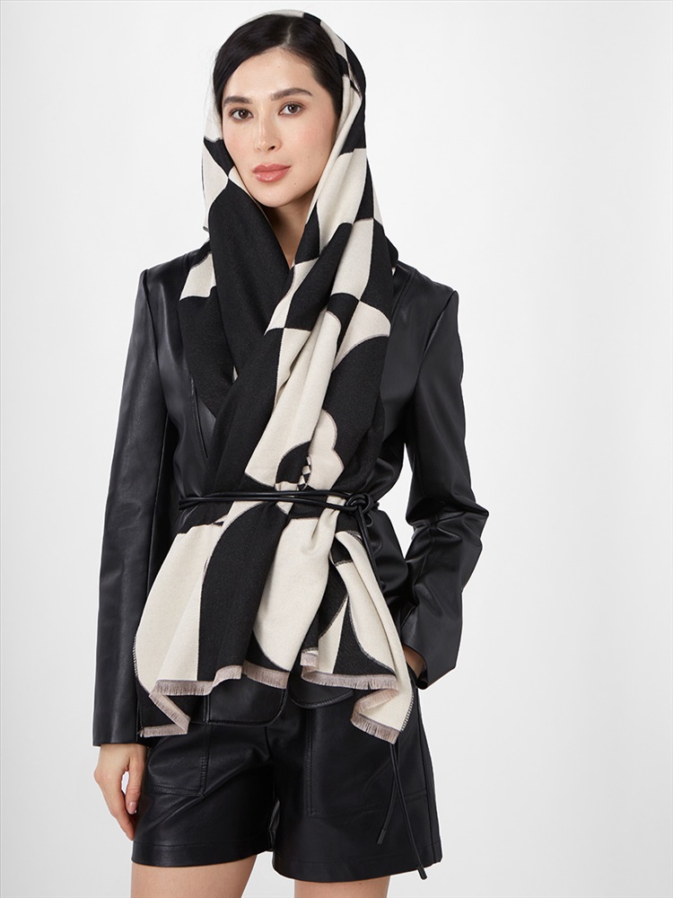 Цвет: Молочный, Черный Состав: 45% модал, 20% вискоза, 20% шерсть, 15% кашемир Состав: Вискоза, Шерсть, Модал, Кашемир Принт: Геометрический Размер: 65 х 180 см Сезон: Осень, Зима Стиль: Повседневный Большой, мягкий, теплый однотонный двусторонний палантин. Только ручная стирка. Комментарии к товару