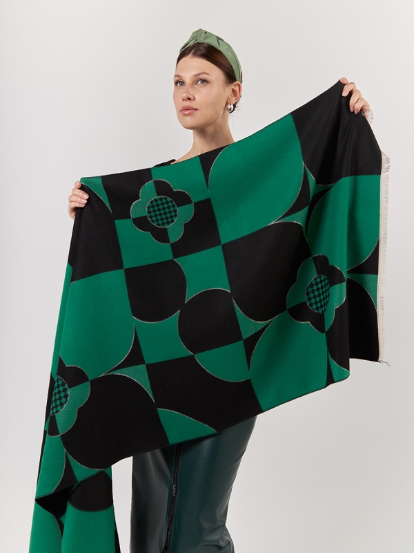 Цвет: Зеленый, Черный Состав: 45% модал, 20% вискоза, 20% шерсть, 15% кашемир Состав: Вискоза, Шерсть, Модал, Кашемир Принт: Абстракция Размер: 65 х 180 см Сезон: Осень, Зима Стиль: Повседневный Большой, мягкий, теплый однотонный двусторонний палантин. Только ручная стирка. Комментарии к товару
