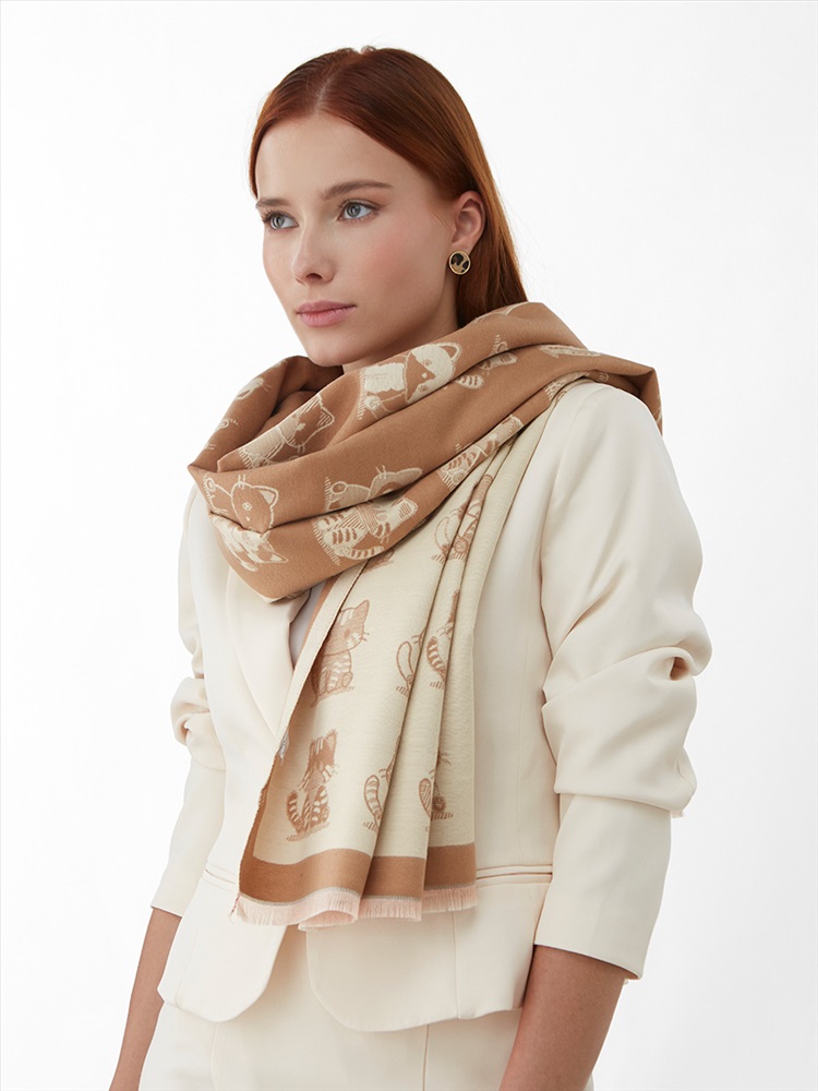 Цвет: Бежевый, Капучино Состав: 45% модал, 20% вискоза, 20% шерсть, 15% кашемир Состав: Вискоза, Шерсть, Модал, Кашемир Принт: Сюжетный Размер: 65 х 180 см Сезон: Осень, Зима Стиль: Повседневный Большой, мягкий, теплый однотонный двусторонний палантин. Только ручная стирка. Комментарии к товару