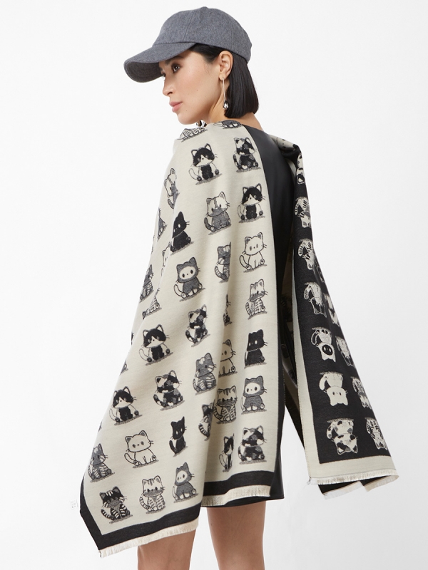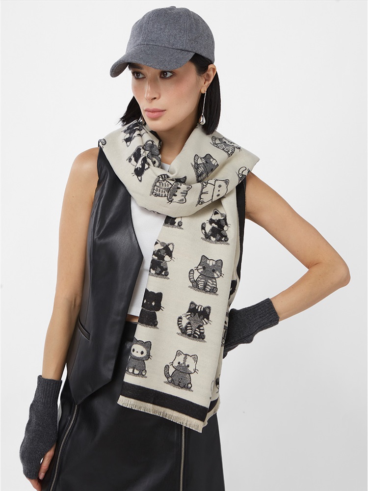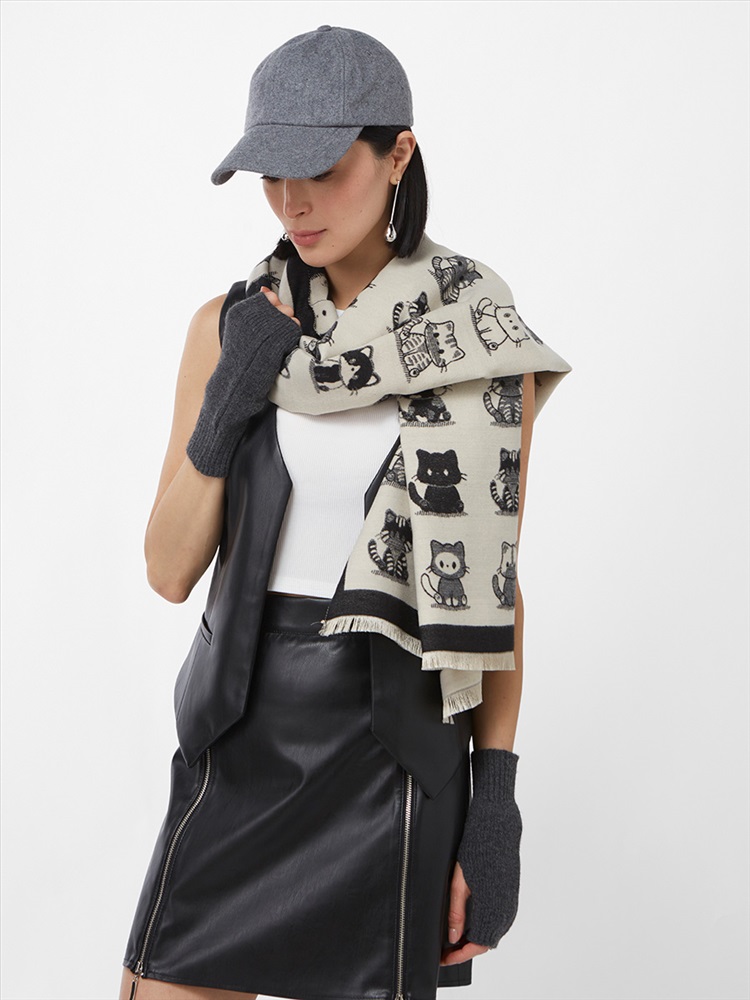 Цвет: Молочный, Черный Состав: 45% модал, 20% вискоза, 20% шерсть, 15% кашемир Состав: Вискоза, Шерсть, Модал, Кашемир Принт: Узор Размер: 65 х 180 см Сезон: Осень, Зима Стиль: Повседневный Большой, мягкий, теплый однотонный двусторонний палантин. Только ручная стирка. Комментарии к товару