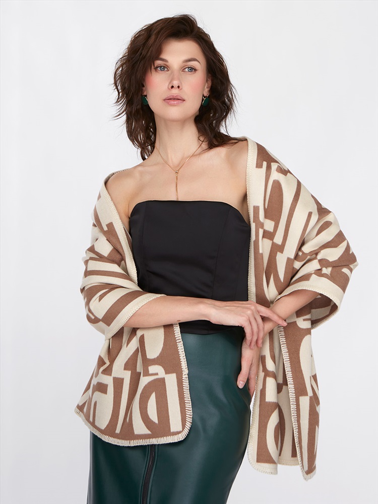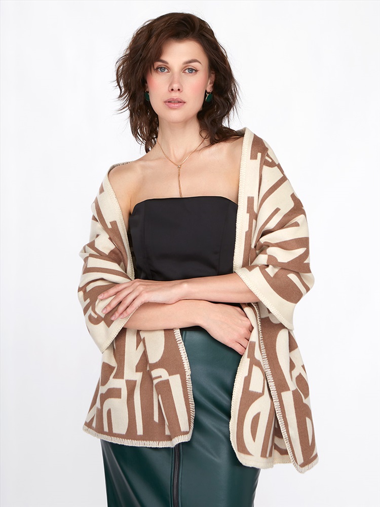 Цвет: Бежевый, Кофейный Состав: 40% полиэстер, 35% вискоза, 15% шерсть, 10% кашемир Состав: Вискоза, Полиэстер, Шерсть, Кашемир Принт: Абстракция Размер: 52 х 185 см Сезон: Осень, Зима Стиль: Повседневный Большой, мягкий, теплый однотонный двусторонний палантин. Только ручная стирка. Комментарии к товару