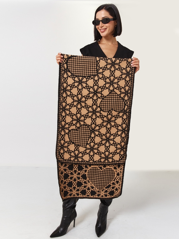 Цвет: Коричневый, Черный Состав: 40% полиэстер, 35% вискоза, 15% шерсть, 10% кашемир Состав: Вискоза, Полиэстер, Шерсть, Кашемир Принт: Абстракция Размер: 52 х 185 см Сезон: Осень, Зима Стиль: Повседневный Большой, мягкий, теплый однотонный двусторонний палантин. Только ручная стирка. Комментарии к товару