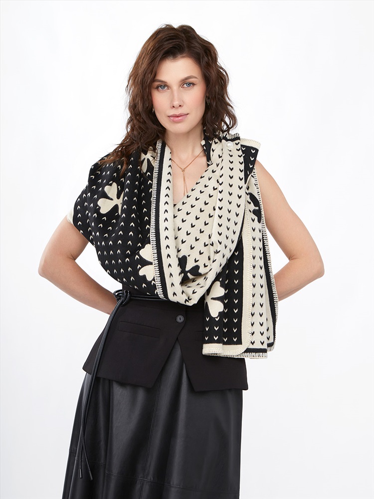 Цвет: Бежевый, Черный Состав: 40% полиэстер, 35% вискоза, 15% шерсть, 10% кашемир Состав: Вискоза, Полиэстер, Шерсть, Кашемир Принт: Абстракция Размер: 52 х 185 см Сезон: Осень, Зима Стиль: Повседневный Большой, мягкий, теплый однотонный двусторонний палантин. Только ручная стирка. Комментарии к товару