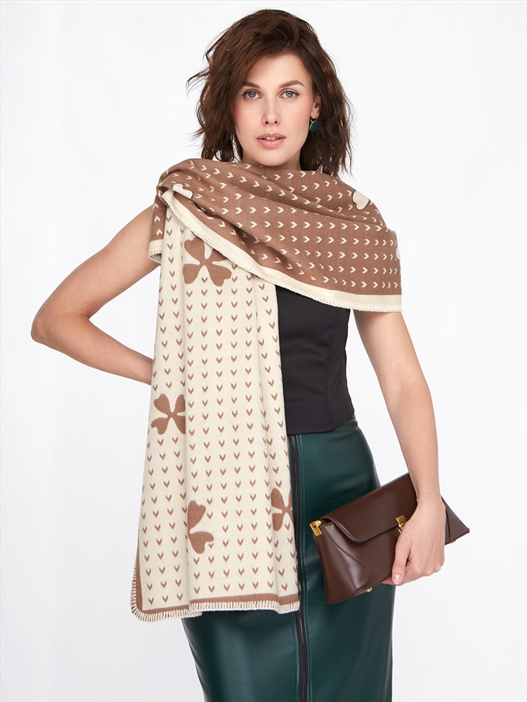 Цвет: Бежевый, Коричневый Состав: 40% полиэстер, 35% вискоза, 15% шерсть, 10% кашемир Состав: Вискоза, Полиэстер, Шерсть, Кашемир Принт: Горох Размер: 52 х 185 см Сезон: Осень, Зима Стиль: Повседневный Большой, мягкий, теплый однотонный двусторонний палантин. Только ручная стирка. Комментарии к товару