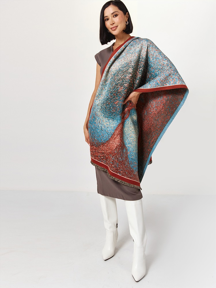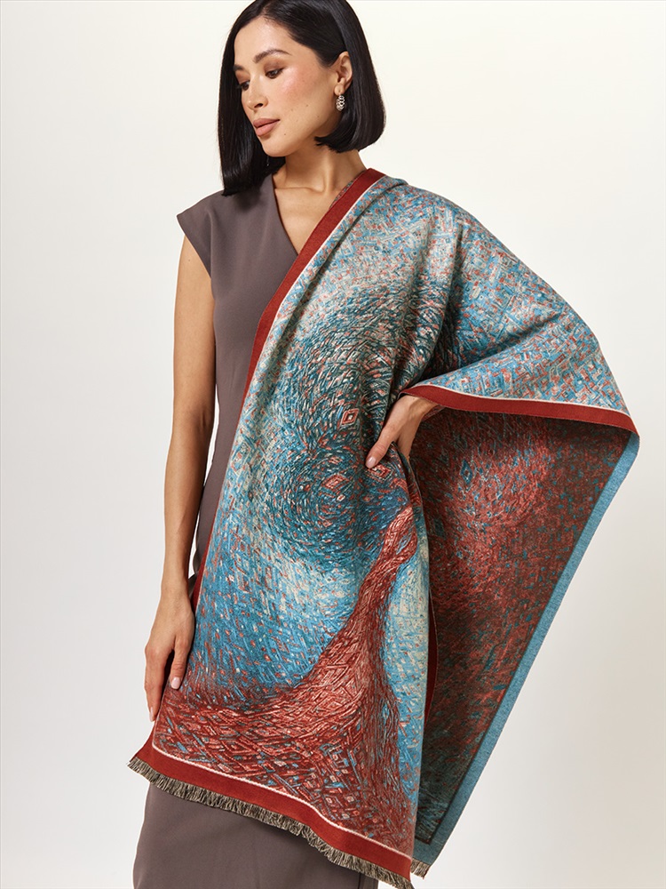 Цвет: Бордовый, Голубой Состав: 65% вискоза, 20% шерсть, 15% кашемир Состав: Вискоза, Шерсть, Кашемир Принт: Абстракция Размер: 75 х 180 см Сезон: Осень, Зима Стиль: Повседневный Большой, мягкий, теплый однотонный двусторонний палантин. Только ручная стирка. Комментарии к товару