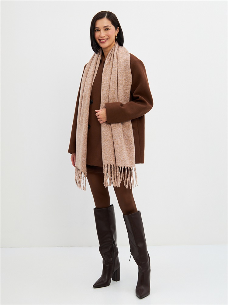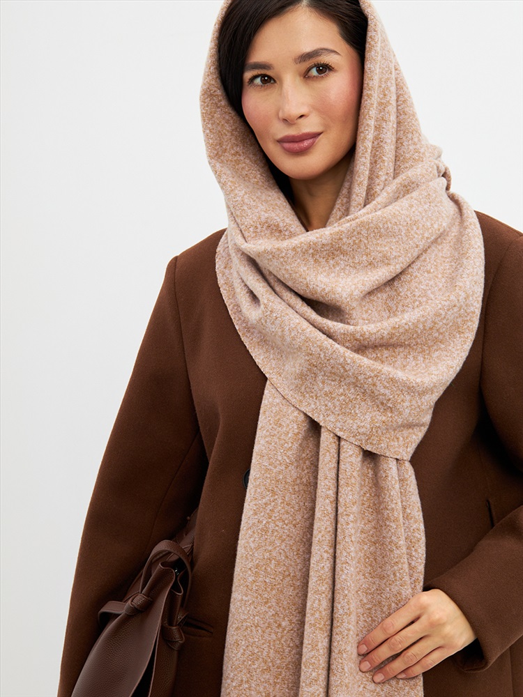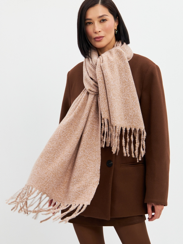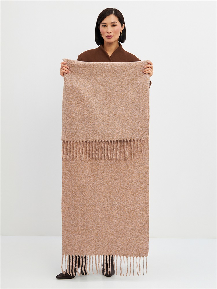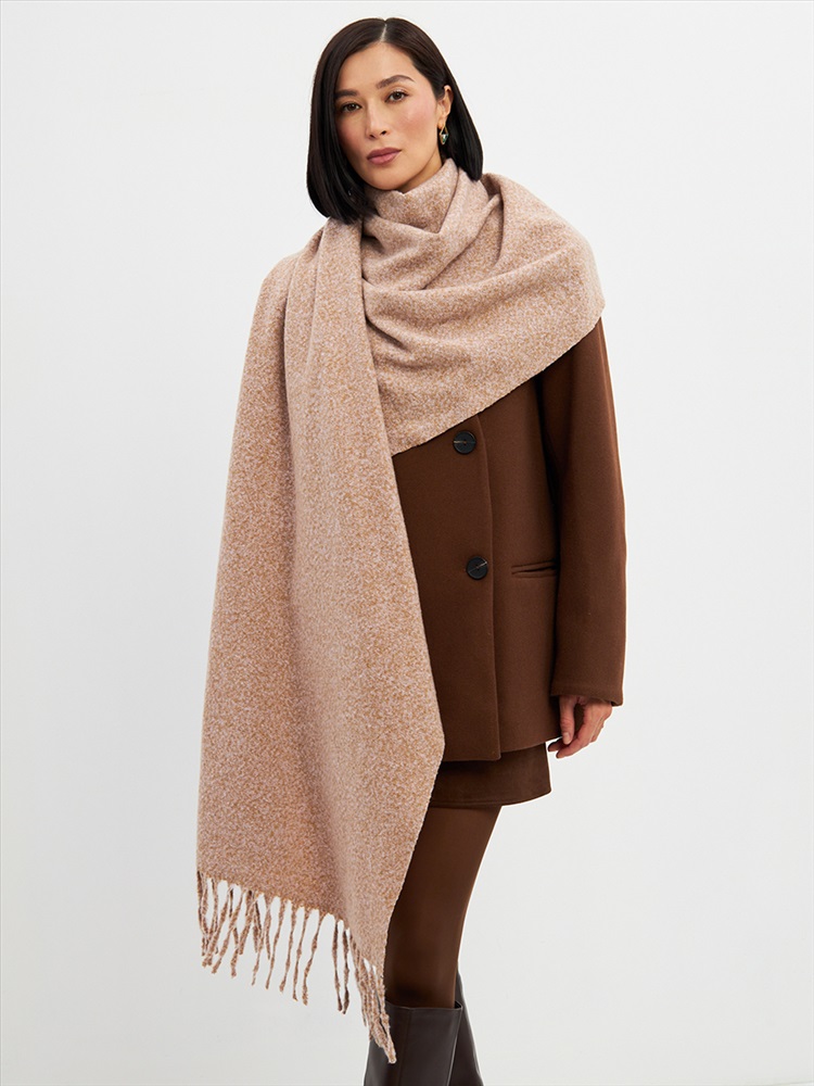 Большой, мягкий, теплый двусторонний однотонный меланжевый палантин. Края изделия украшены бахромой. Машинная деликатная стирка.