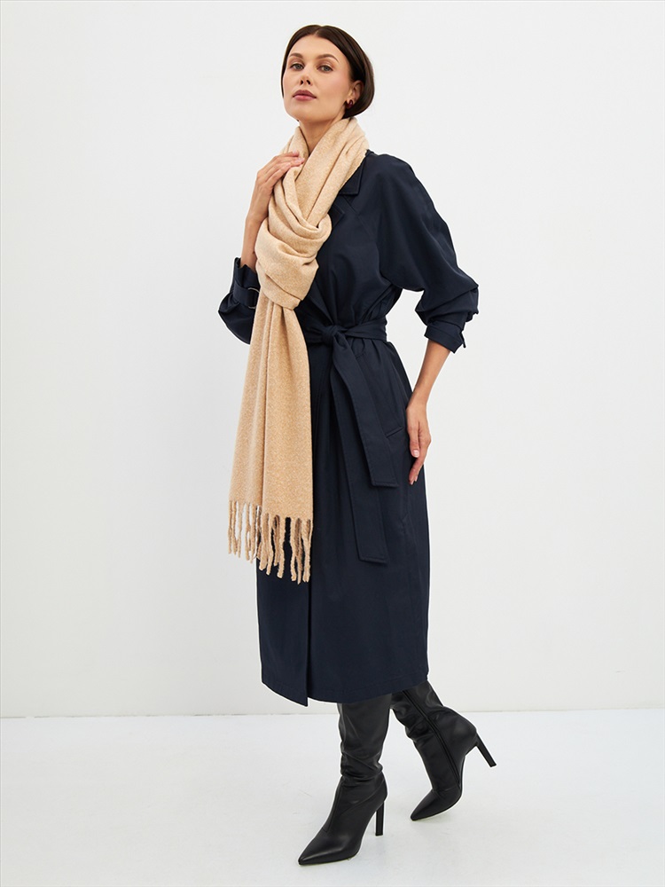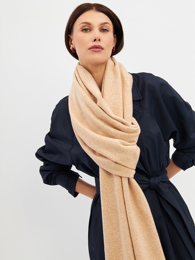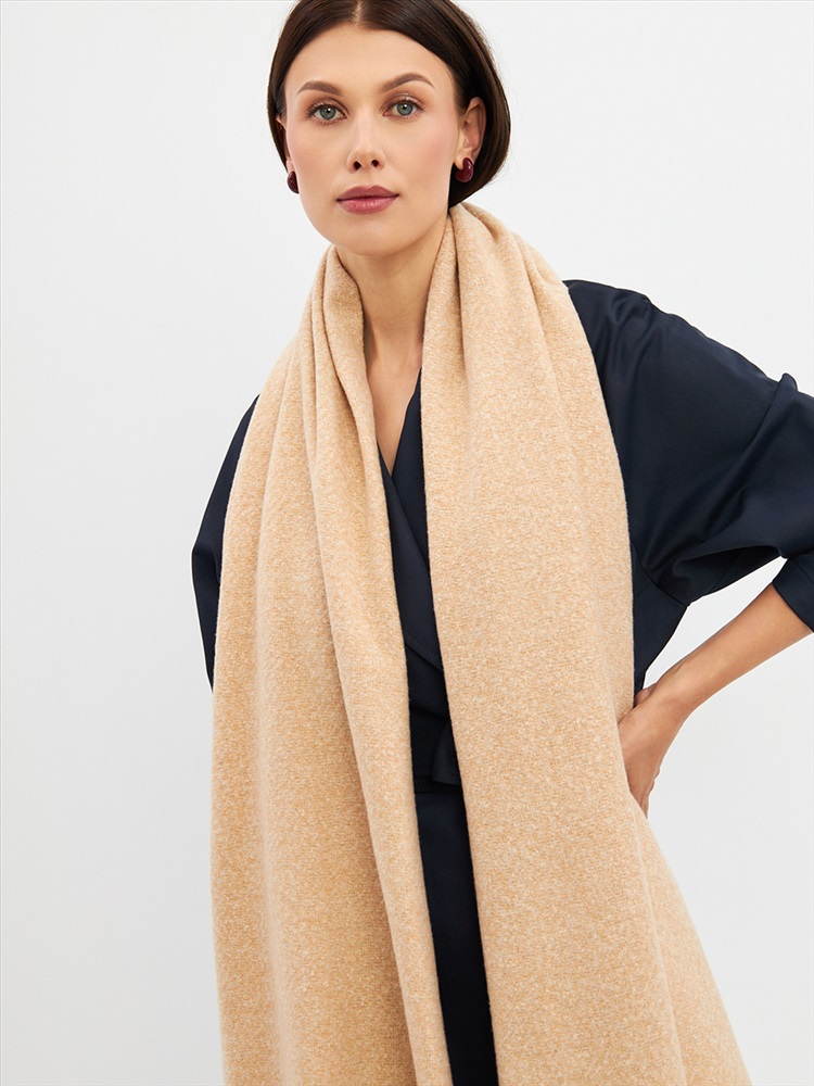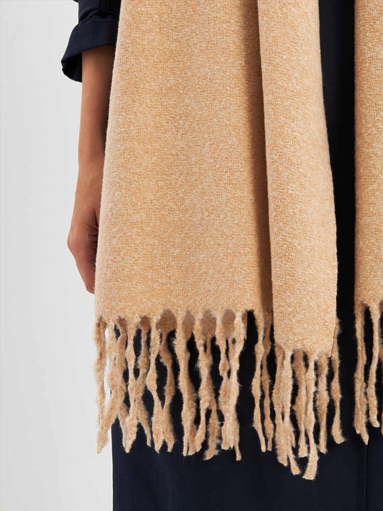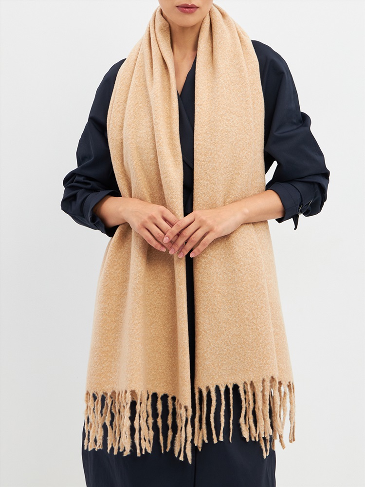 Большой, мягкий, теплый двусторонний однотонный палантин. Края изделия украшены бахромой. Машинная деликатная стирка.