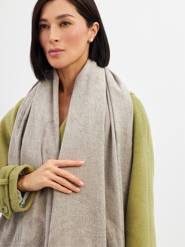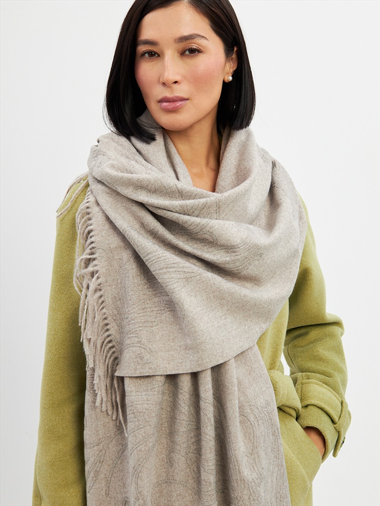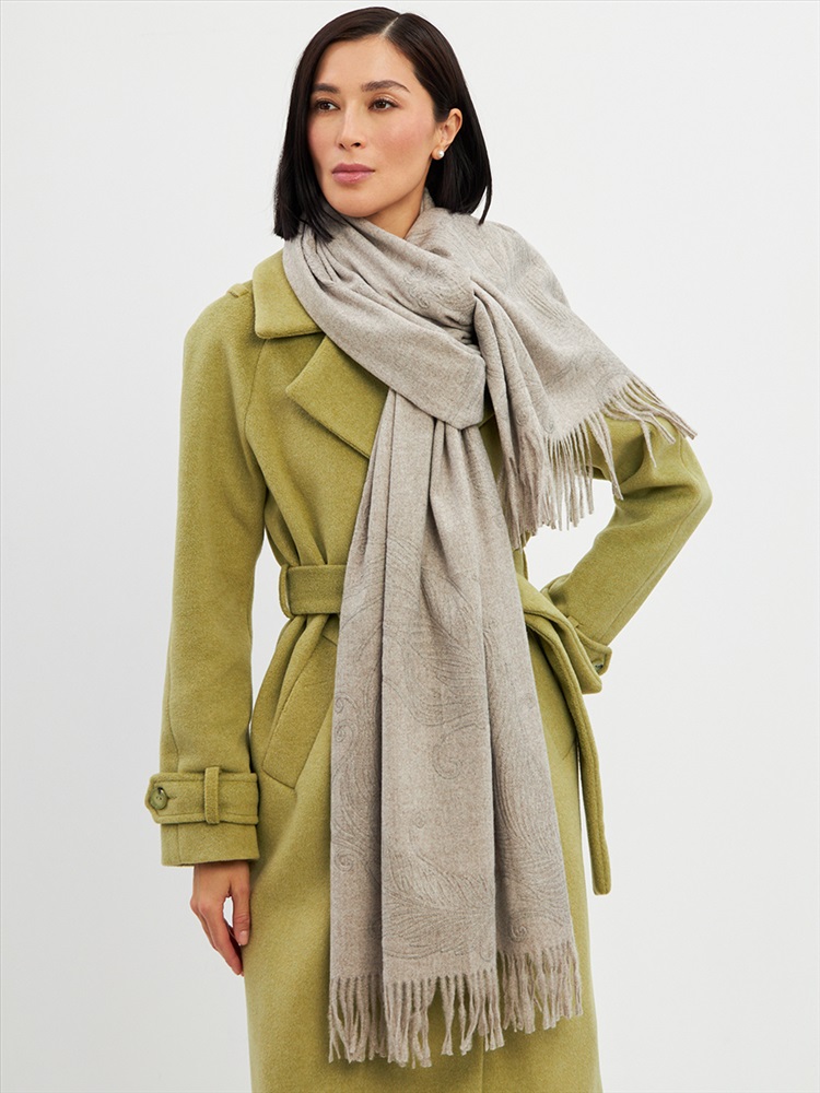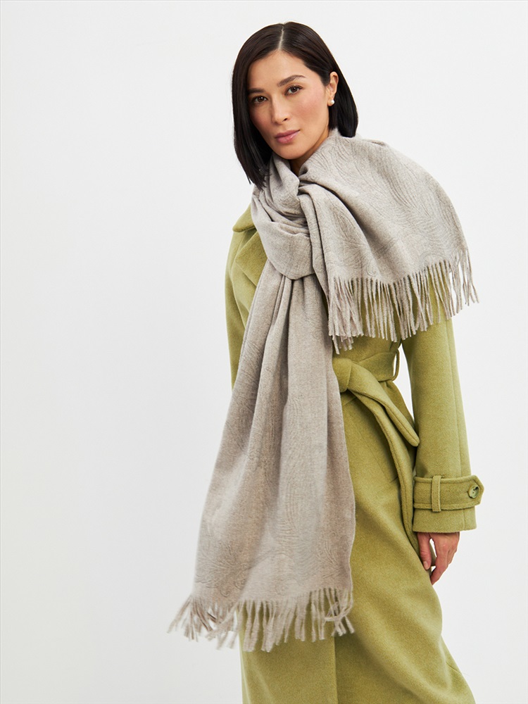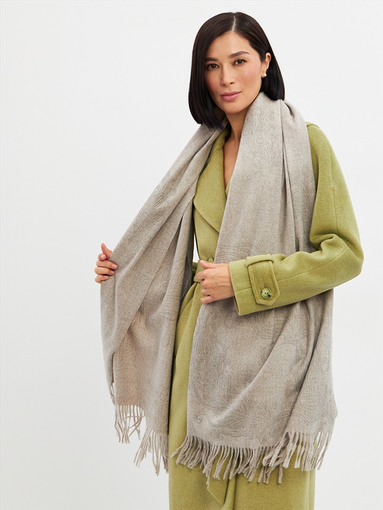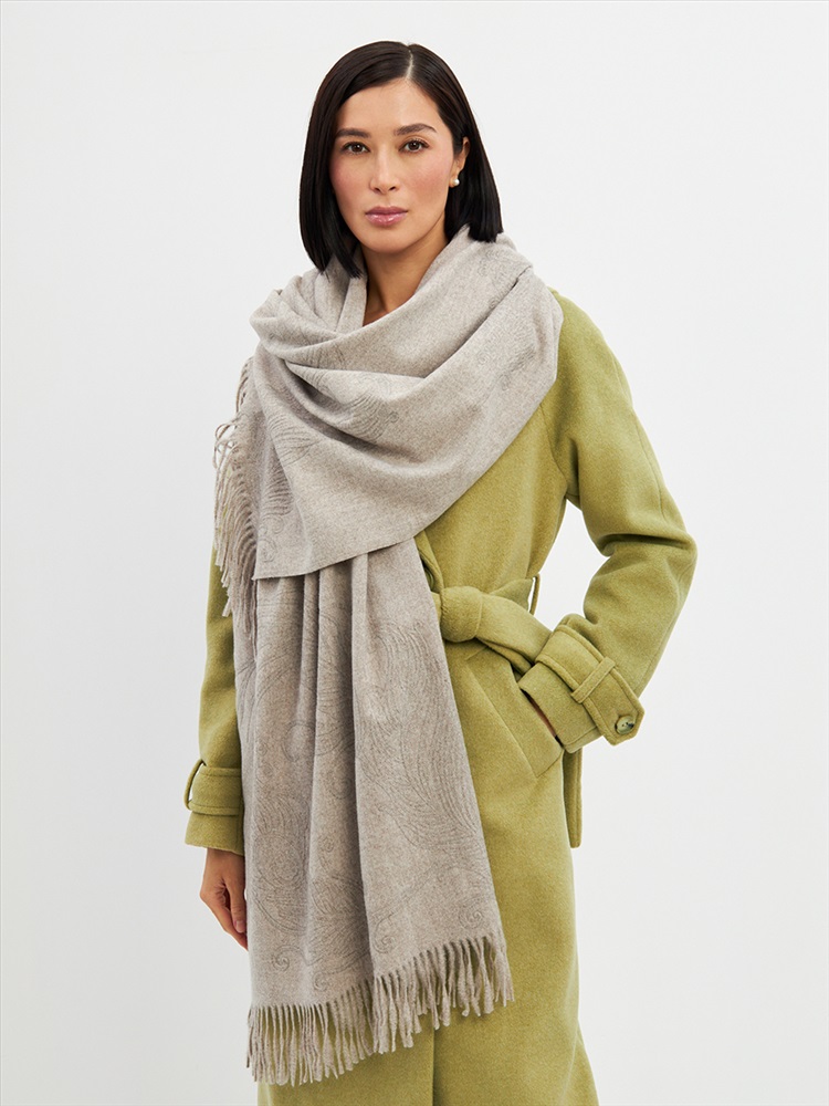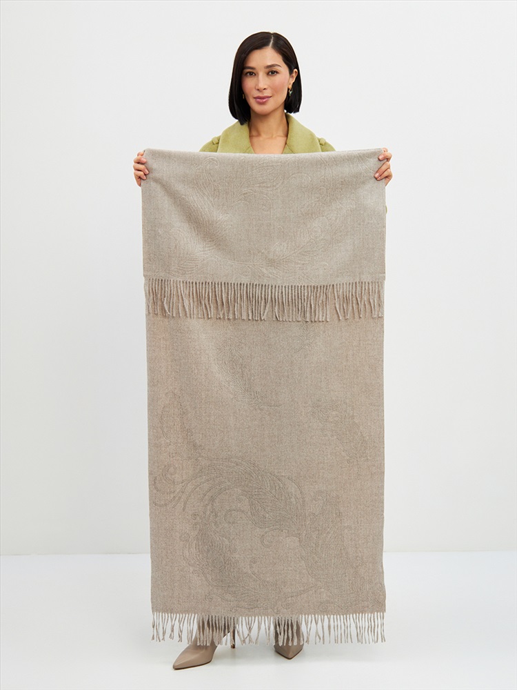 Цвет: Табак Состав: Кашемир 25% Шерсть 20% Вискоза 55% Состав: Вискоза, Шерсть, Кашемир Принт: Однотонный Размер: 180 x 70 см Большой, мягкий, теплый двусторонний однотонный палантин с принтом-печатью. Края изделия украшены бахромой. Машинная деликатная стирка. Комментарии к товару