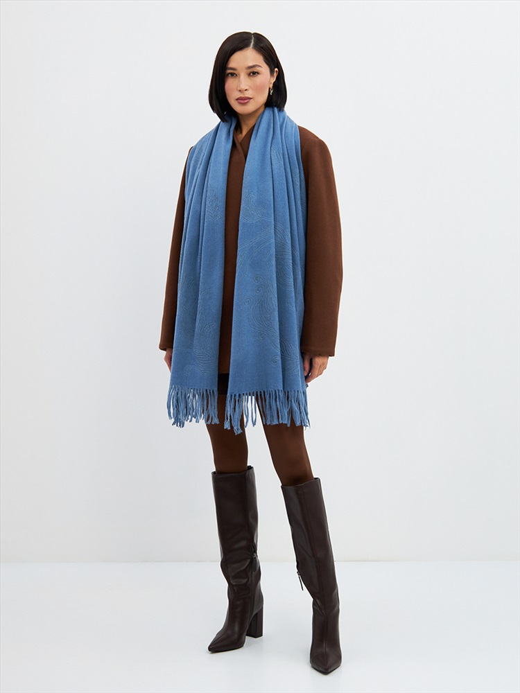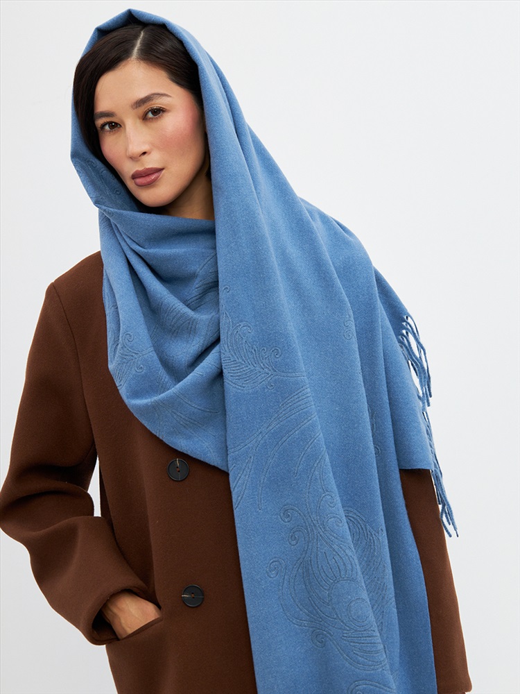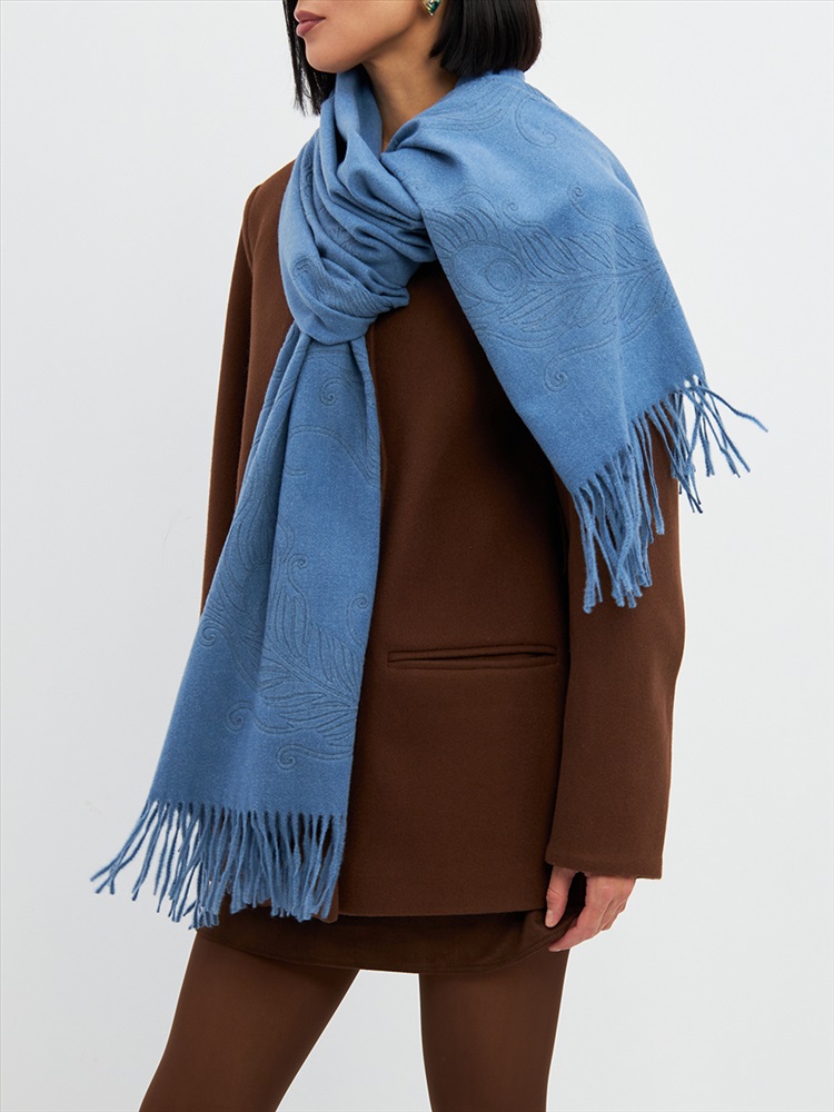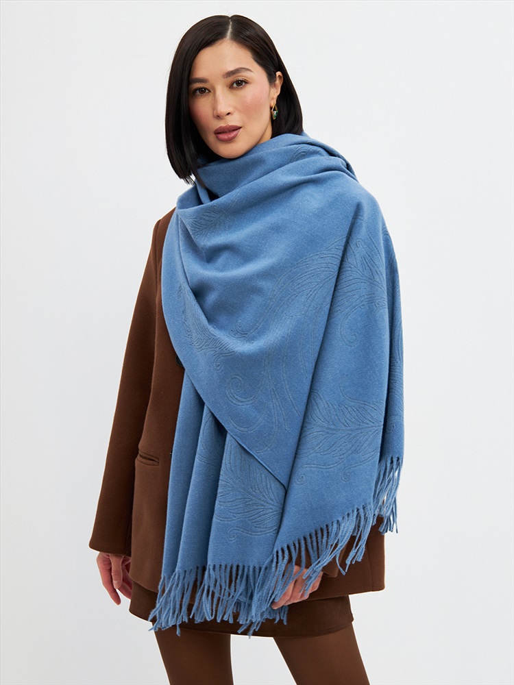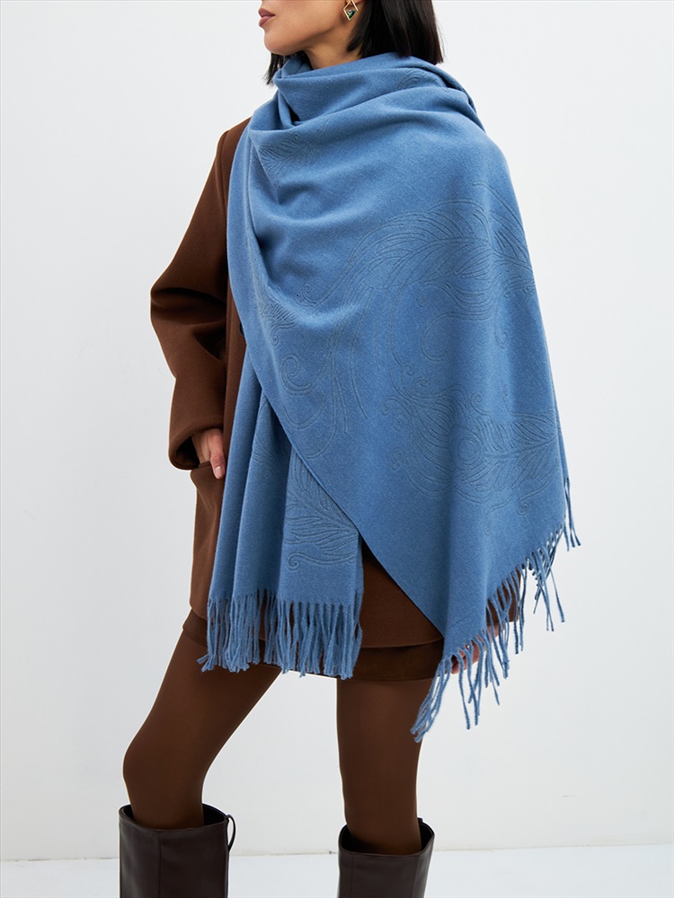 Размер: 180 x 70 см Большой, мягкий, теплый двусторонний однотонный палантин с принтом-печатью. Края изделия украшены бахромой. Машинная деликатная стирка.