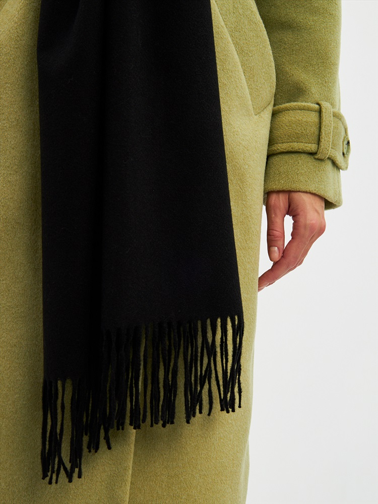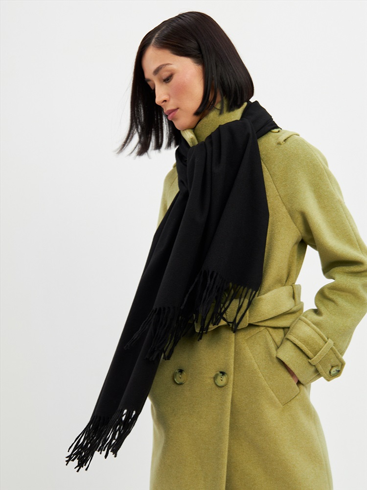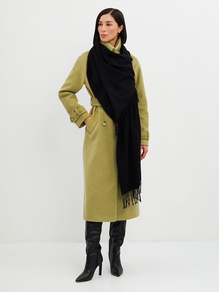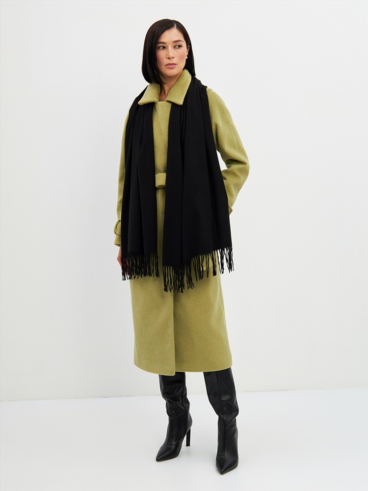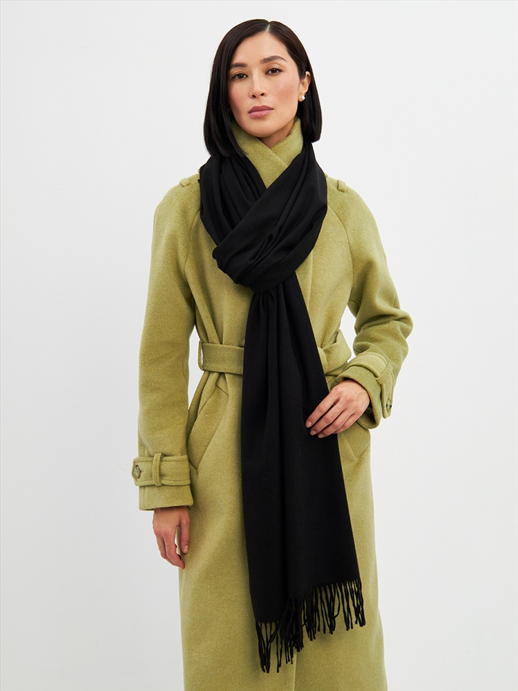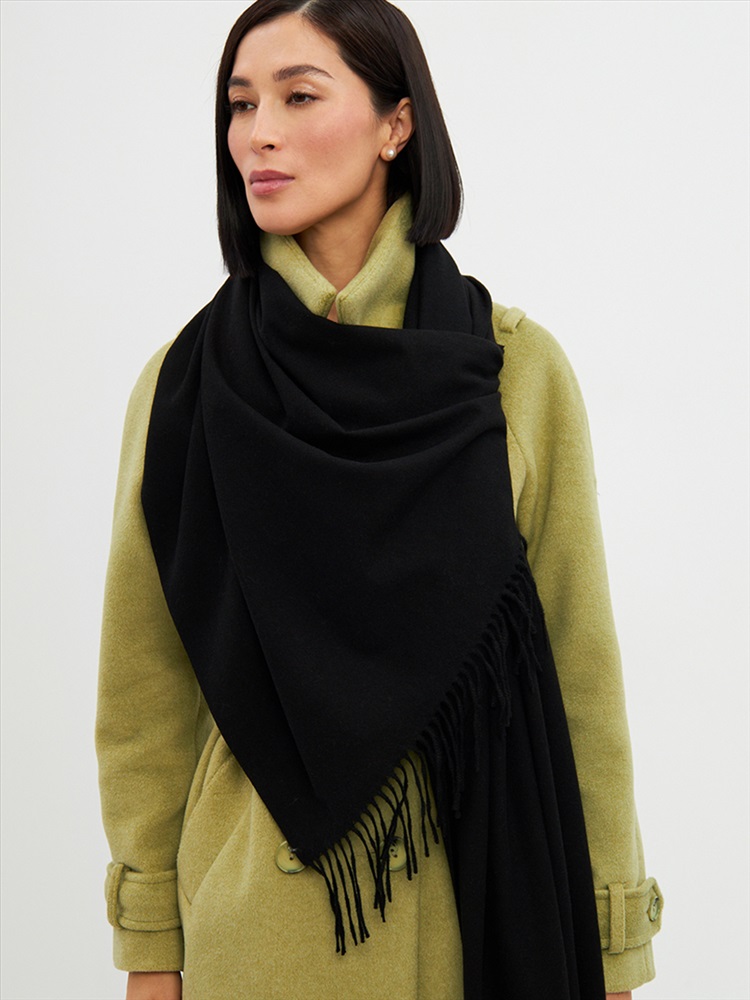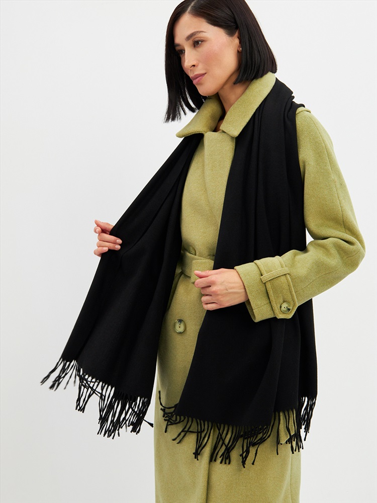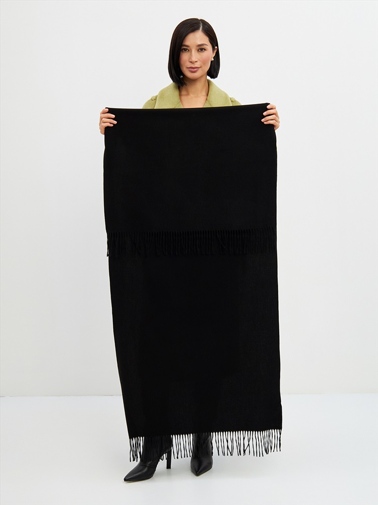 Цвет: Черный Состав: Вискоза, Шерсть, Модал Состав: Шерсть 20% Модал 45% Вискоза 35% Принт: Однотонный Большой, мягкий, теплый двусторонний однотонный палантин. Края изделия украшены кистями. Машинная деликатная стирка. Комментарии к товару