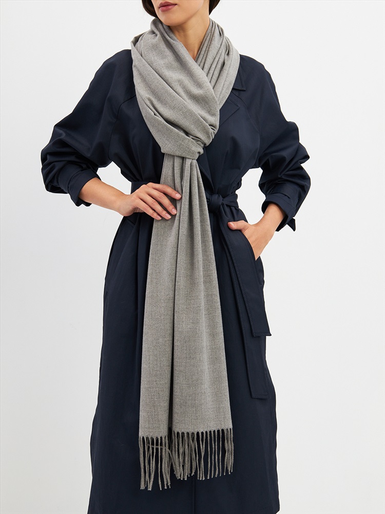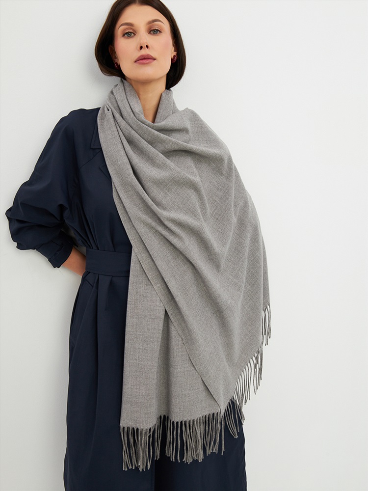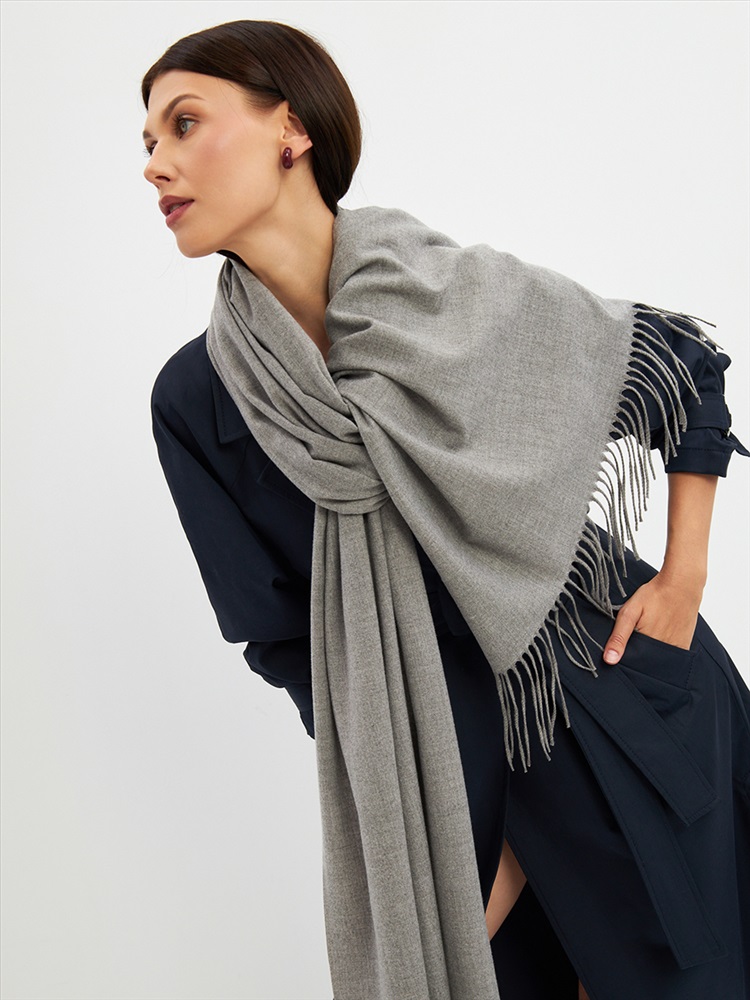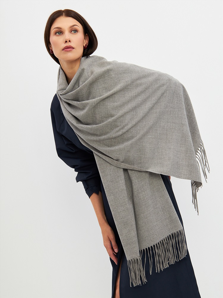 Цвет: Серый, Светло-серый Состав: Шерсть 20% Модал 45% Вискоза 35% Состав: Вискоза, Шерсть, Модал Размер: 70 х 180 см Принт: Однотонный Большой, мягкий, теплый двусторонний однотонный палантин. Края изделия украшены кистями. Машинная деликатная стирка. Комментарии к товару