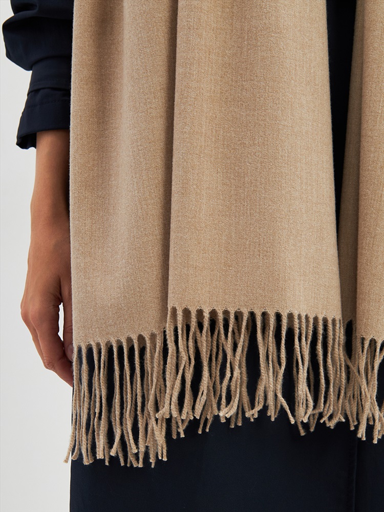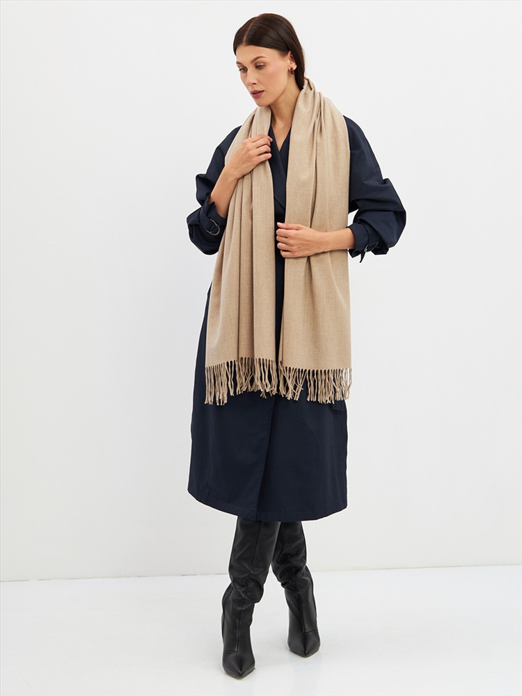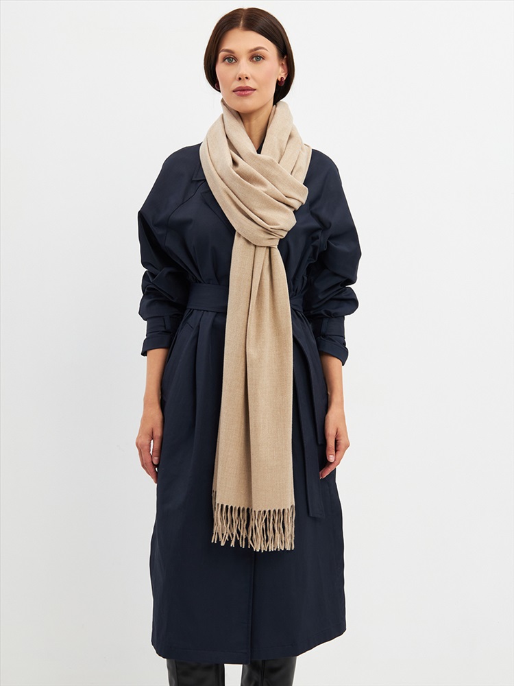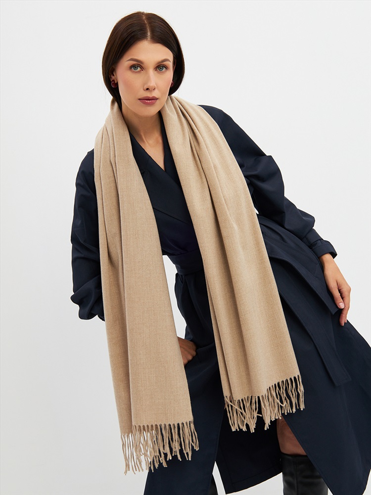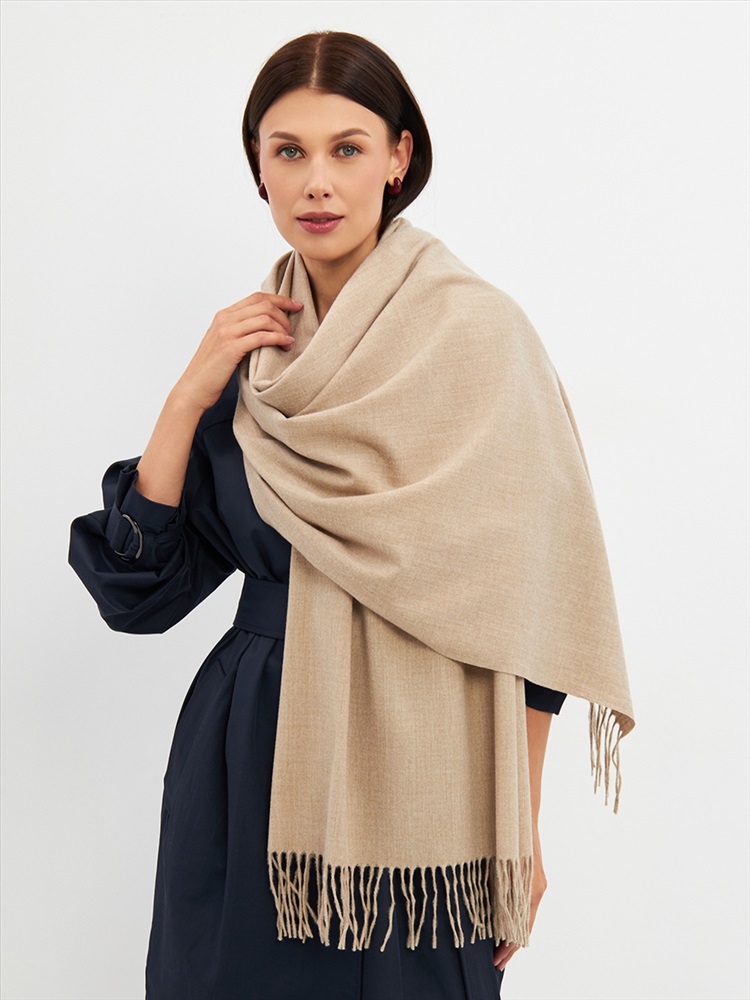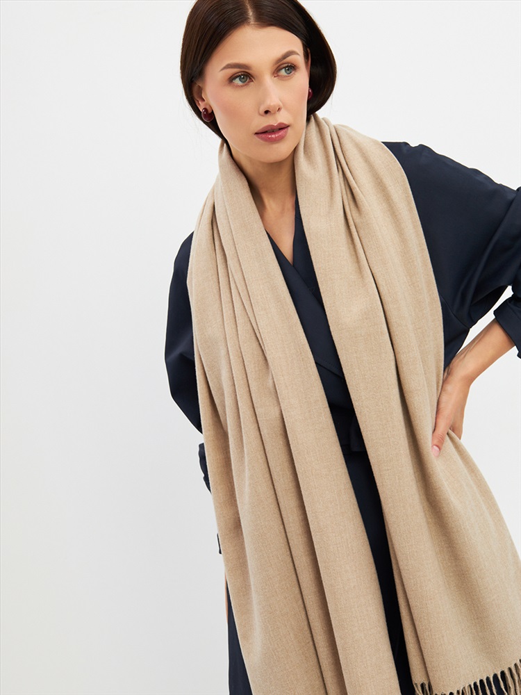 Цвет: Бежевый Состав: Шерсть 20% Модал 45% Вискоза 35% Состав: Вискоза, Шерсть, Модал Размер: 70 х 180 см Принт: Однотонный Большой, мягкий, теплый двусторонний однотонный палантин. Края изделия украшены кистями. Машинная деликатная стирка. Комментарии к товару