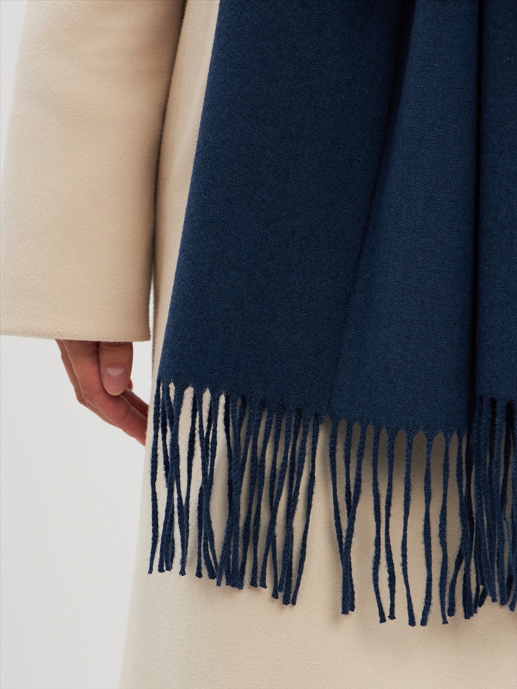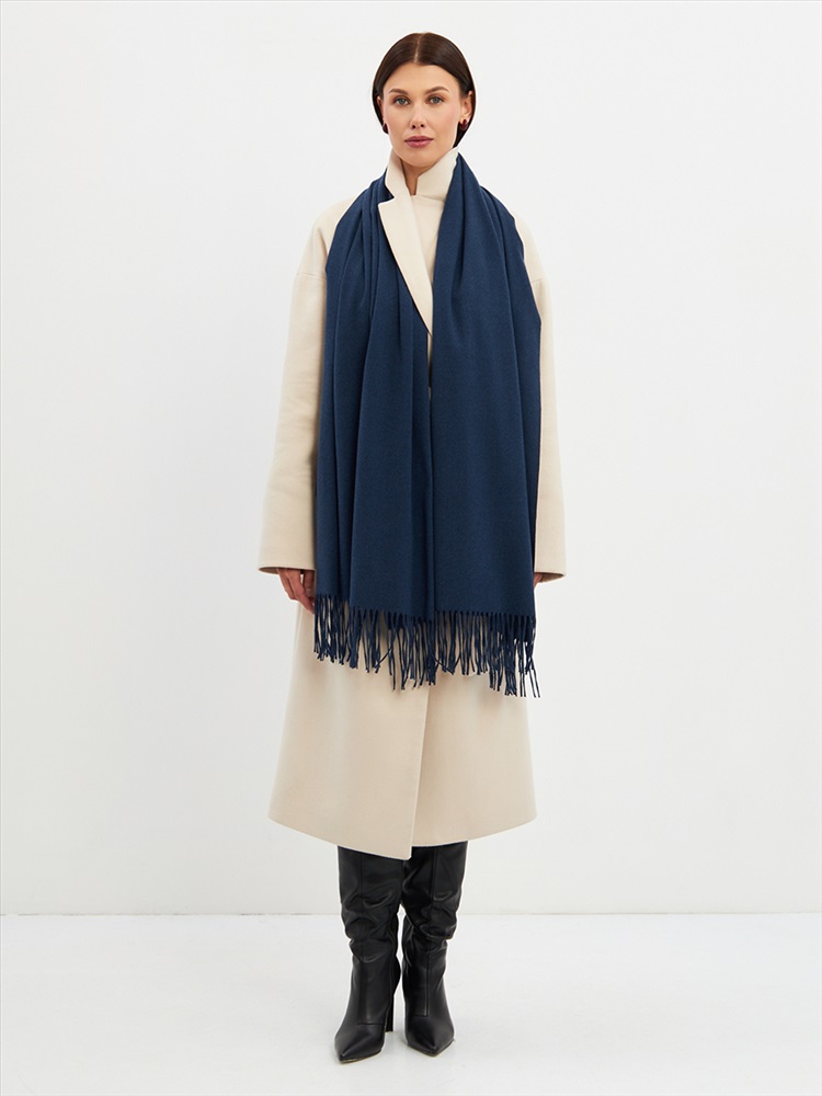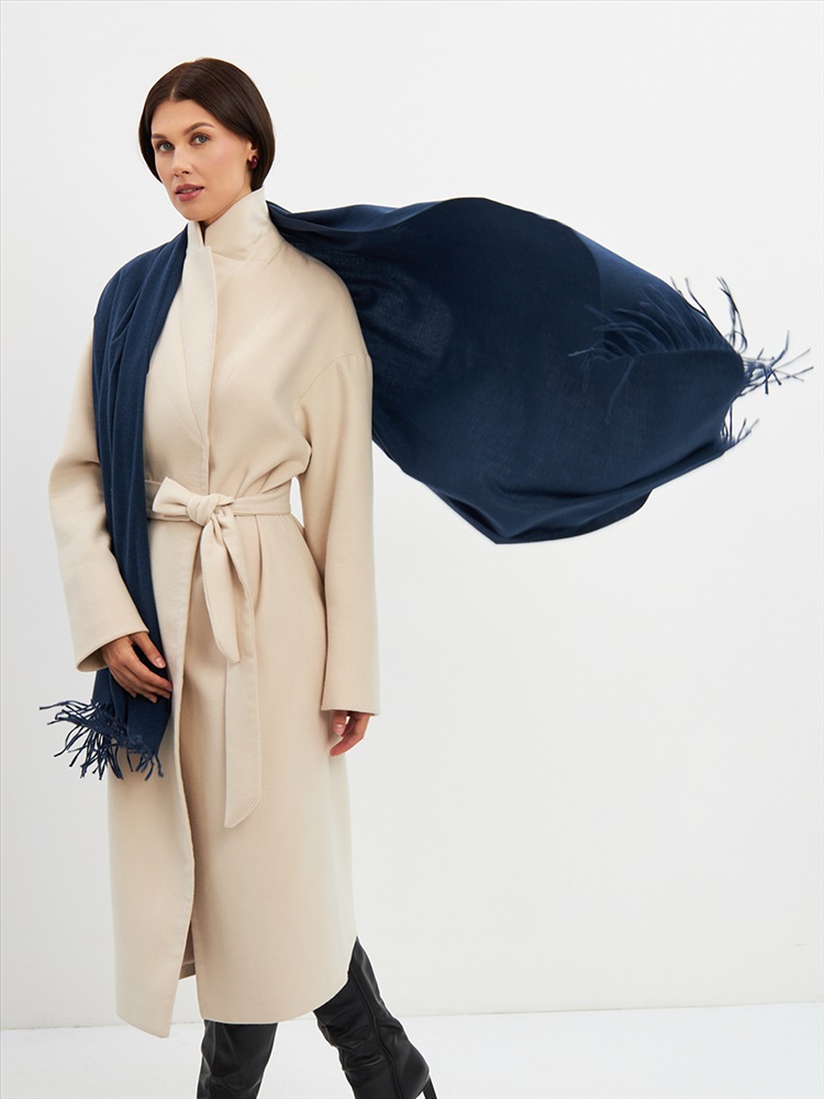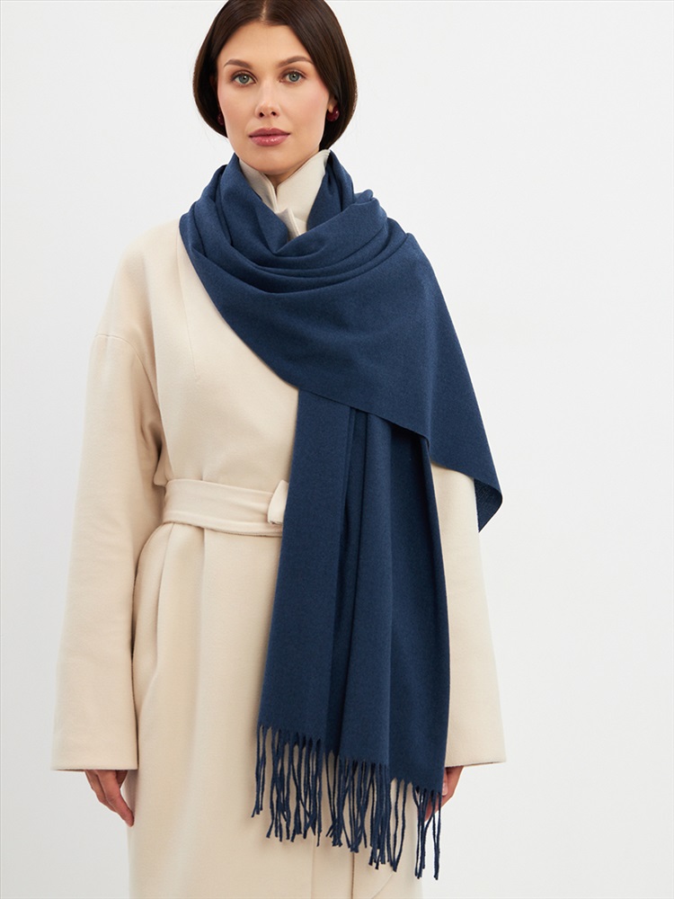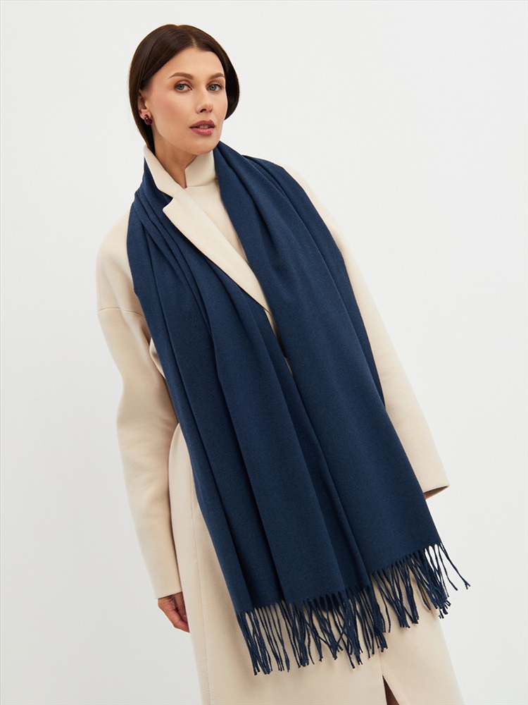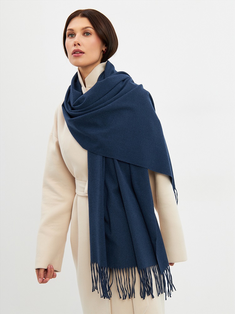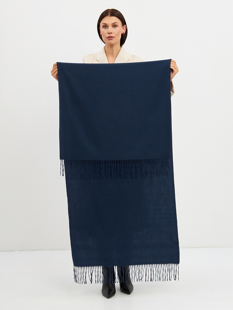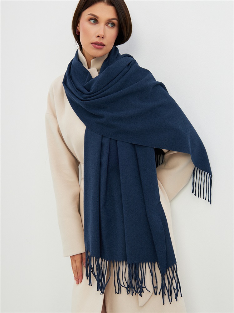 Большой, мягкий, теплый двусторонний однотонный палантин. Края изделия украшены кистями. Машинная деликатная стирка.