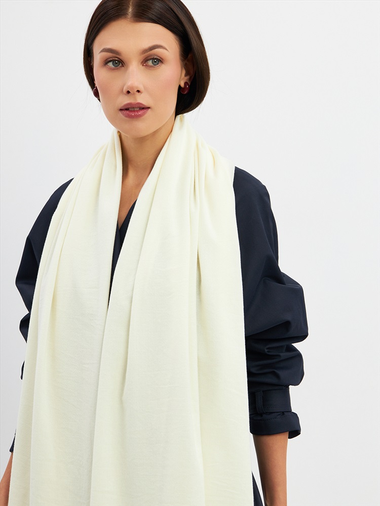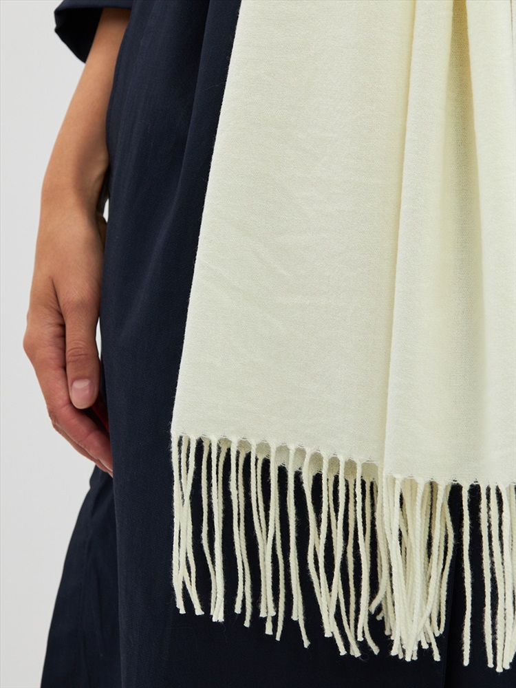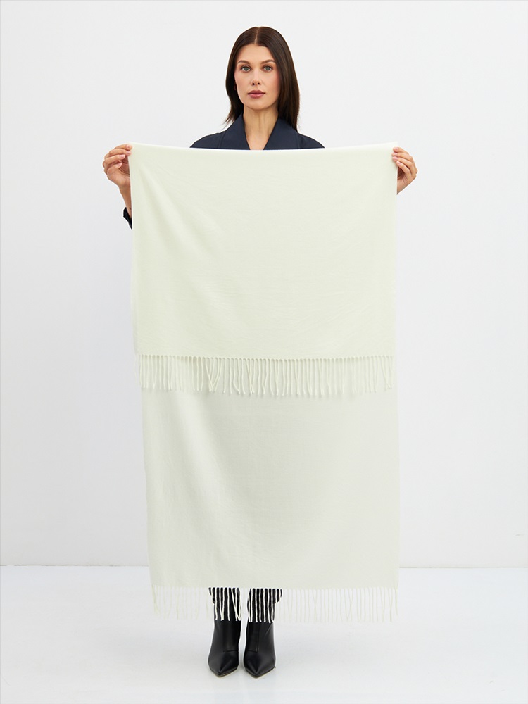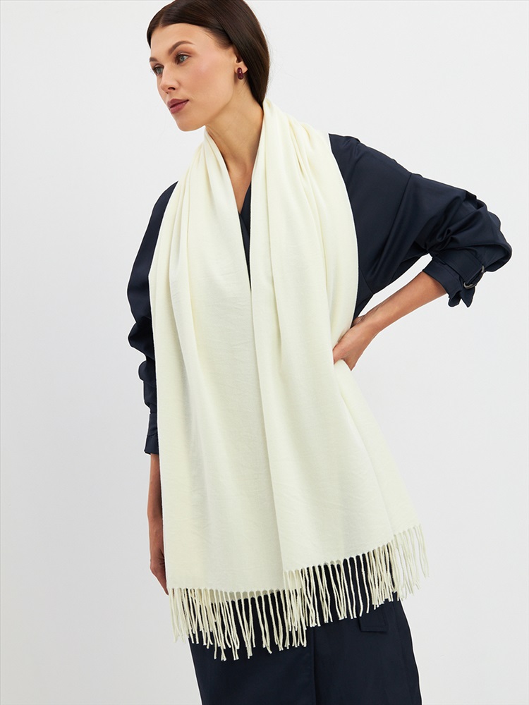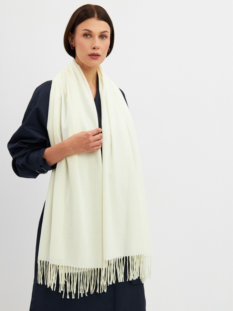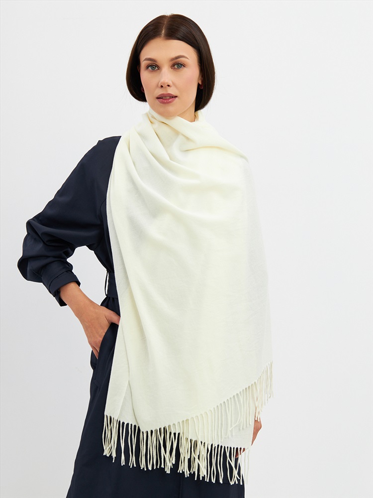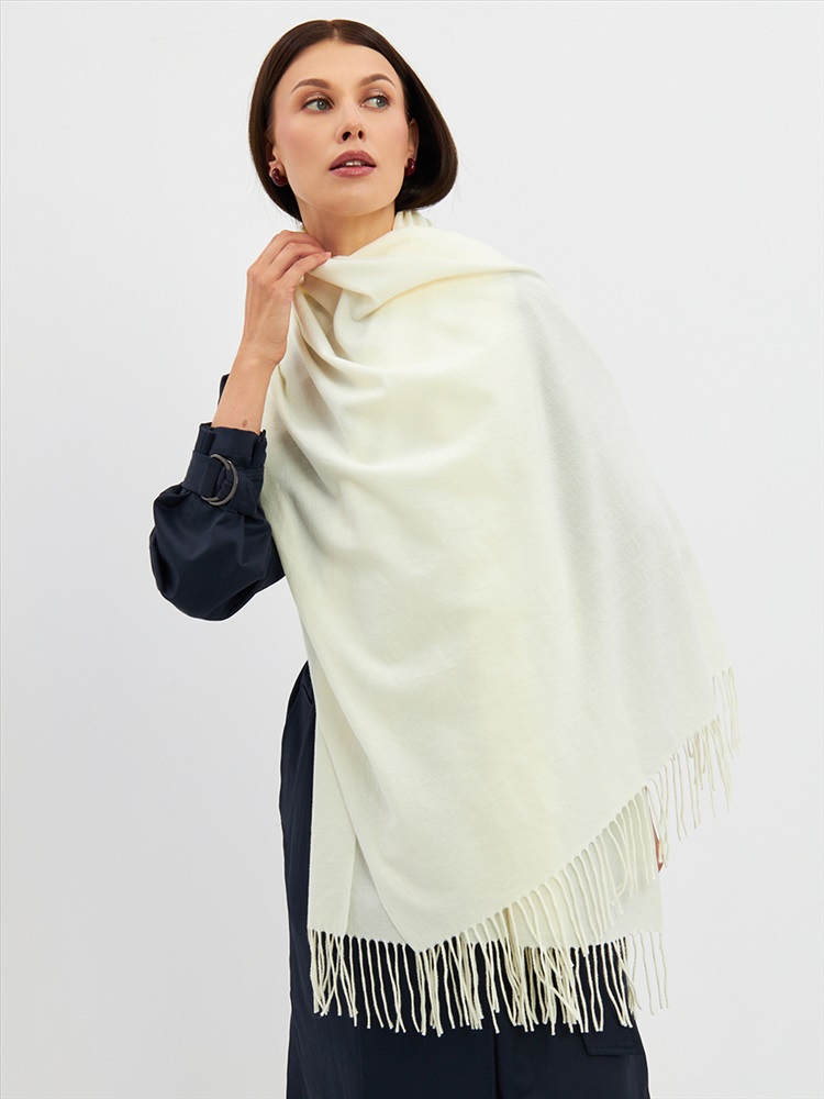 Большой, мягкий, теплый двусторонний однотонный палантин. Края изделия украшены кистями. Машинная деликатная стирка.