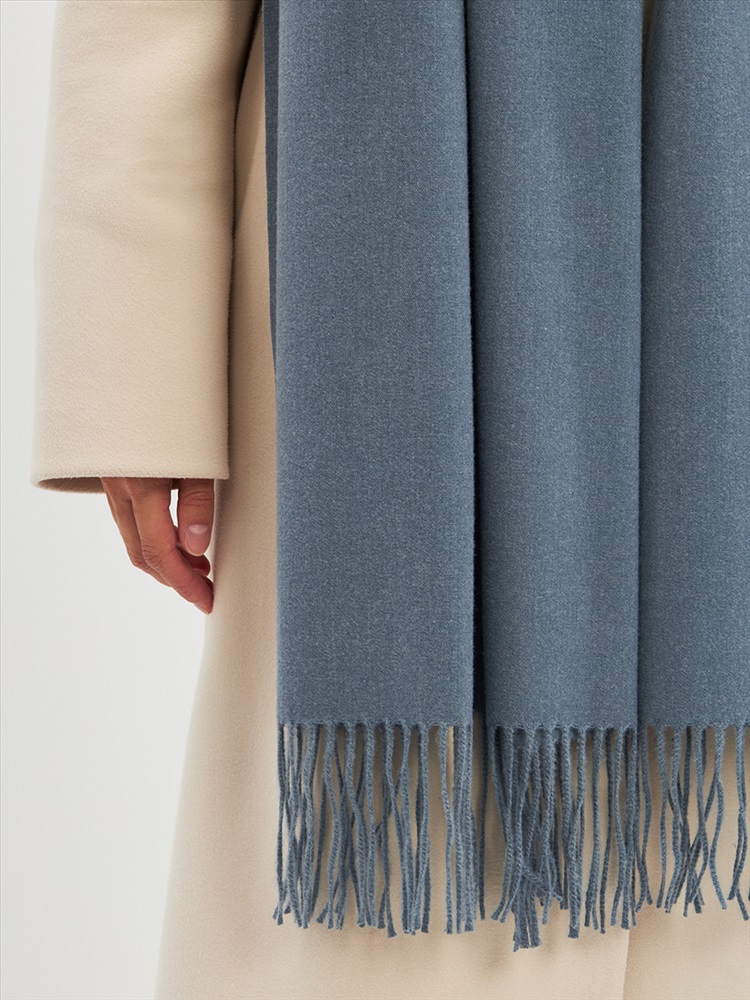 Большой, мягкий, теплый двусторонний однотонный палантин. Края изделия украшены кистями. Машинная деликатная стирка.