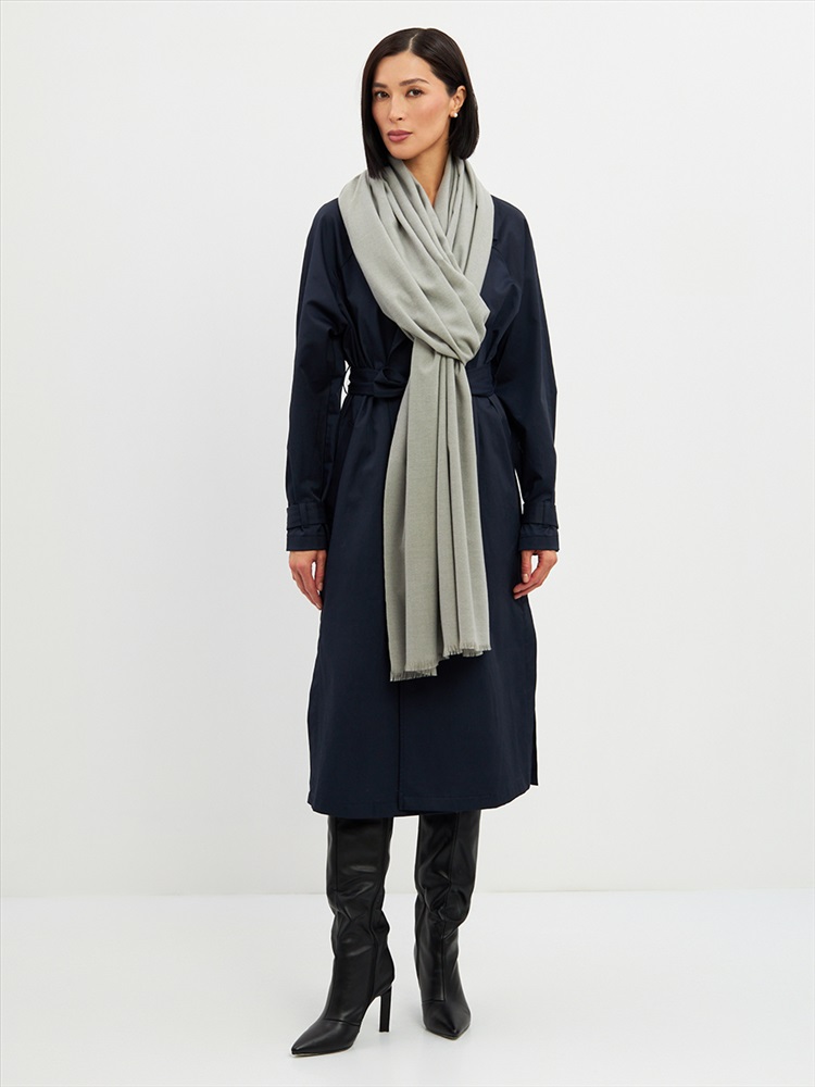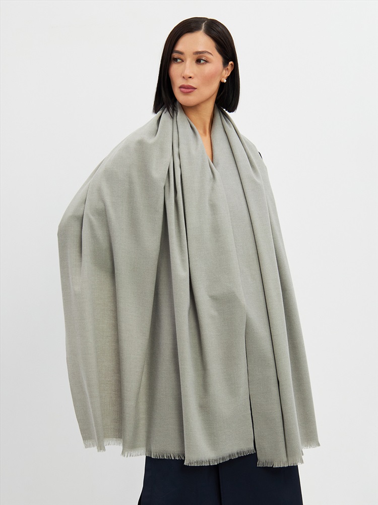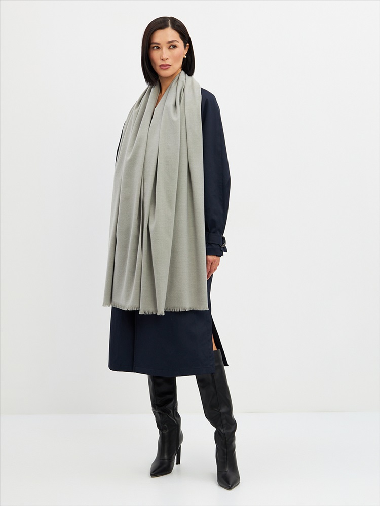 Цвет: Серый Состав: Вискоза, Шерсть, Модал Состав: Шерсть 20% Модал 45% Вискоза 35% Принт: Однотонный Большой, мягкий, теплый двусторонний однотонный палантин. Края изделия украшены бахромой. Машинная деликатная стирка. Комментарии к товару
