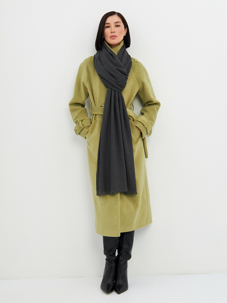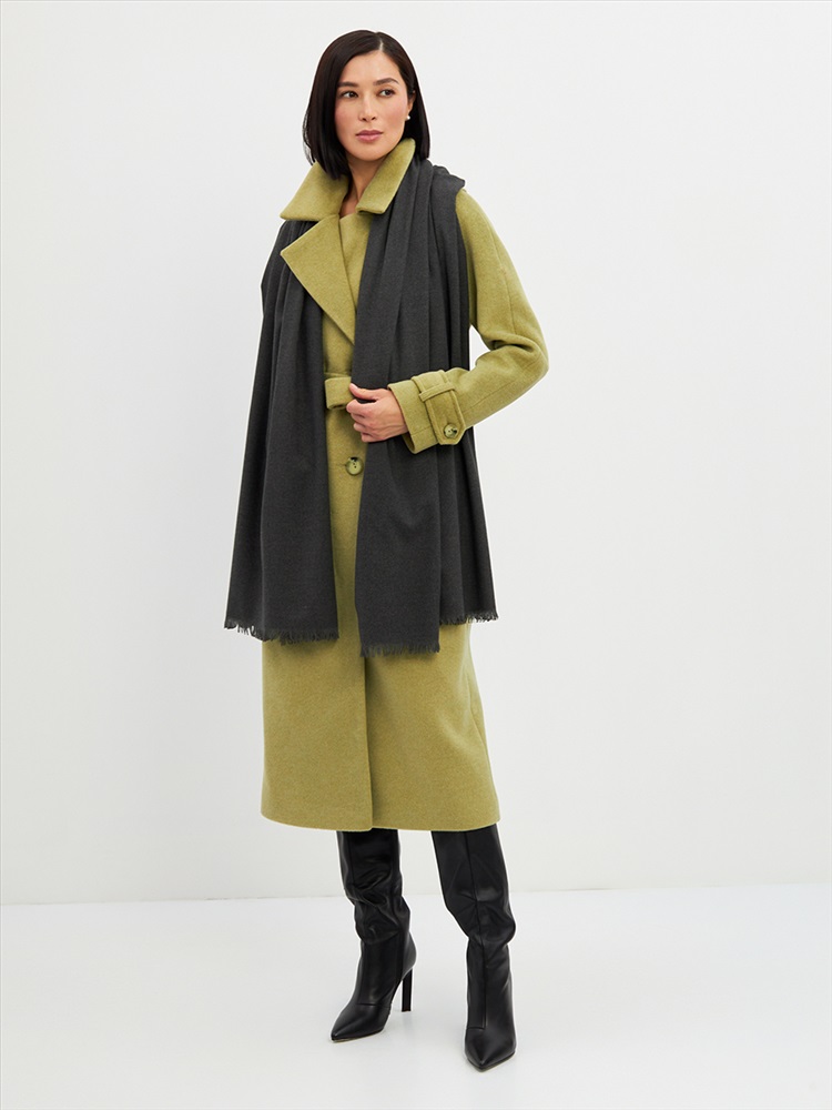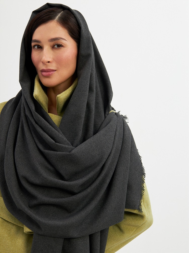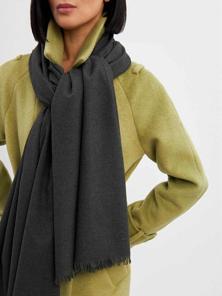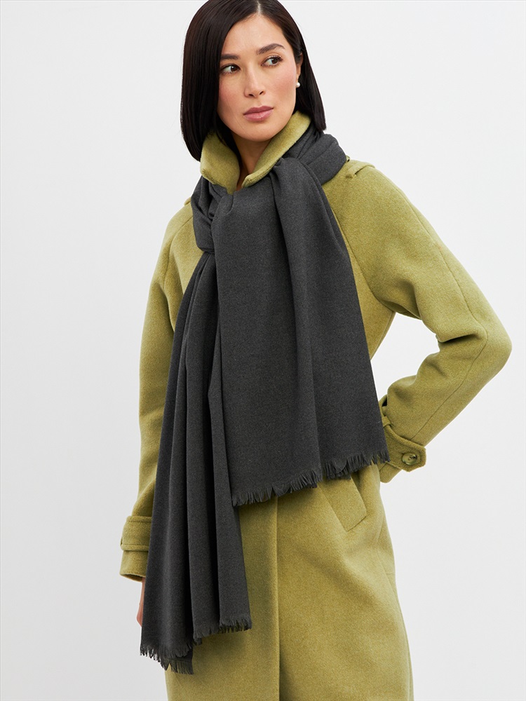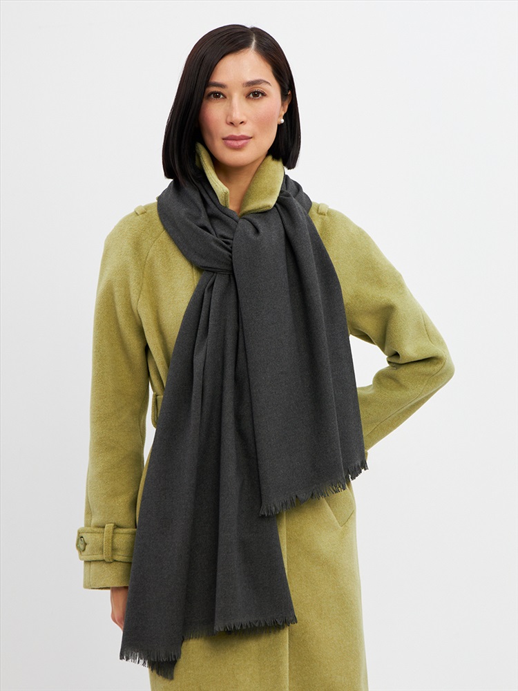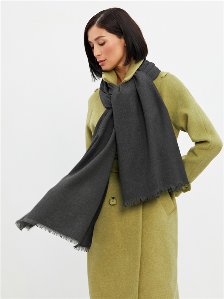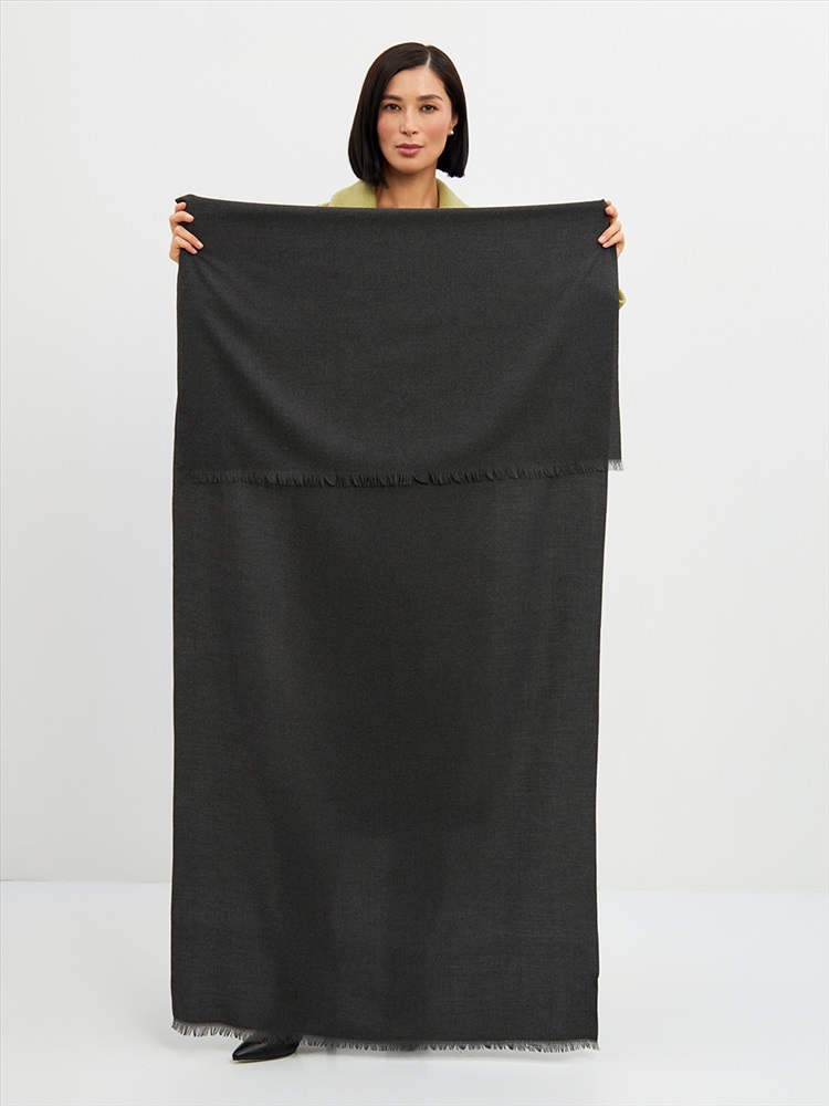 Большой, мягкий, теплый двусторонний однотонный палантин. Края изделия украшены бахромой. Машинная деликатная стирка.