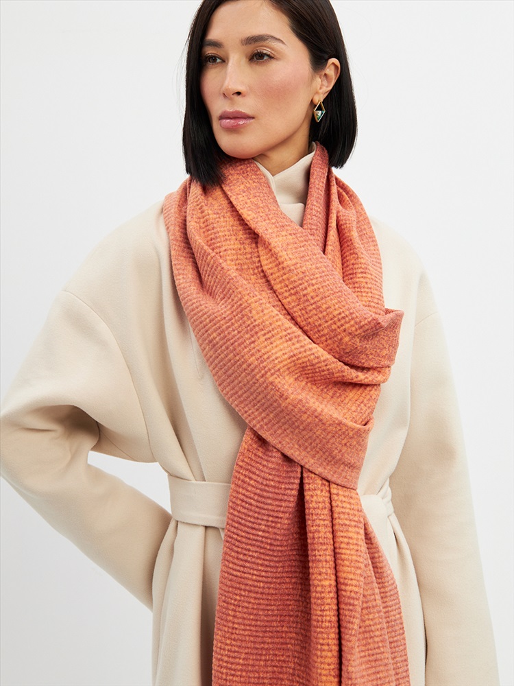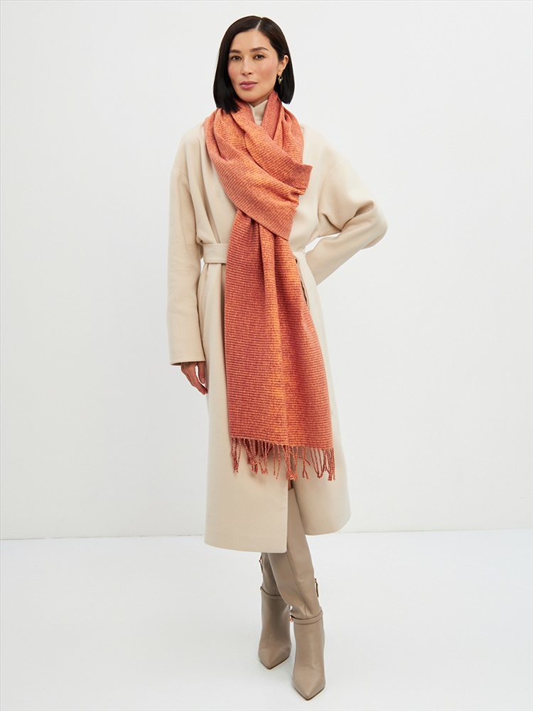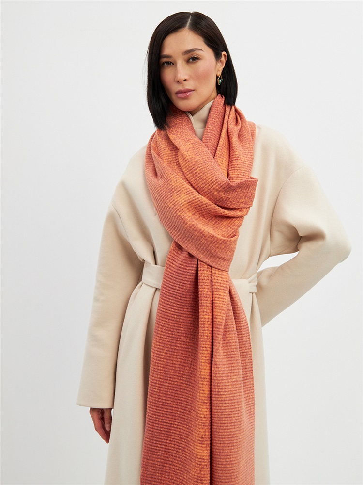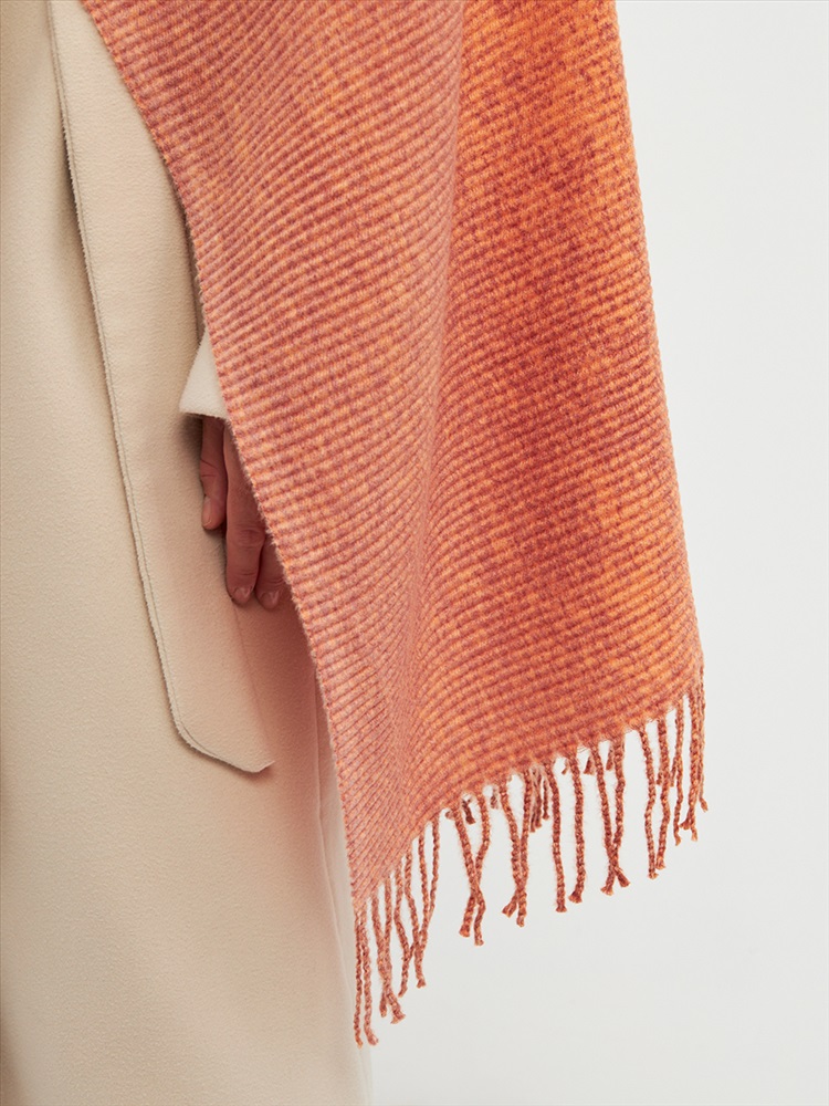 Большой, мягкий, теплый двусторонний однотонный палантин с градиентом переход тона. Края изделия украшены бахромой. Машинная деликатная стирка.