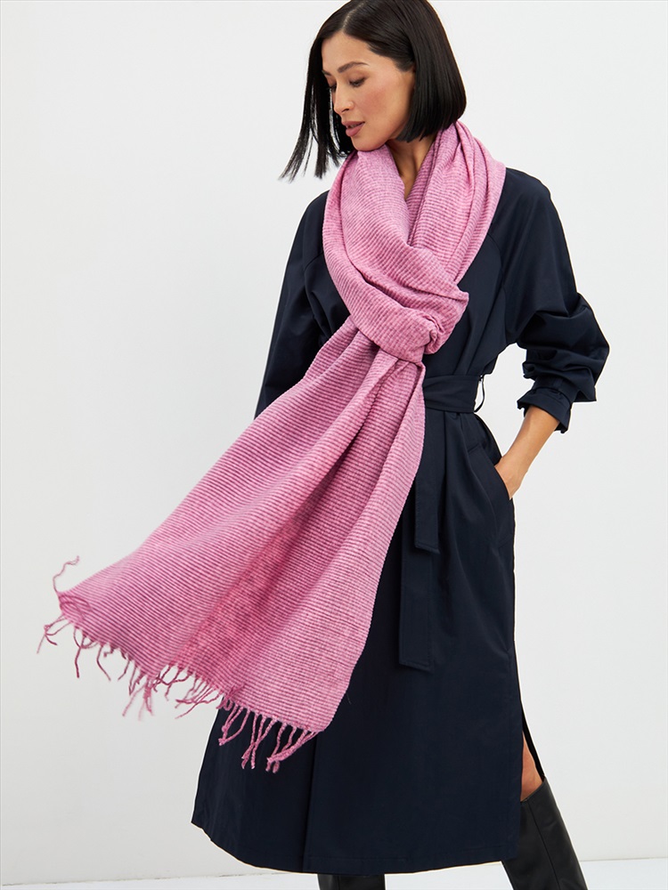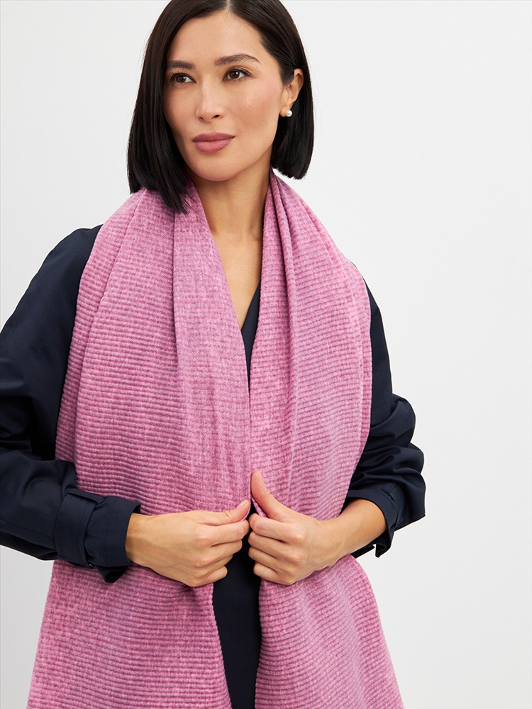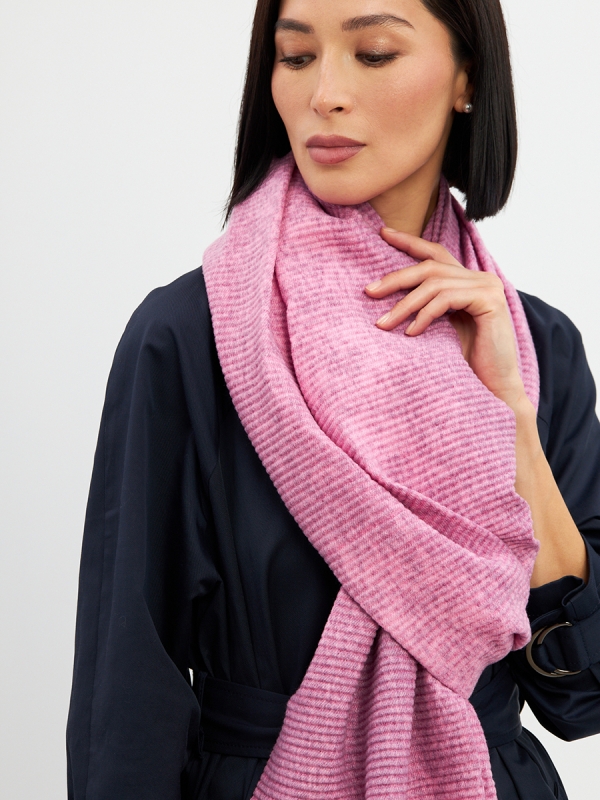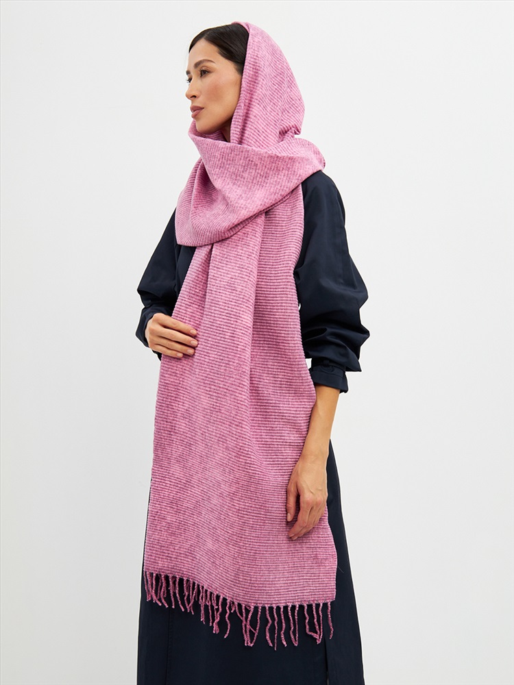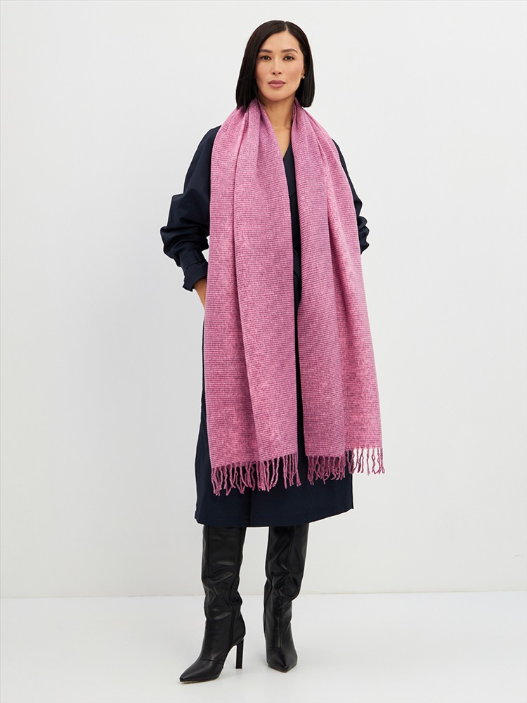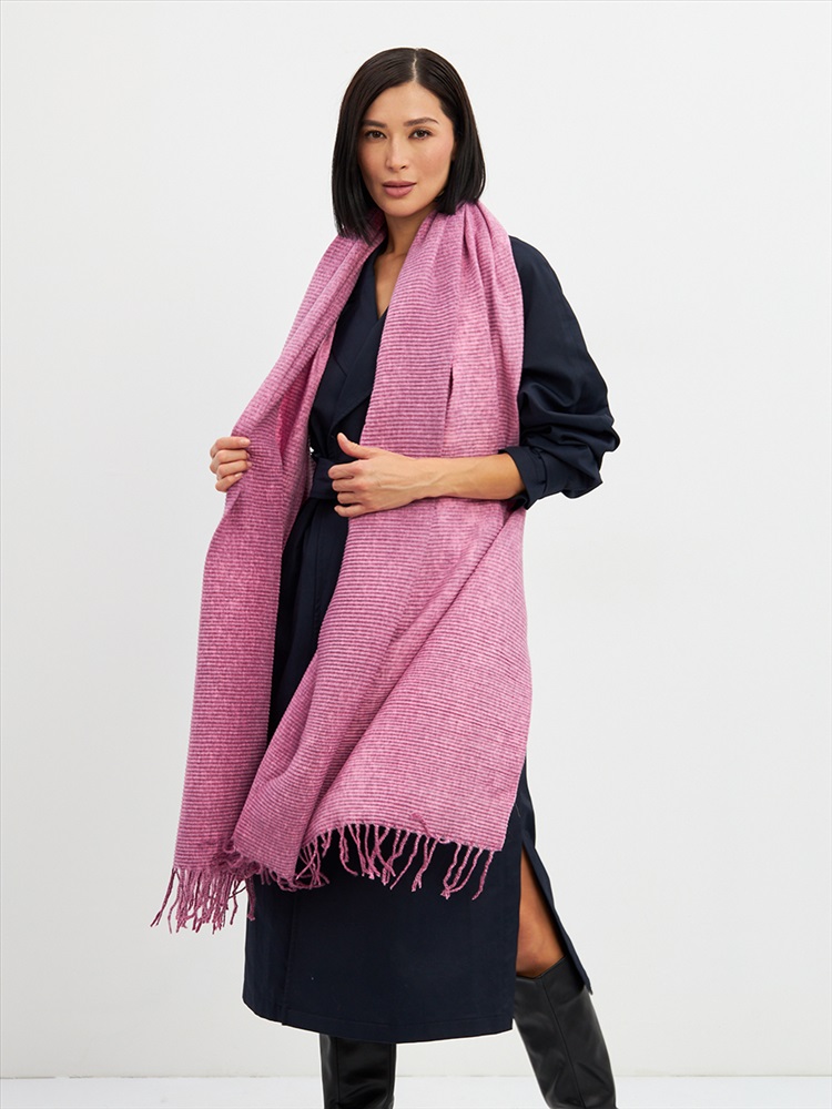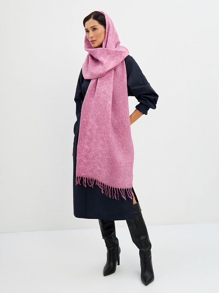 Большой, мягкий, теплый двусторонний однотонный меланжевый палантин. Края изделия украшены кистями. Машинная деликатная стирка.