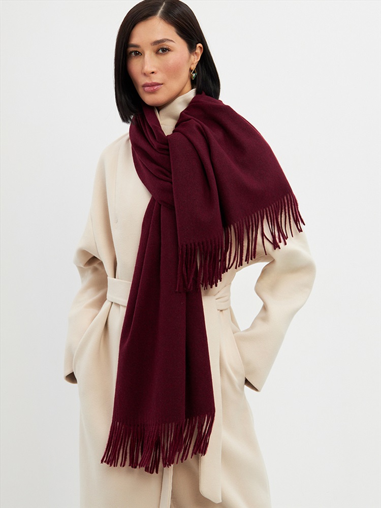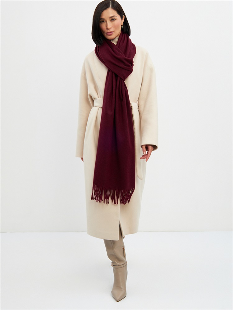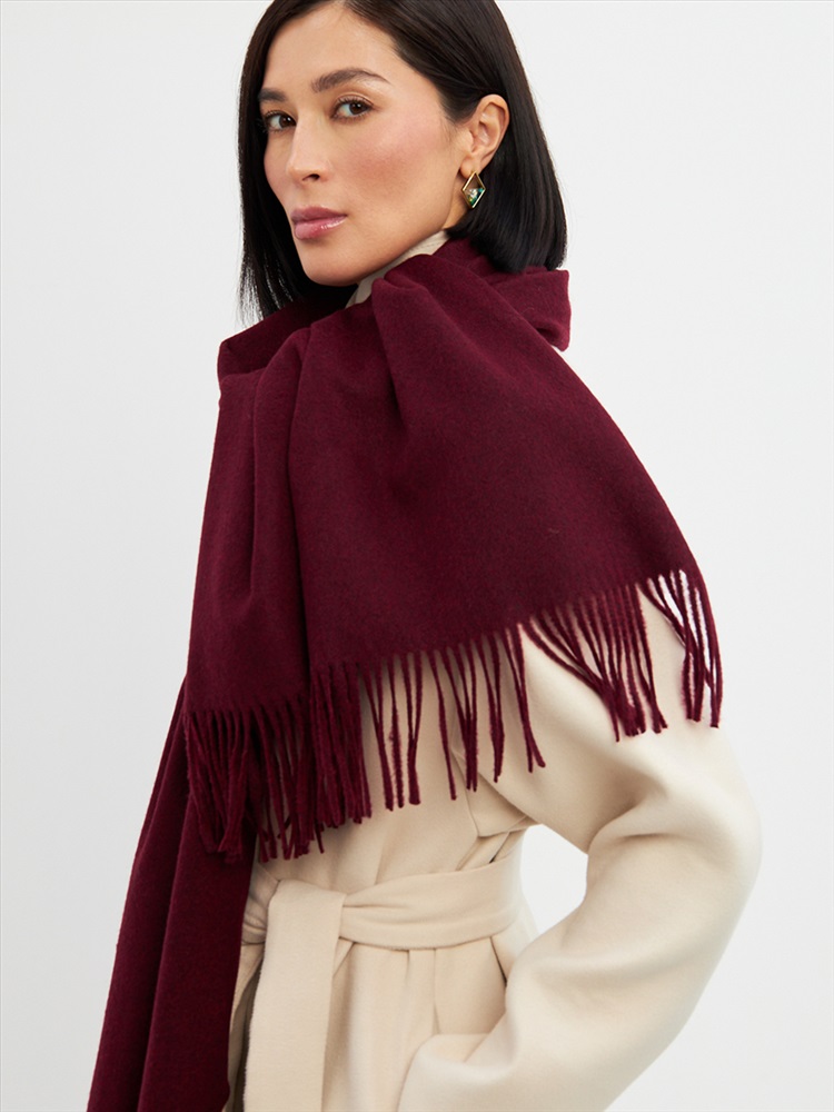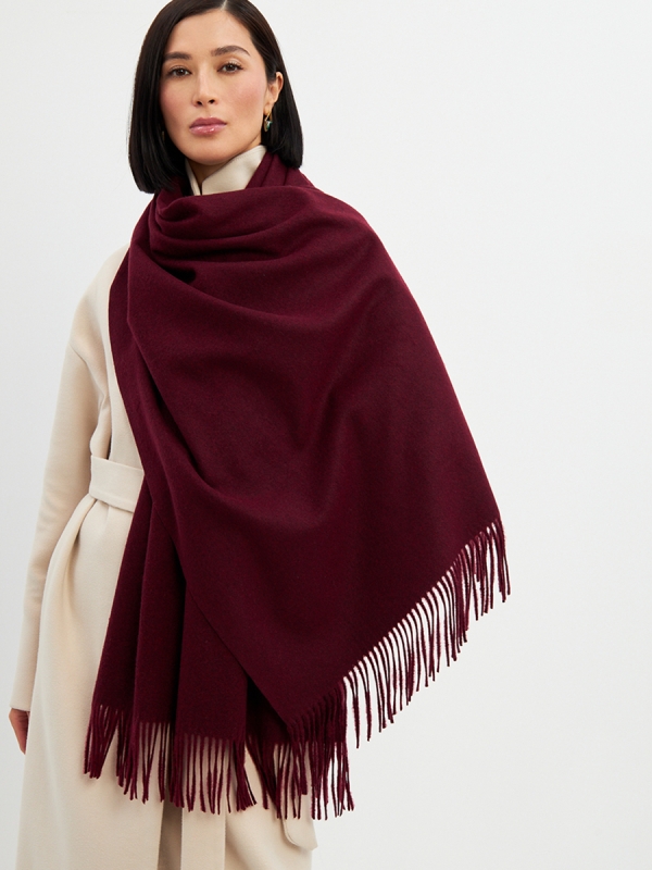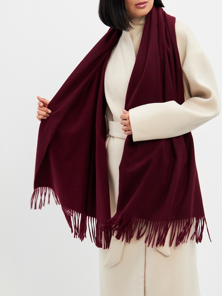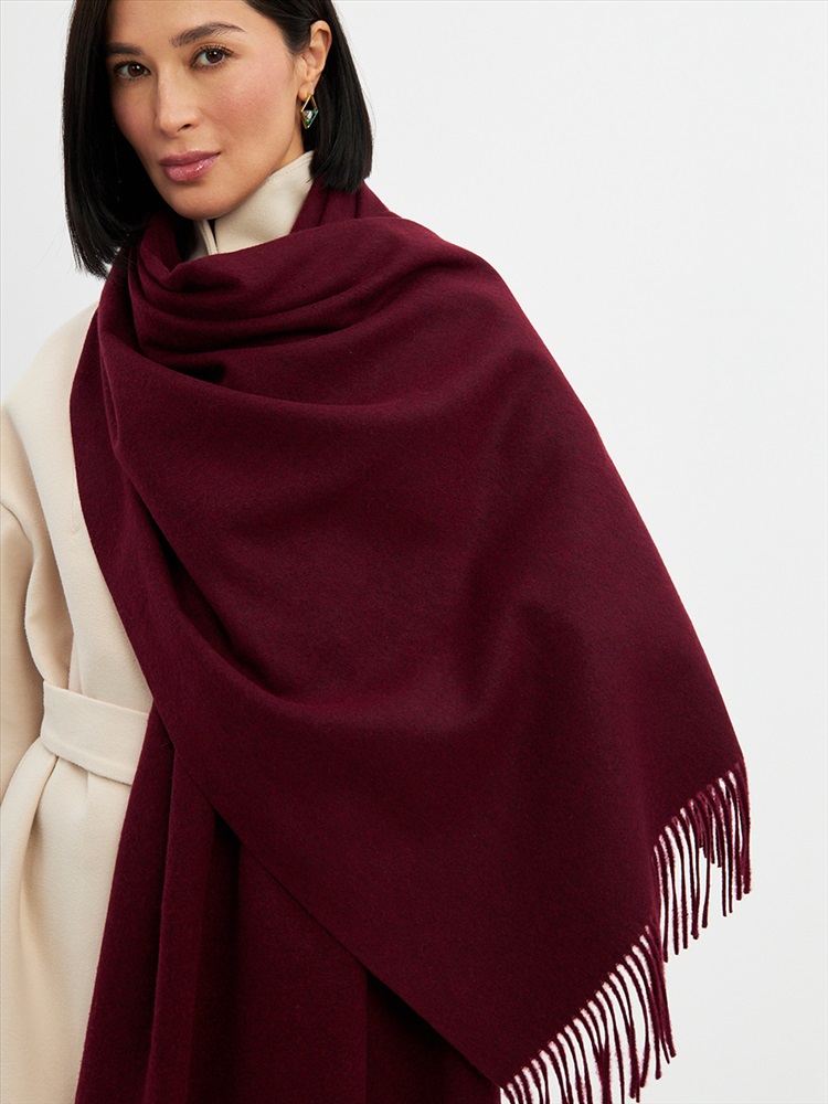Цвет: Бордовый, Марсала Состав: Вискоза, Шерсть, Кашемир Состав: Кашемир 25% Шерсть 20% Вискоза 55% Принт: Однотонный Большой, мягкий, теплый двусторонний однотонный палантин. Края изделия украшены кистями. Машинная деликатная стирка. Комментарии к товару
