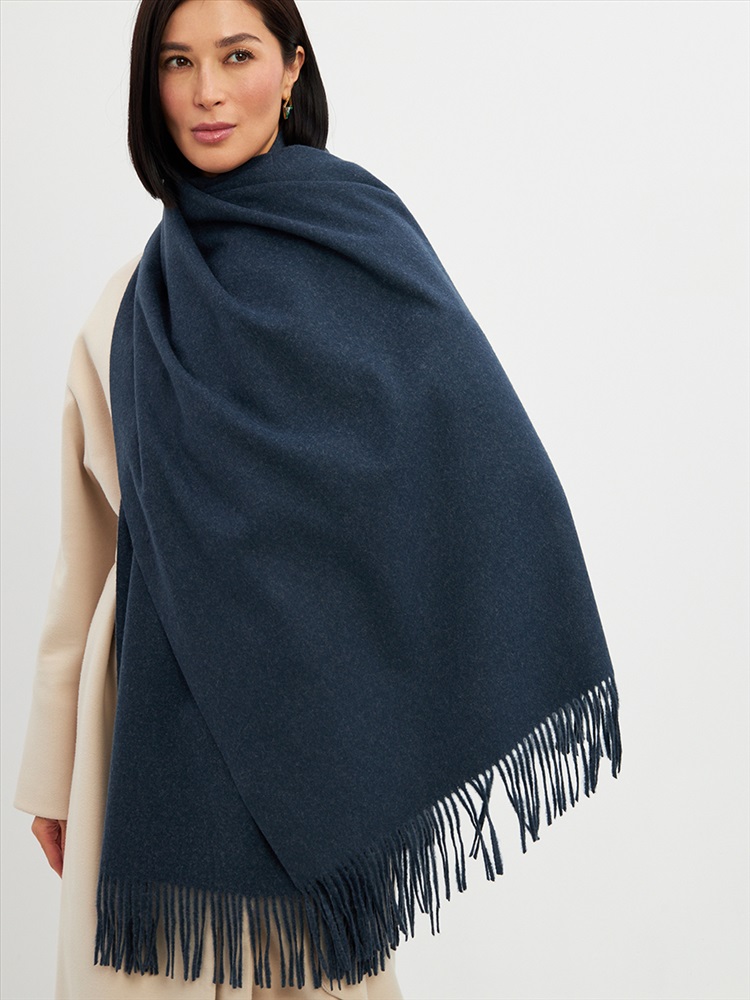 Большой, мягкий, теплый двусторонний однотонный палантин. Края изделия украшены кистями. Машинная деликатная стирка.