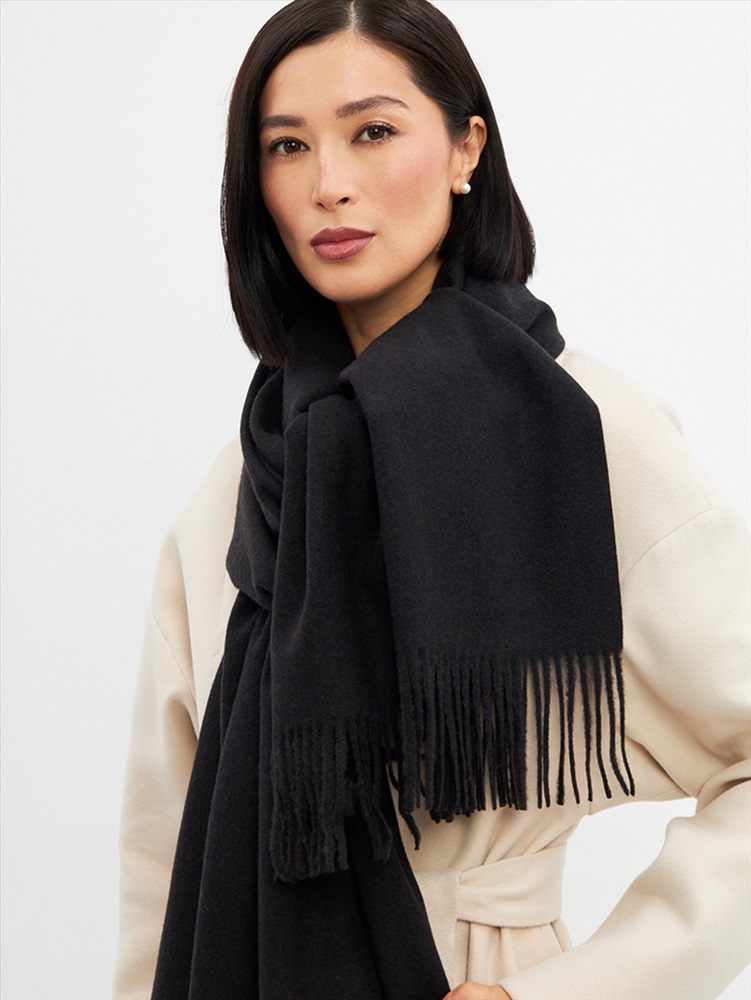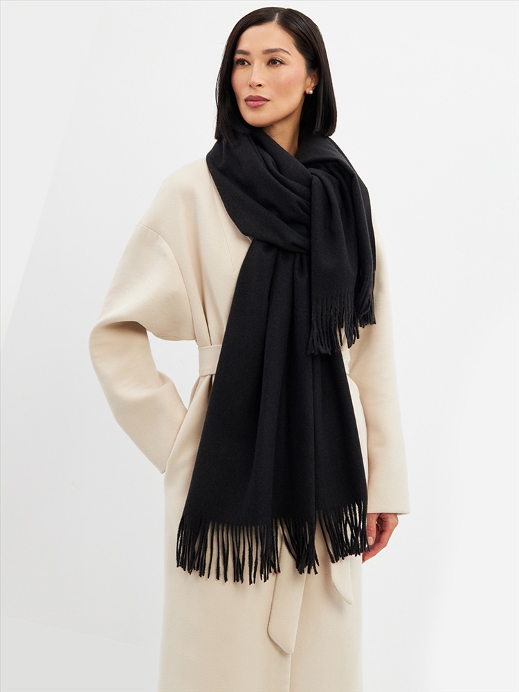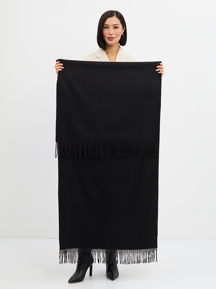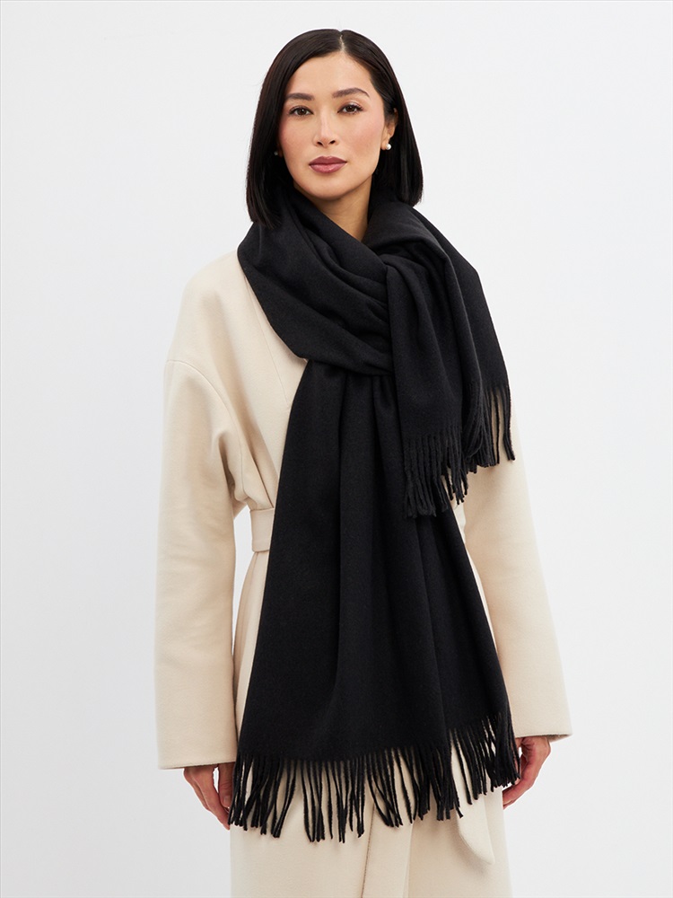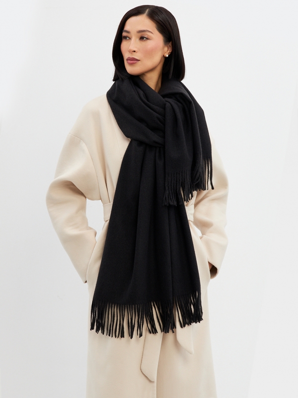 Большой, мягкий, теплый двусторонний однотонный палантин. Края изделия украшены кистями. Машинная деликатная стирка.
