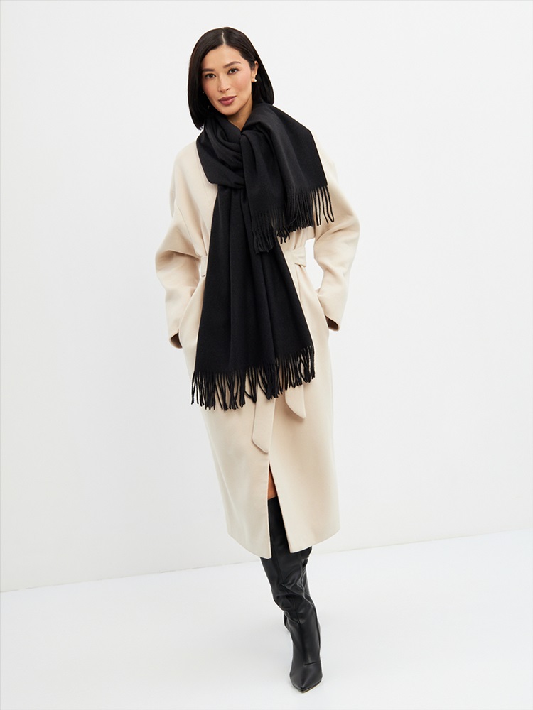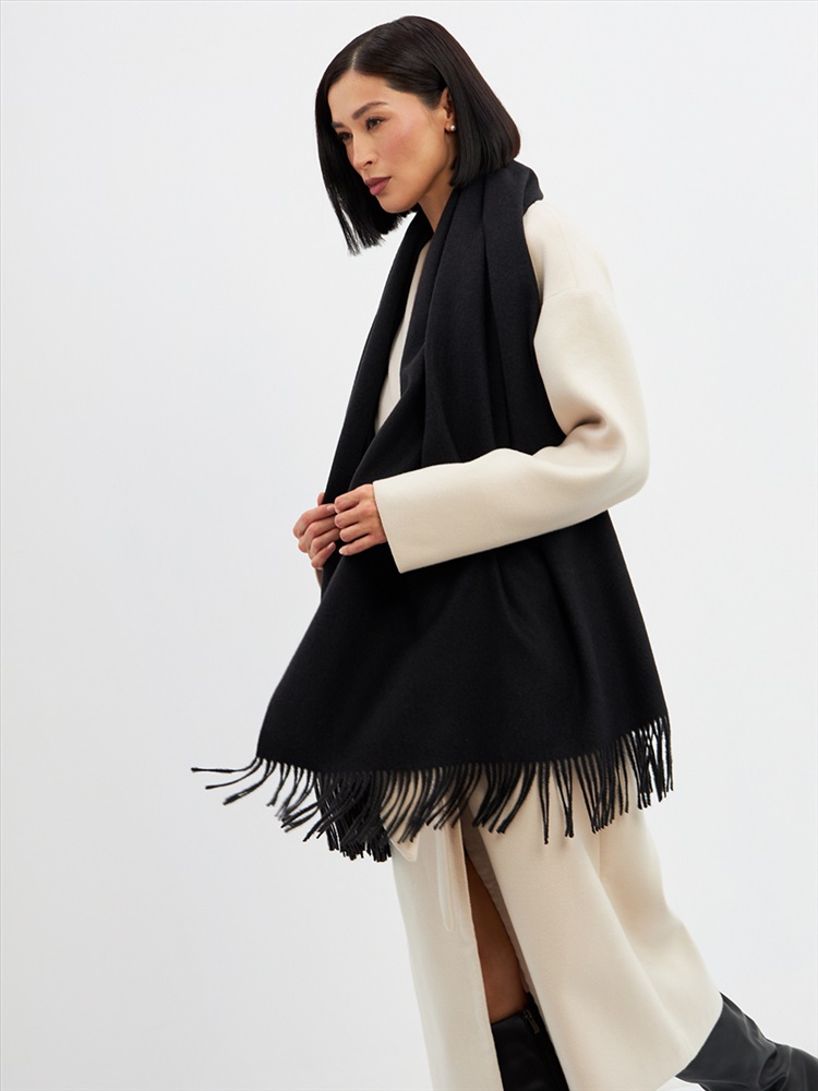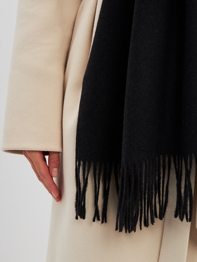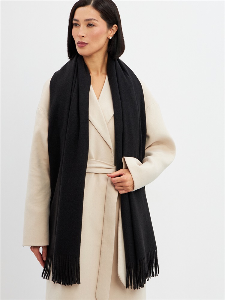 Большой, мягкий, теплый двусторонний однотонный палантин. Края изделия украшены кистями. Машинная деликатная стирка.
