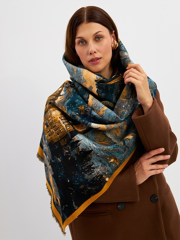 Большой, мягкий, тонкий и очень нежный палантин с рисунком. Машинная деликатная стирка.