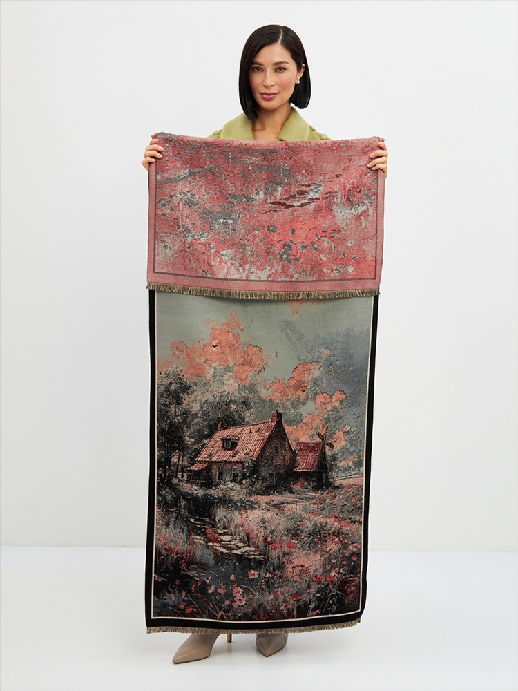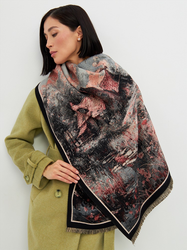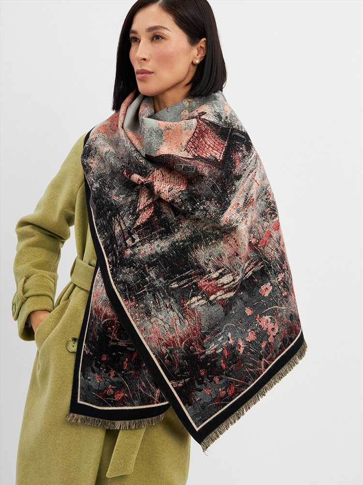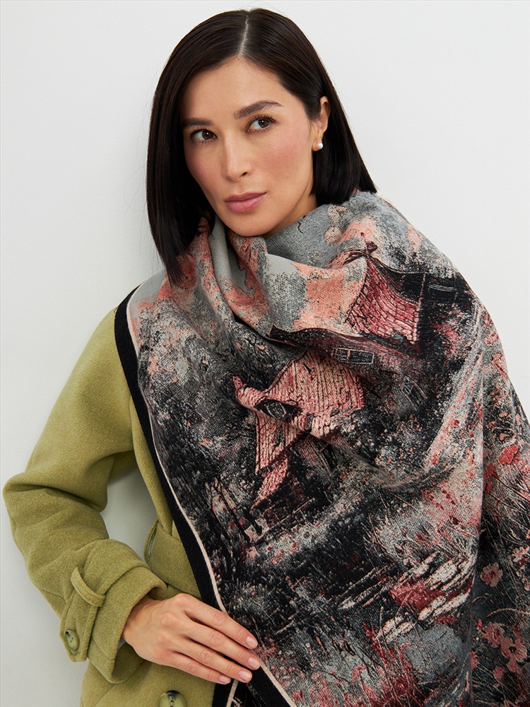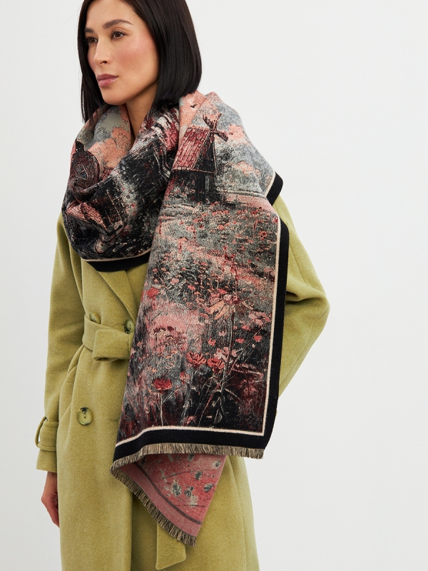 Большой, мягкий, плотный и очень нежный палантин с рисунком. Машинная деликатная стирка.