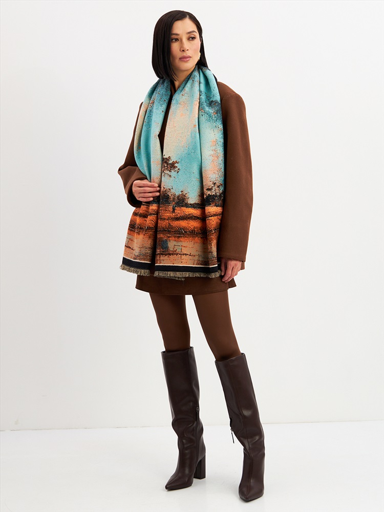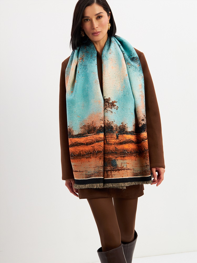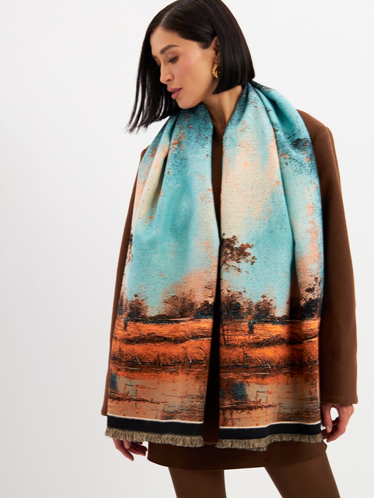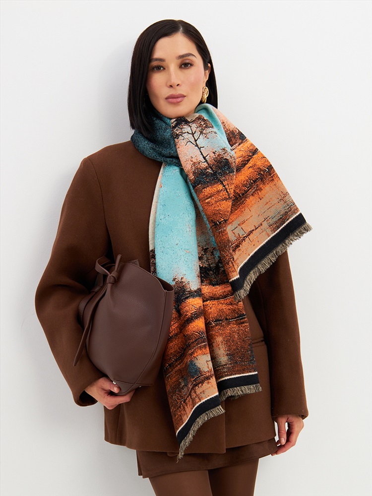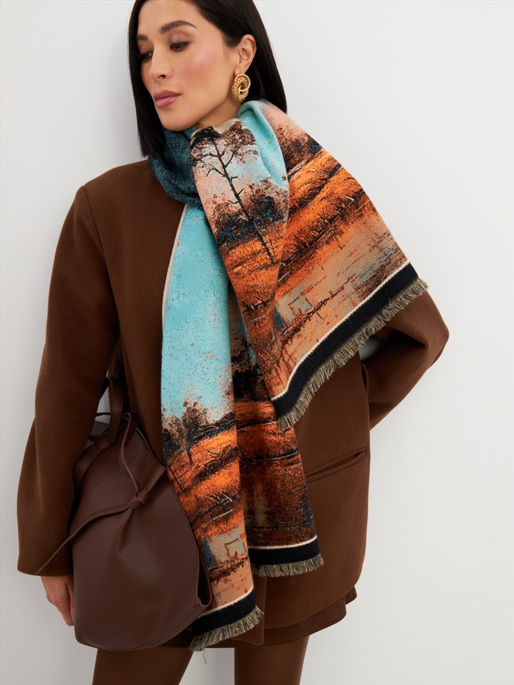 Цвет: Разноцветный Состав: 65% вискоза, 20% шерсть, 15% кашемир Состав: Вискоза, Шерсть, Кашемир Размер: 75 х 180 см Принт: Абстракция Большой, мягкий, тонкий и очень нежный палантин с рисунком. Машинная деликатная стирка. Комментарии к товару