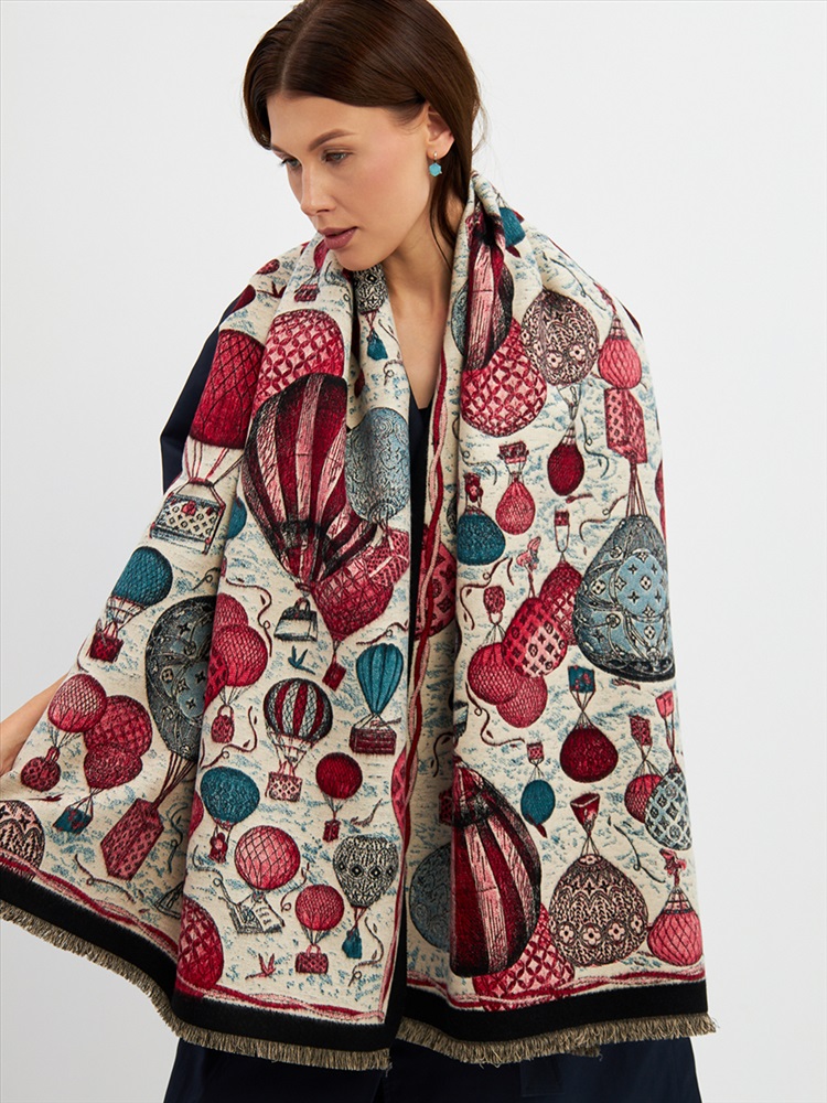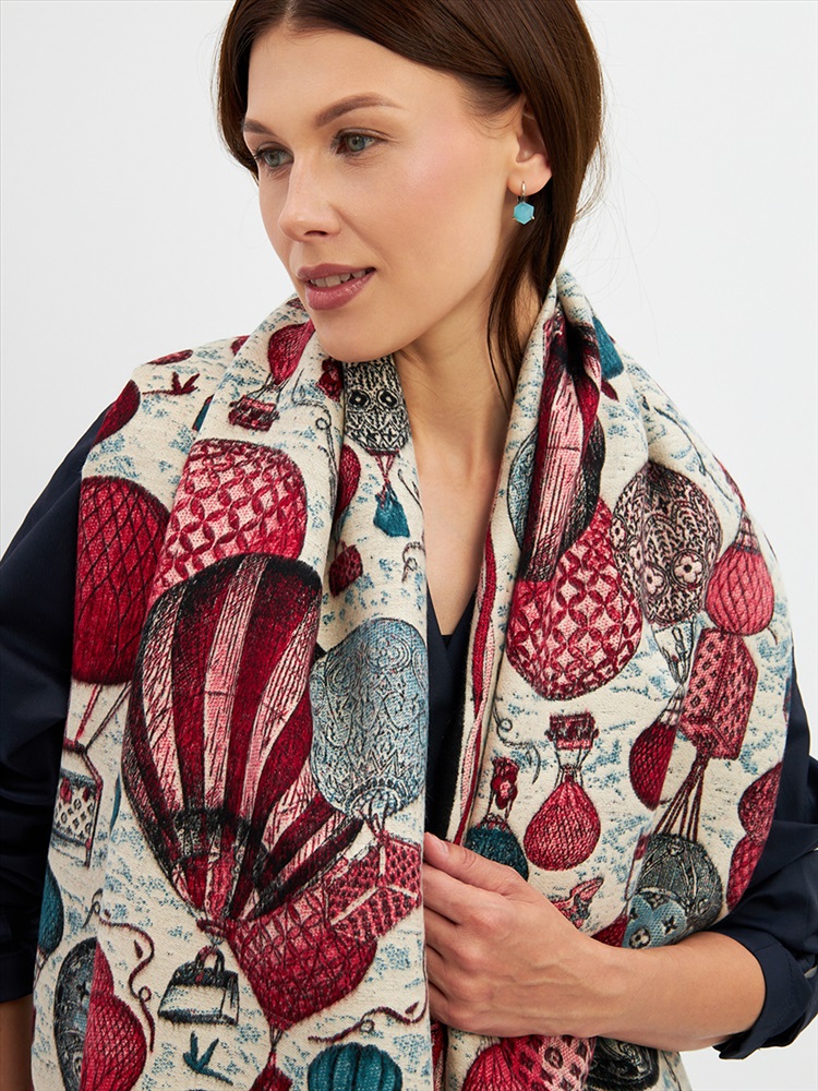 Цвет: Бирюзовый, Бордовый, Темно-зеленый, Красный, Малахитовый, Молочный Состав: 65% вискоза, 20% шерсть, 15% кашемир Состав: Вискоза, Шерсть, Кашемир Размер: 75 х 180 см Принт: Город, Сюжетный Большой, мягкий, теплый и очень нежный палантин с рисунком. Машинная деликатная стирка. Комментарии к товару