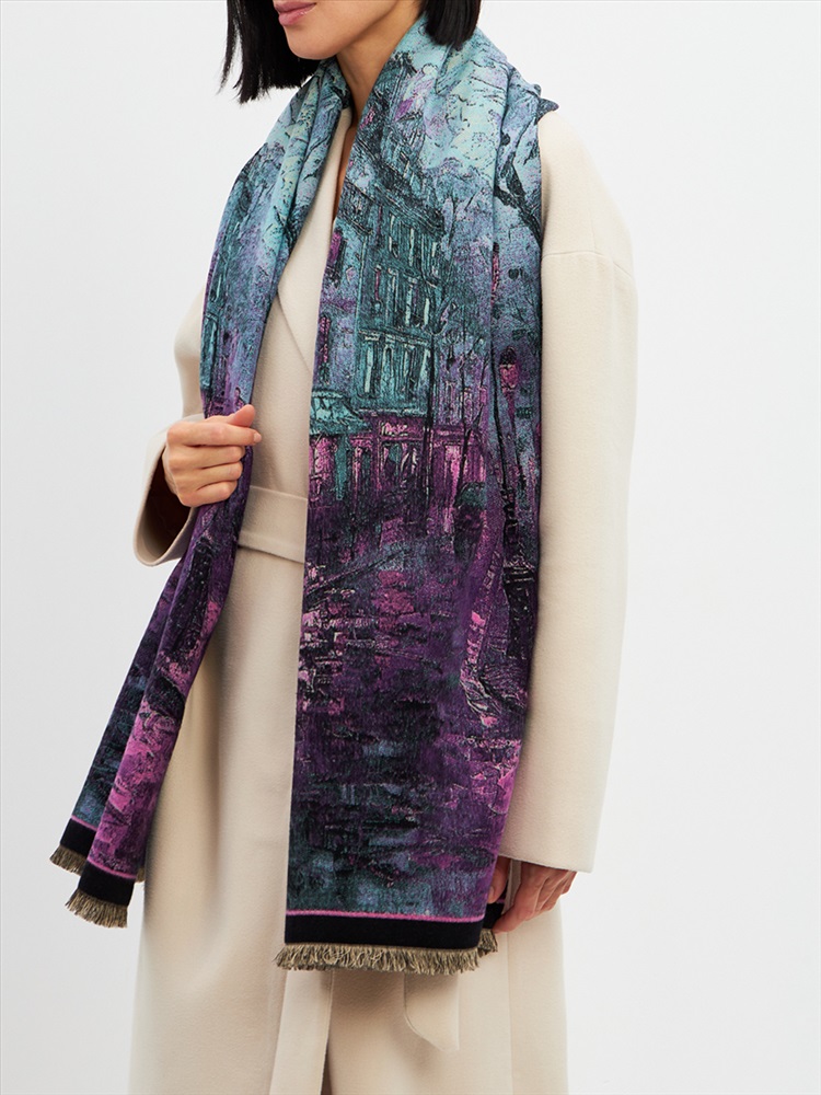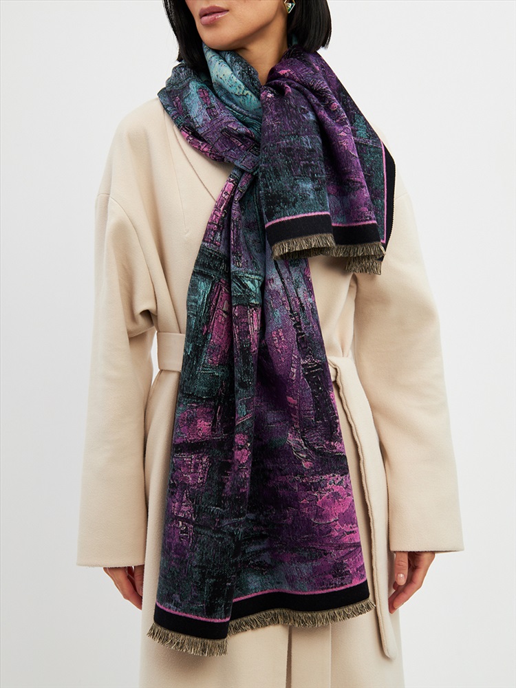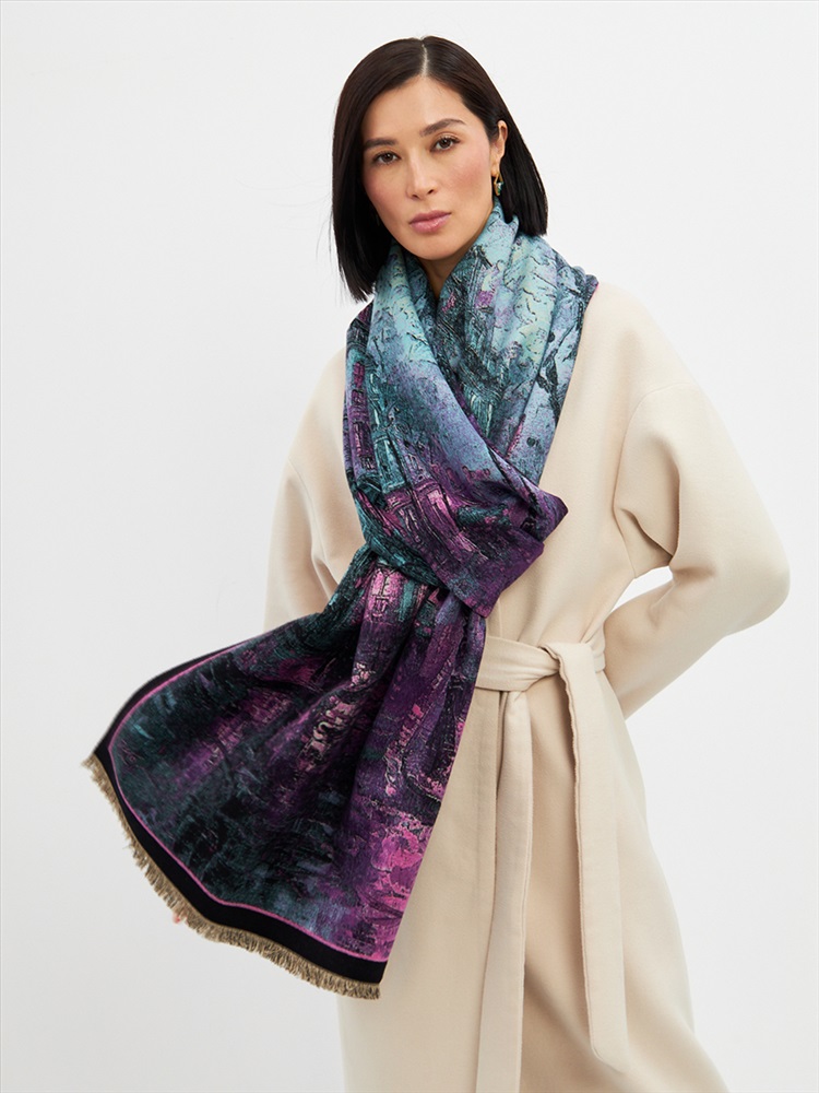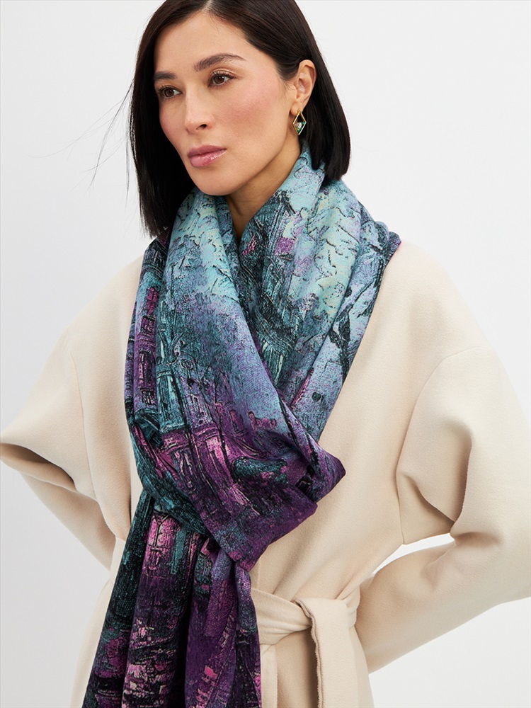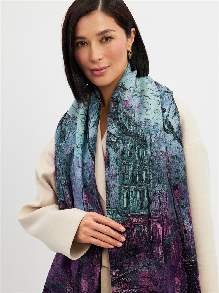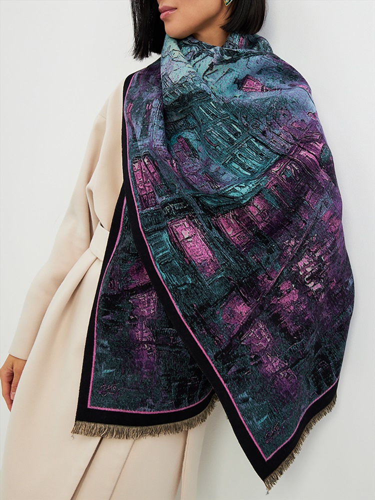 Принт: Город Большой, мягкий, плотный и очень нежный палантин с рисунком. Машинная деликатная стирка.