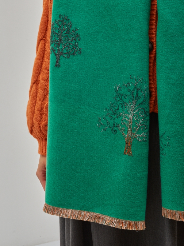 Большой, мягкий, теплый двусторонний палантин с принтом. Края изделия украшены кистями. Только ручная стирка.