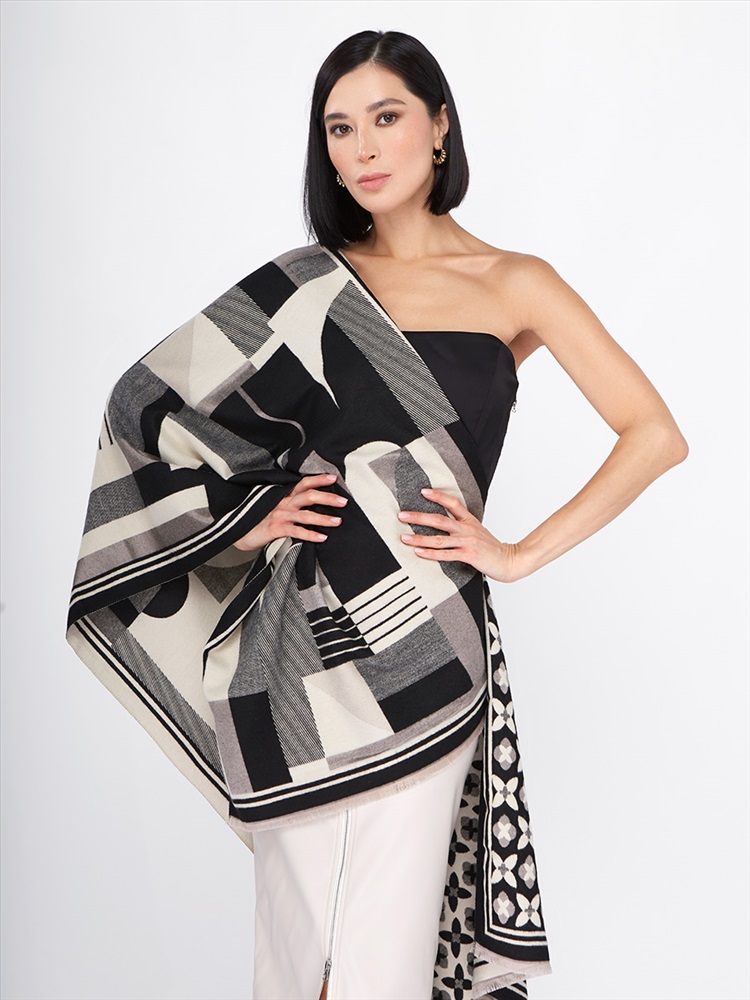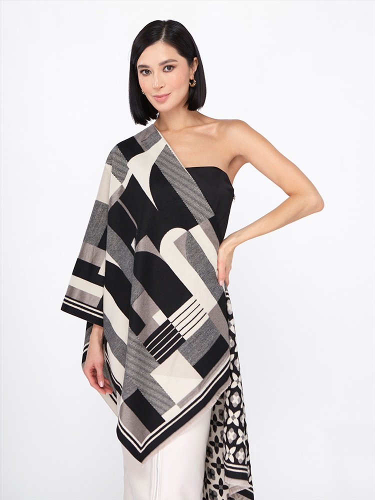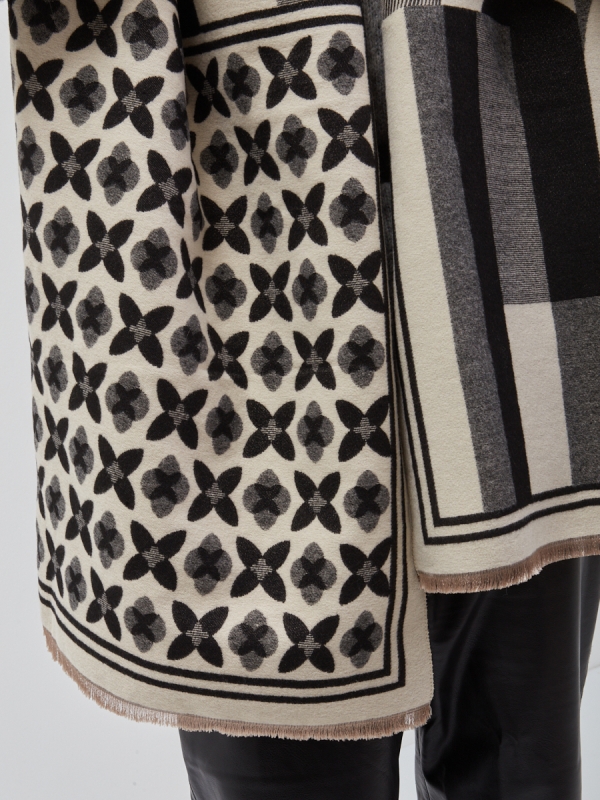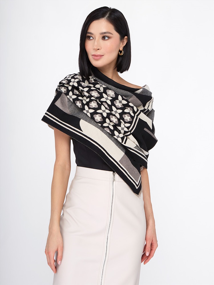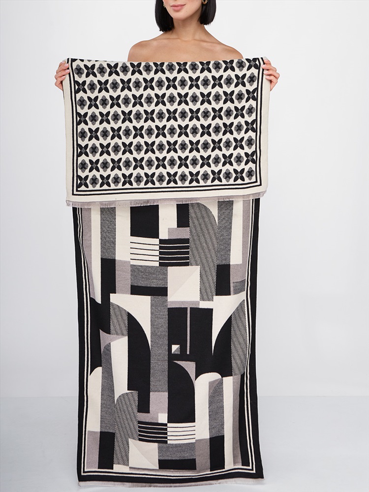 Большой, мягкий, теплый двусторонний палантин с принтом. Края изделия украшены кистями. Только ручная стирка.