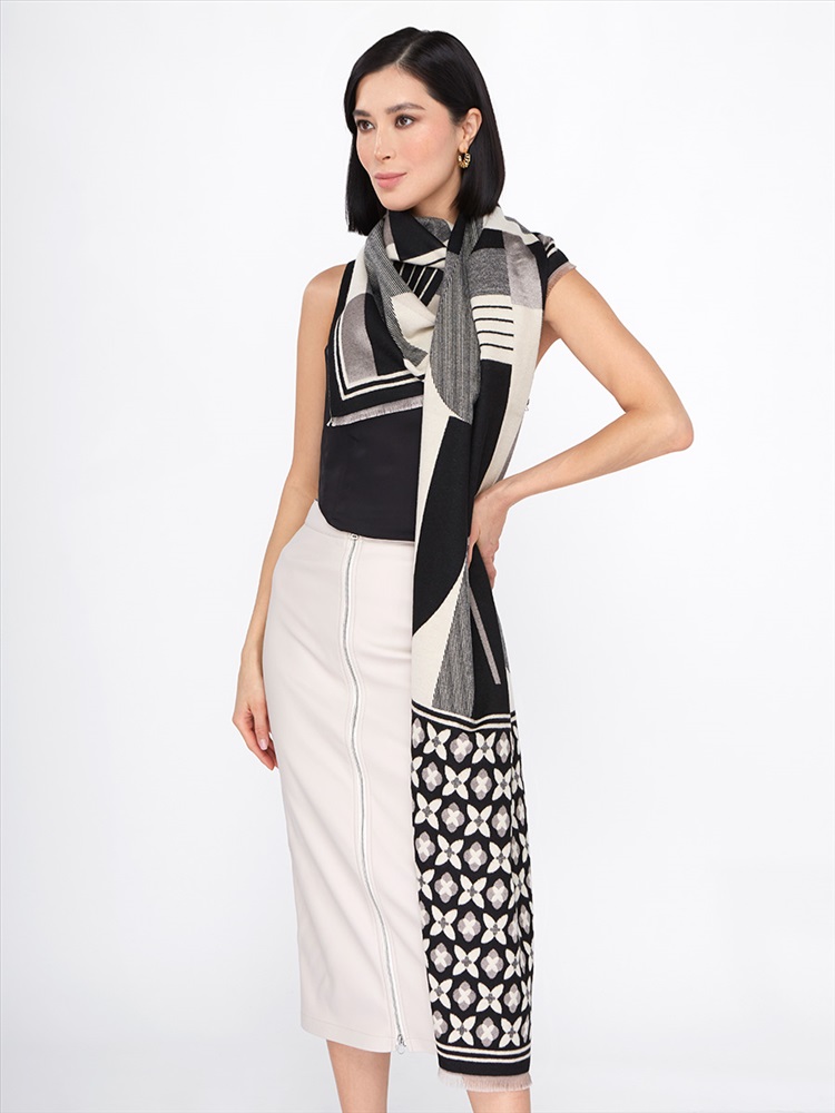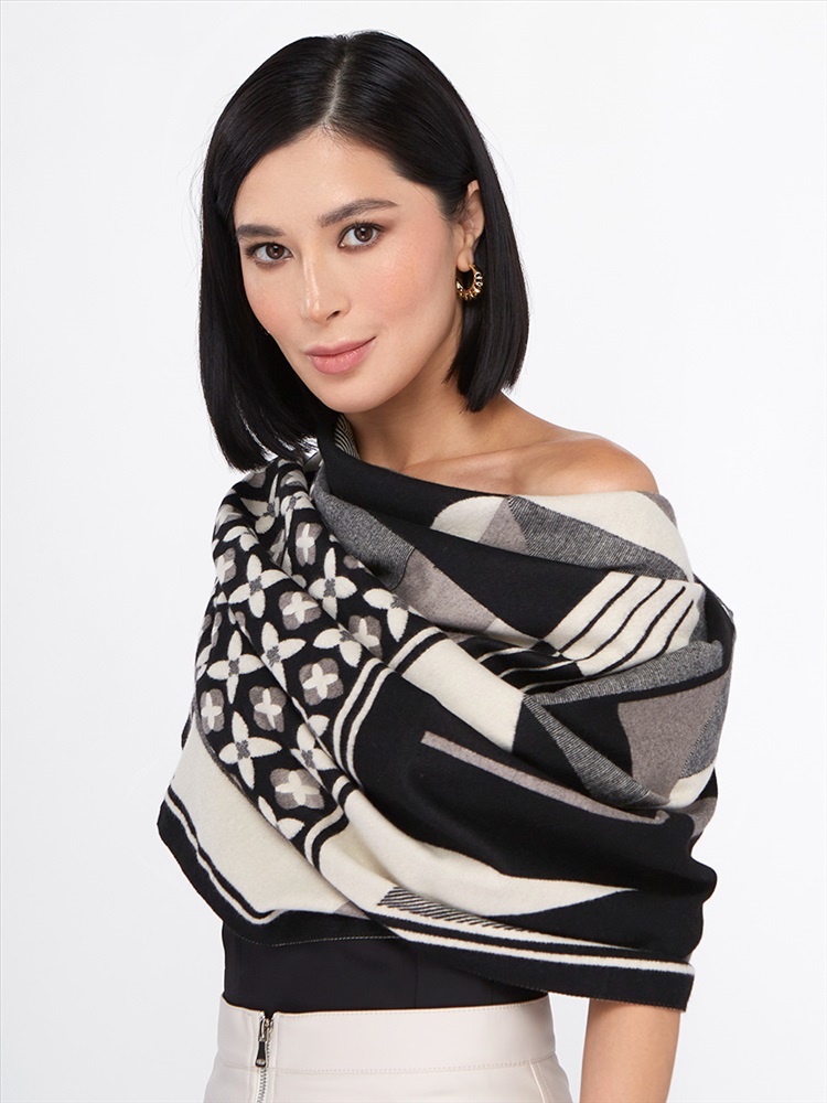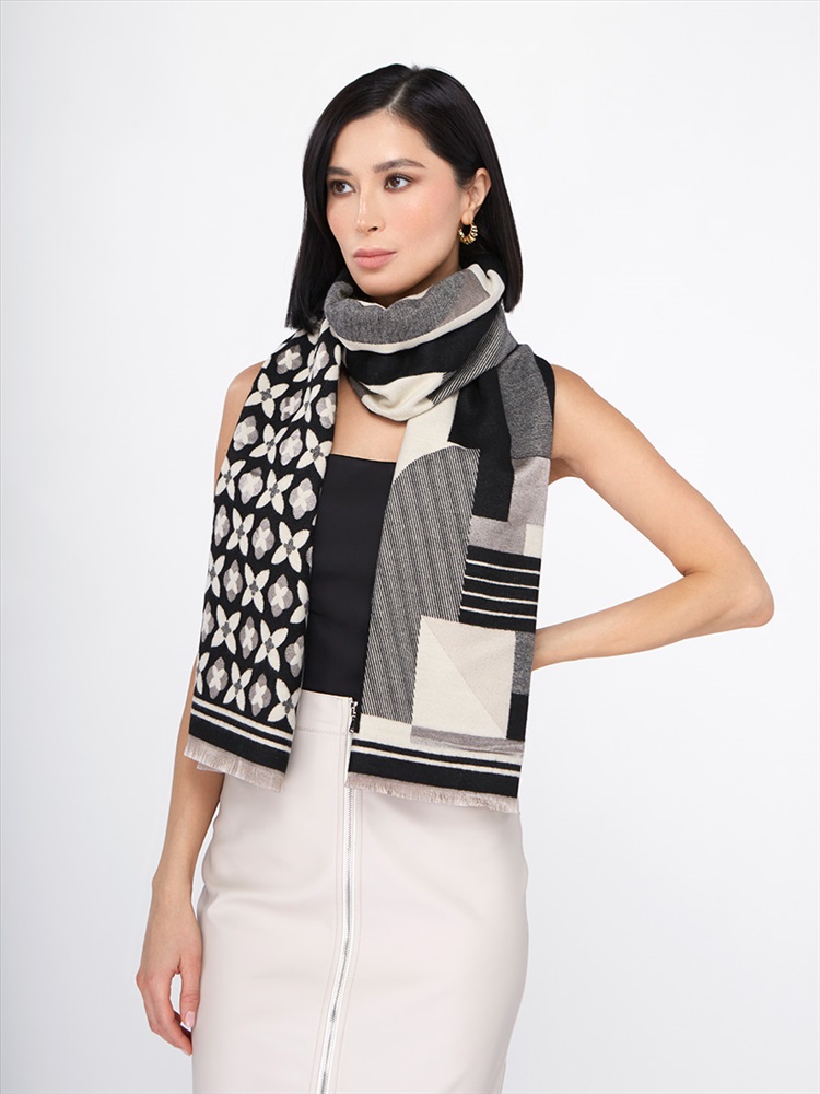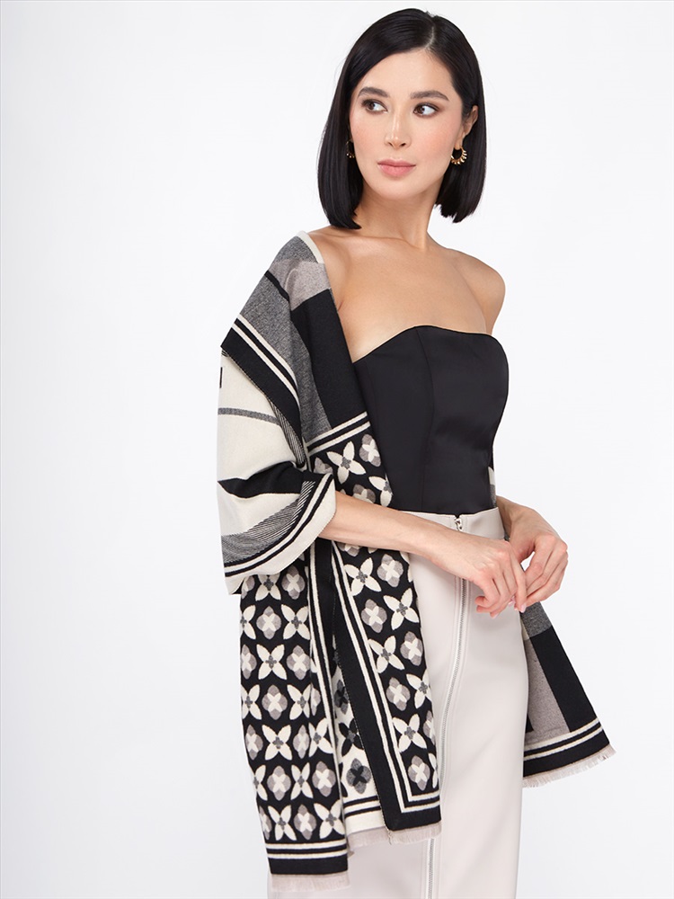 Большой, мягкий, теплый двусторонний палантин с принтом. Края изделия украшены кистями. Только ручная стирка.